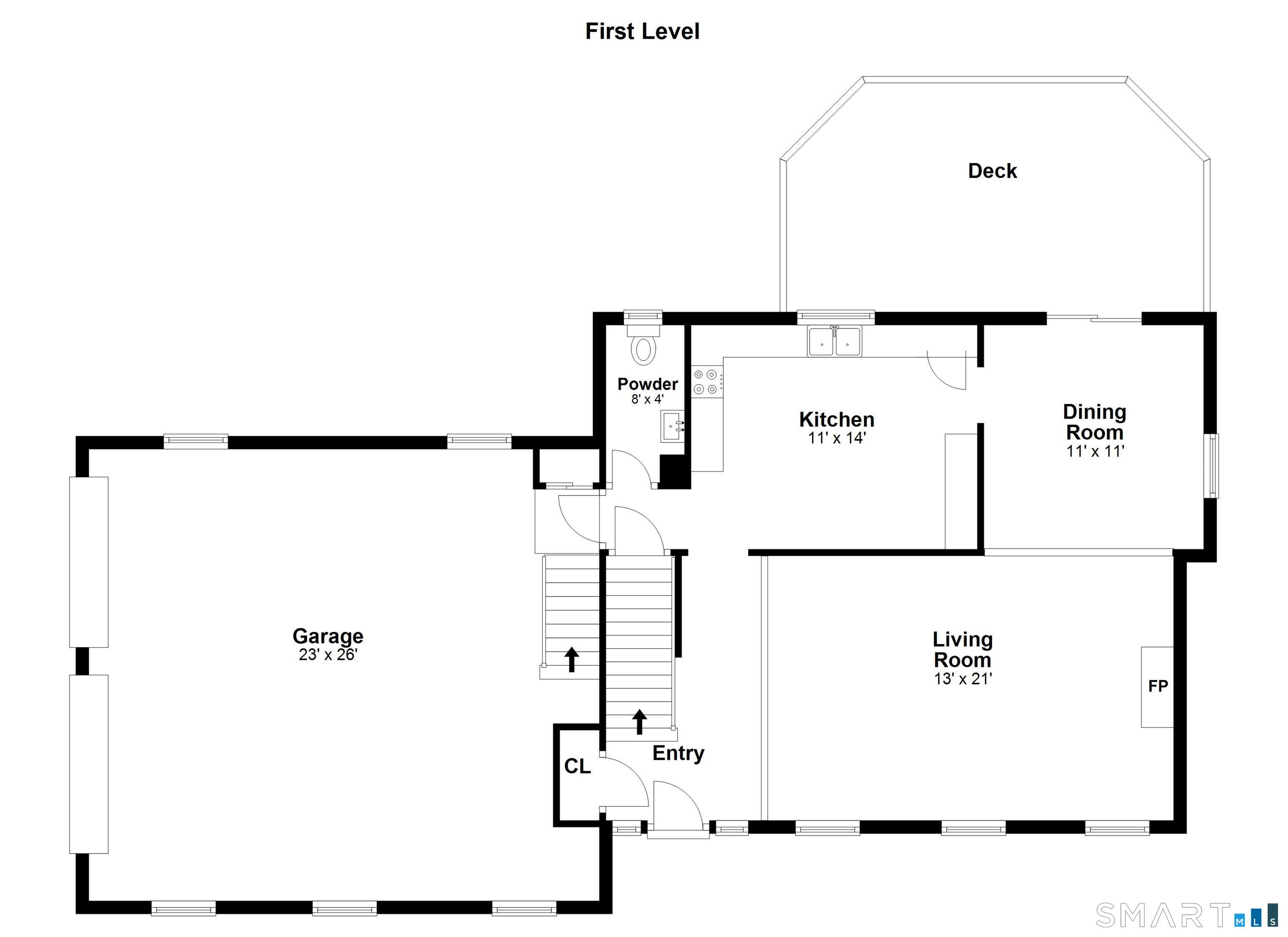 | Family Room | Fireplace,Sliders,Laminate Floor | 14.9 x 24.4 | Lower |