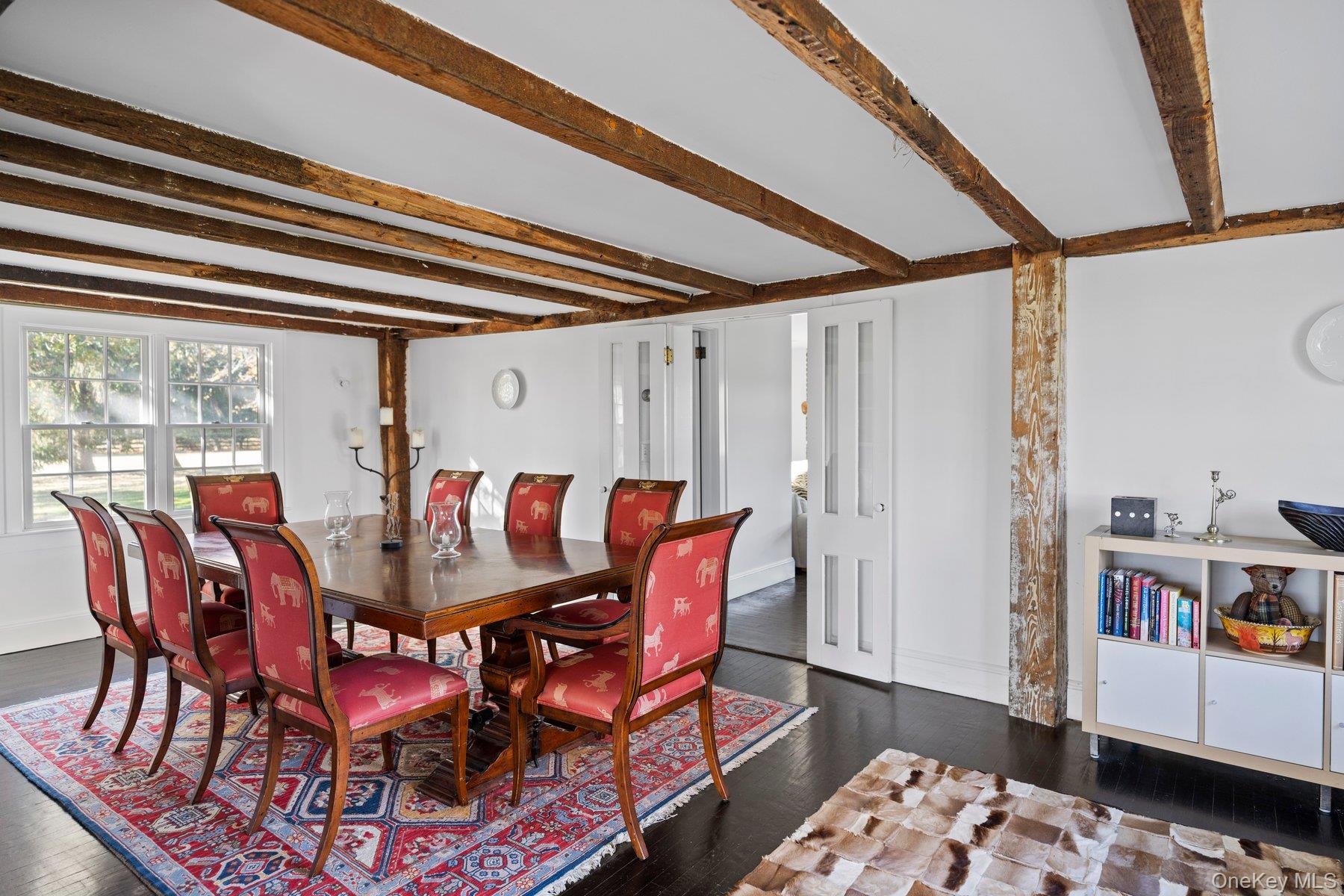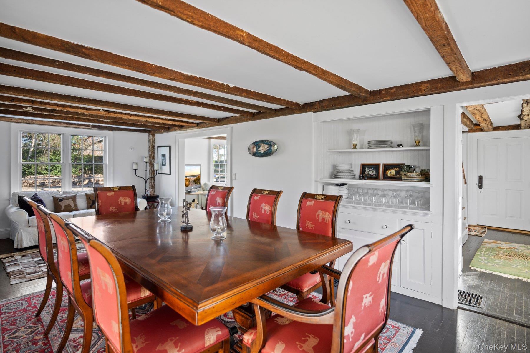 Nestled on a private 4-acre land, subdivided in 3 different lots (1, 33 acres lot - 0, 67 acres - 2 acres lot) with development rights intact, this attractive, 3 bedrooms, 3 bathrooms historic farmhouse offers the ultimate in privacy. The expansive grounds have already been subdivided into three parcels, providing endless opportunities. Built circa 1812 by one of the original Orient families, and now lovingly restored, this home masterfully combines classic elegance with modern amenities, such as striking wood beam ceilings with original pegs and hand-made nails and original pine floors, all offering a glimpse into the home’s storied past. The spacious family room with kitchen has a huge wood-burning fireplace and French doors leading out to a large bluestone patio area and the heated gunite pool, perfect for entertaining. The first level also includes a wonderful dining room, plus a parlor with a second wood-burning fireplace and also a full bathroom. The original staircase leads to the second floor and a large, bright hall off of which is the primary bedroom and bathroom. There are two additional, generously sized bedrooms and a bathroom in the new addition to the house. Set amidst mature trees and beautifully landscaped, the property is completely fenced in and lined with hedges for ultimate privacy. The large barn which sits majestically on the property was built in 1925 using reclaimed lumber from a ship which washed up nearby, and adds versatile space for a variety of uses. Located just moments from Orient Village and its surrounding beaches and farm stands, this peaceful retreat has it all, whether a full-time residence or a fabulous weekend haven. This is a co-listing with Susan Grella and Adrienne Wender of Nest Seekers International.
