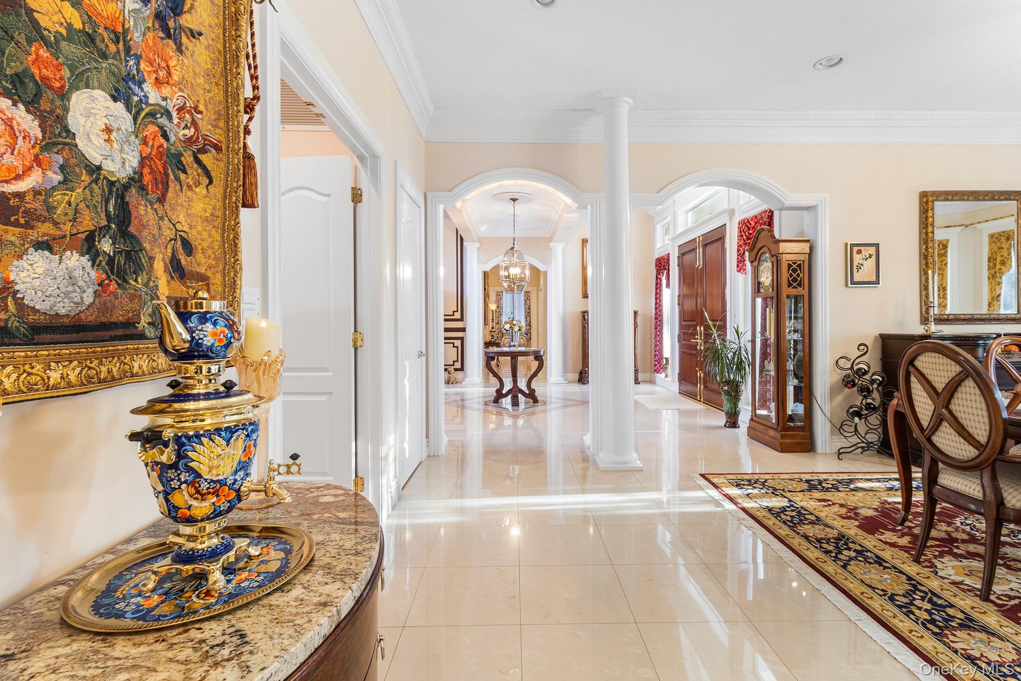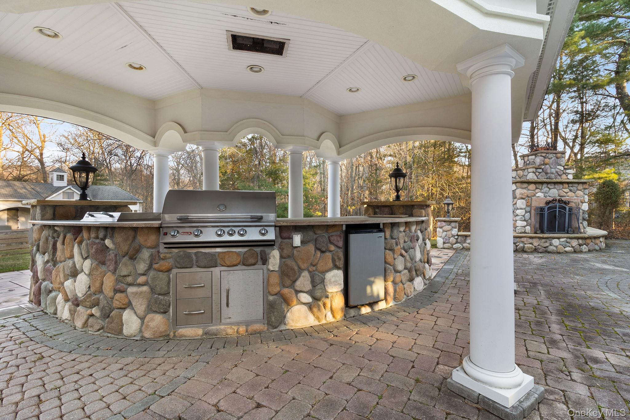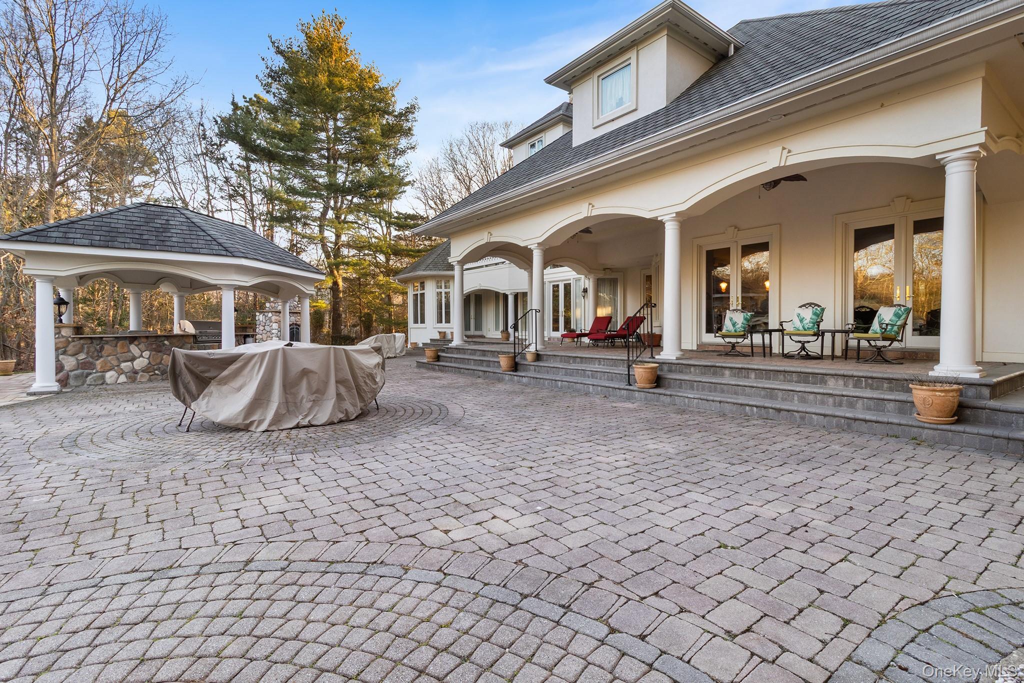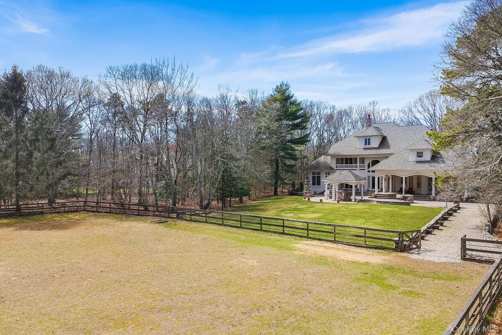 Experience timeless elegance and refined comfort in this beautifully appointed 5-bedroom, 4. 5-bath luxury residence, ideally situated in the coveted South Country Shores community—just moments from the Great South Bay and conveniently located between the vibrant villages of Patchogue and Bellport. Showcasing distinctive Gatsby-inspired architecture, this home blends classic design with modern sophistication in a serene and private setting. Set on 2. 6 acres of meticulously landscaped grounds, the property offers exceptional outdoor living, including a covered kitchen with a pavilion, an outdoor fireplace, and a 5-stall horse stable with a heated tack room—creating a unique opportunity for recreation, entertaining, or simply enjoying the peaceful surroundings. Inside, radiant heated floors add warmth and comfort throughout. These are complemented by two interior fireplaces—a wood-burning one in the great room and a double-sided gas one in the formal living room and the library—along with natural gas heating and cooking and the added convenience of a whole-house generator. The chef’s kitchen is designed to impress, featuring granite countertops, professional-grade stainless steel appliances, a spacious center island, and high top bar seating. The first-floor primary ensuite serves as a tranquil retreat, complete with two walk-in closets and a spa like bath with steam shower and separate toilet room. The upper level offers additional well-appointed bedrooms, including one with a full ensuite bath. Additional features include a walk-up unfinished attic, a walkout basement, a three-car garage and a whole house gas generator. Enjoy the best of South Shore living with nearby access to beaches, marinas, dining, and shopping, all while coming home to a peaceful, sophisticated retreat inspired by the golden era.