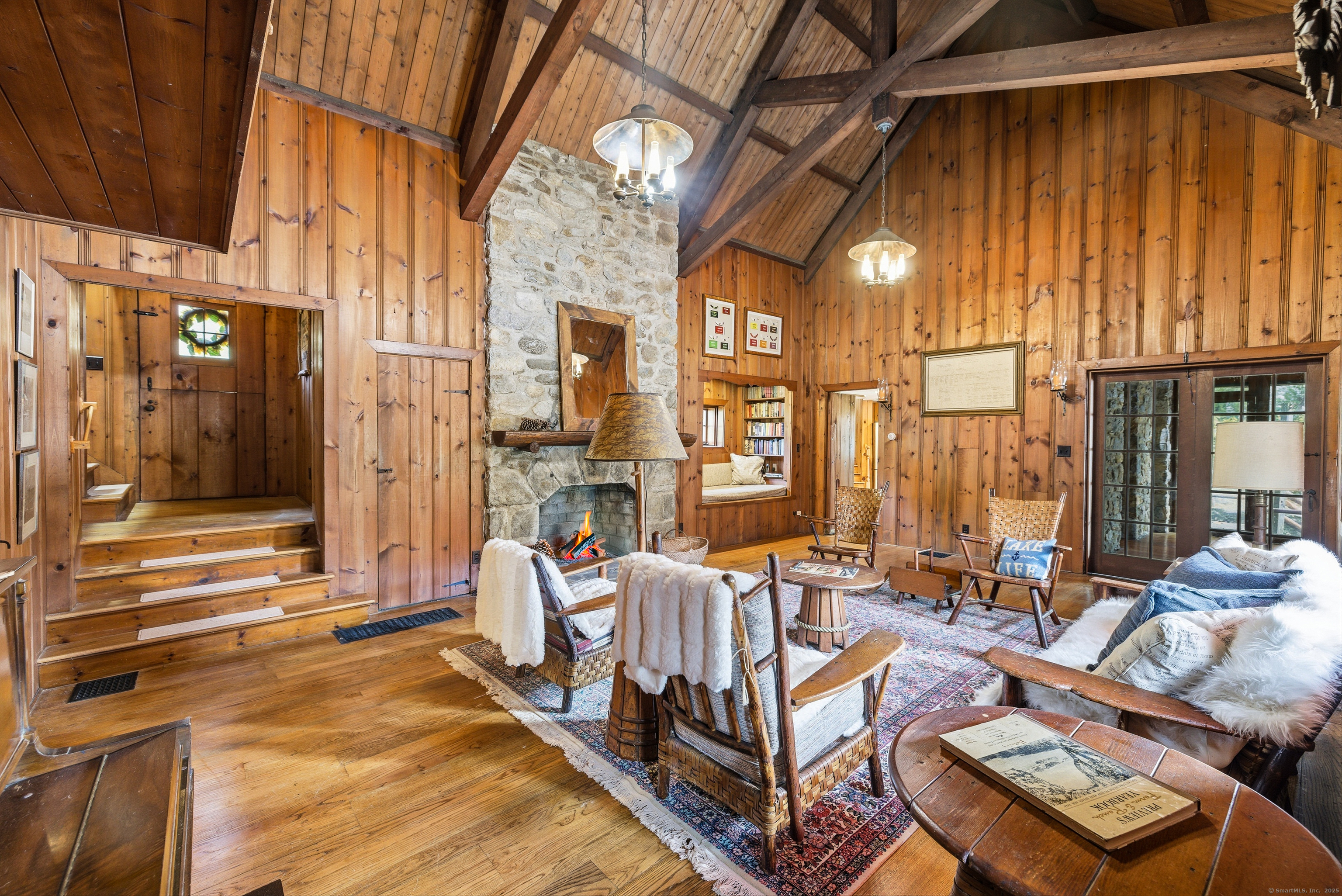 | Living Room | 2 Story Window(s),Cathedral Ceiling,Beams,Book Shelves,Built-Ins,Fireplace | Main |