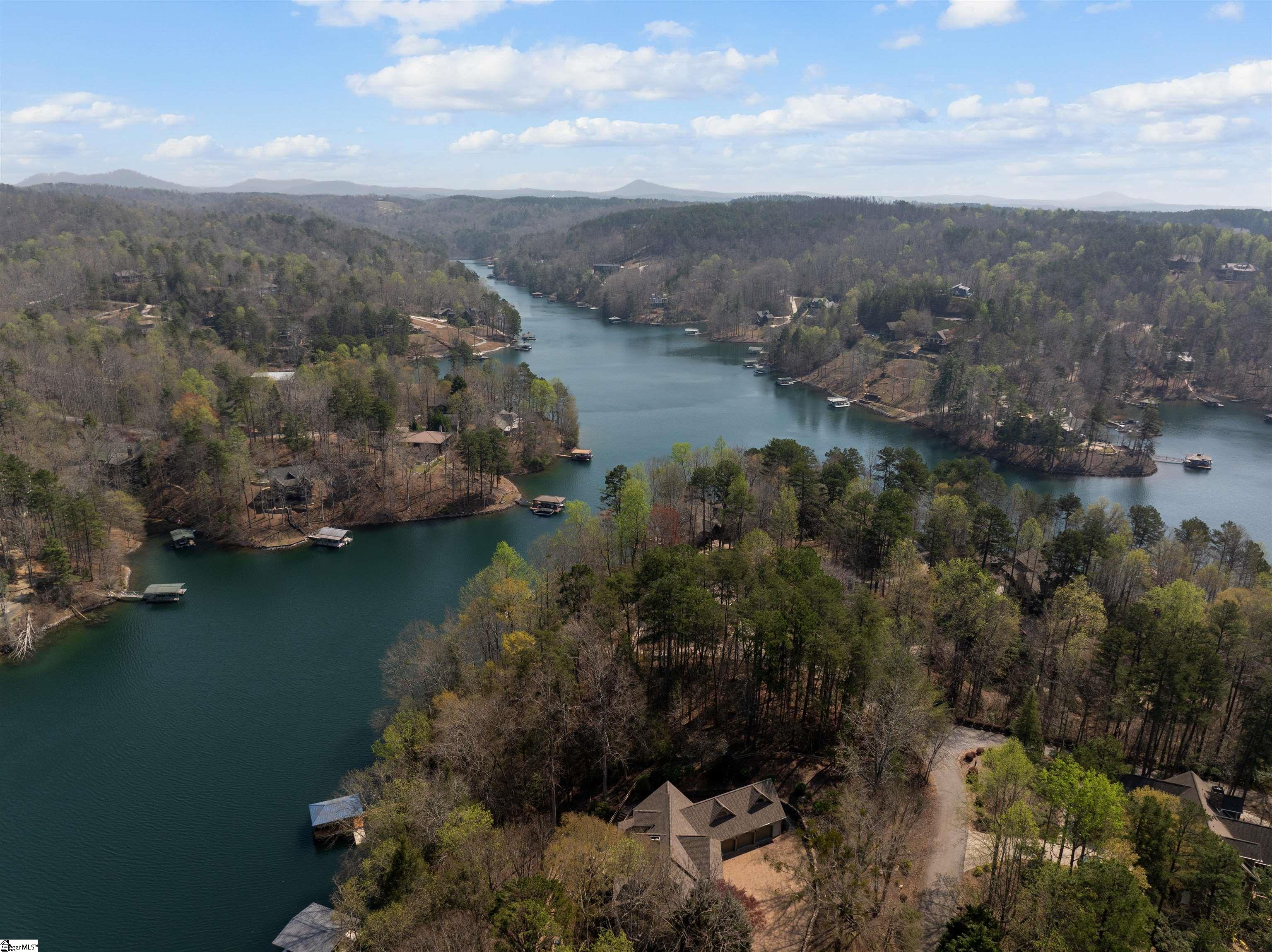 Enjoy the rare combination of protected waters and sweeping lake views along the shoreline of Lake Keowee, nestled within the prestigious The Cliffs at Keowee. Tucked inside a crystal-clear bay on the north end of the lake, this homesite offers both tranquility and easy access to open water—ideal for year-round enjoyment. Surrounded by mature hardwoods, the property provides a naturally private, picturesque setting with gentle shoreline appeal. A private, covered slip dock is already in place, complete with a jet ski lift—so you can step directly into the lake lifestyle from day one. Whether it’s quiet morning cruises, refreshing afternoon swims, or sunset rides across the water, every day here feels like a getaway. With no required timeline to build and the flexibility to bring your own builder, this property offers the freedom to create a fully custom lakefront retreat tailored to your vision. Design a home that reflects your lifestyle—whether that means relaxed family living, elevated entertaining, or a legacy getaway for generations to come—all set on one of the most sought-after bodies of water in the Southeast.