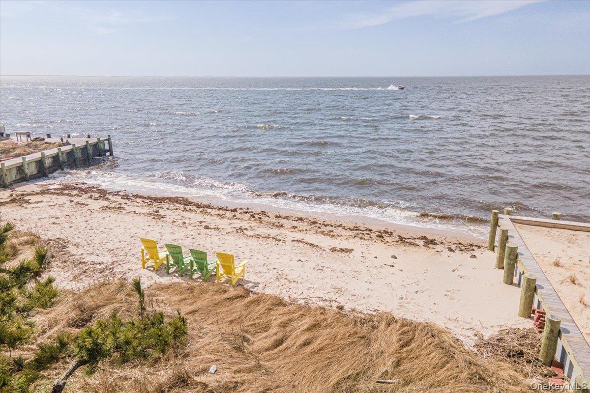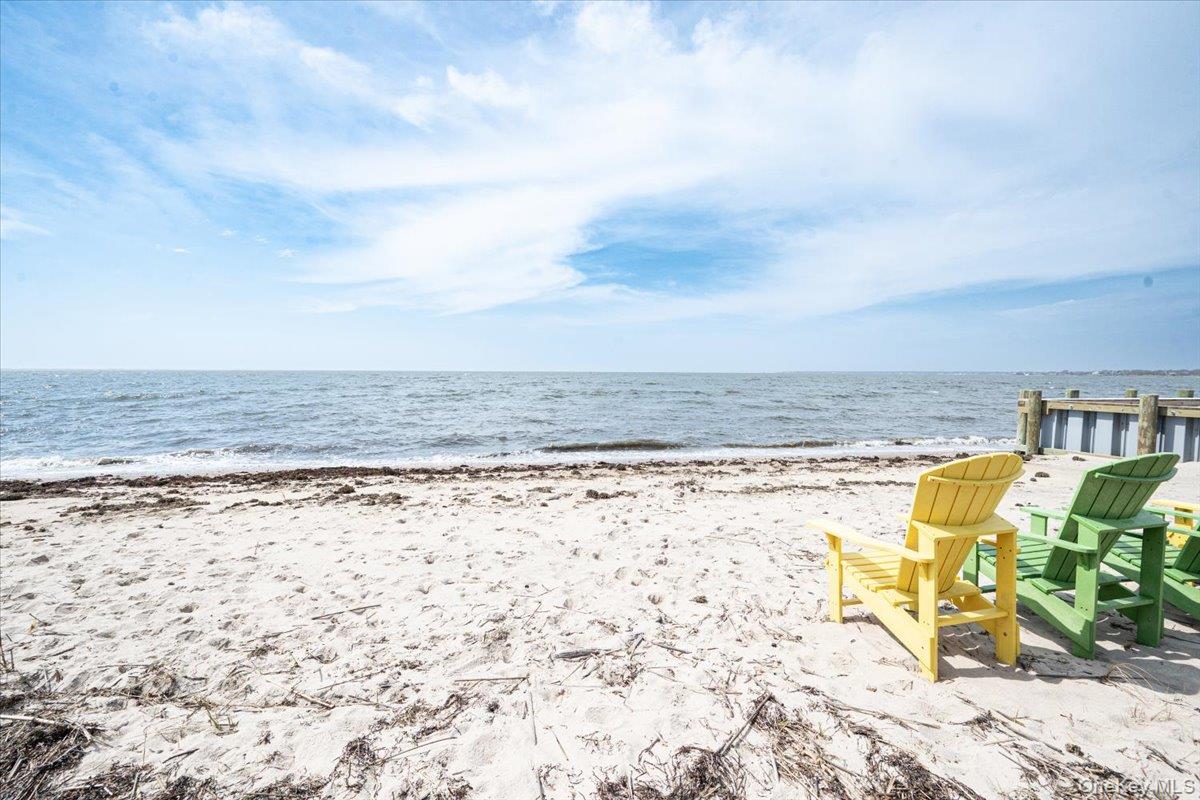 Location, Location, Location! Tucked away in a private waterfront setting within the Riviera Shores community, this two-story home offers direct, unobstructed views of the Great South Bay and a private sandy beach. The main level features a comfortable living room with a wood-burning fireplace, tile flooring, and oversized windows that showcase the bay. The eat-in kitchen provides access to a beautiful back deck, ideal for entertaining. The second floor serves as a private retreat, highlighted by a spacious primary suite with two closets, room for a king-size bed, and expansive water views. This property offers direct waterfront access, its own private sandy beach, and a setting well suited for enjoying both sunrises and sunsets. If you're looking for a retreat with your own private beach on the Great South Bay, this is it!