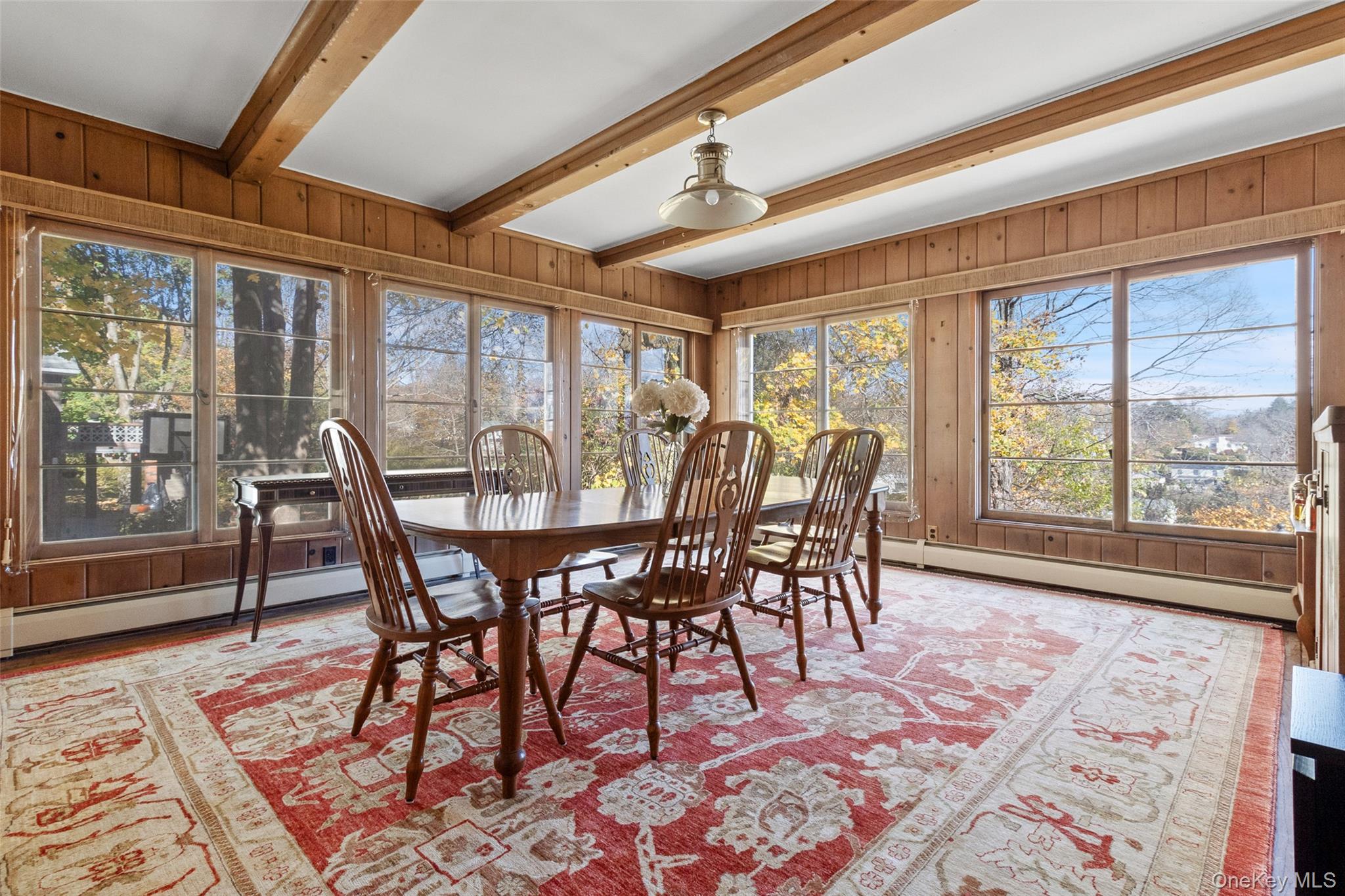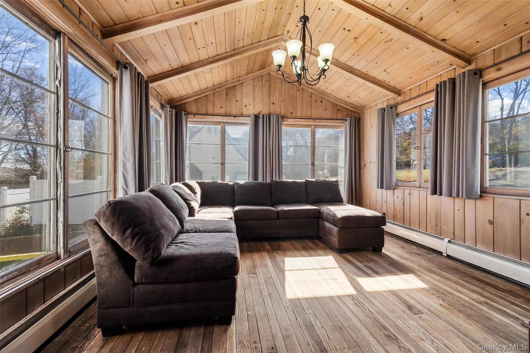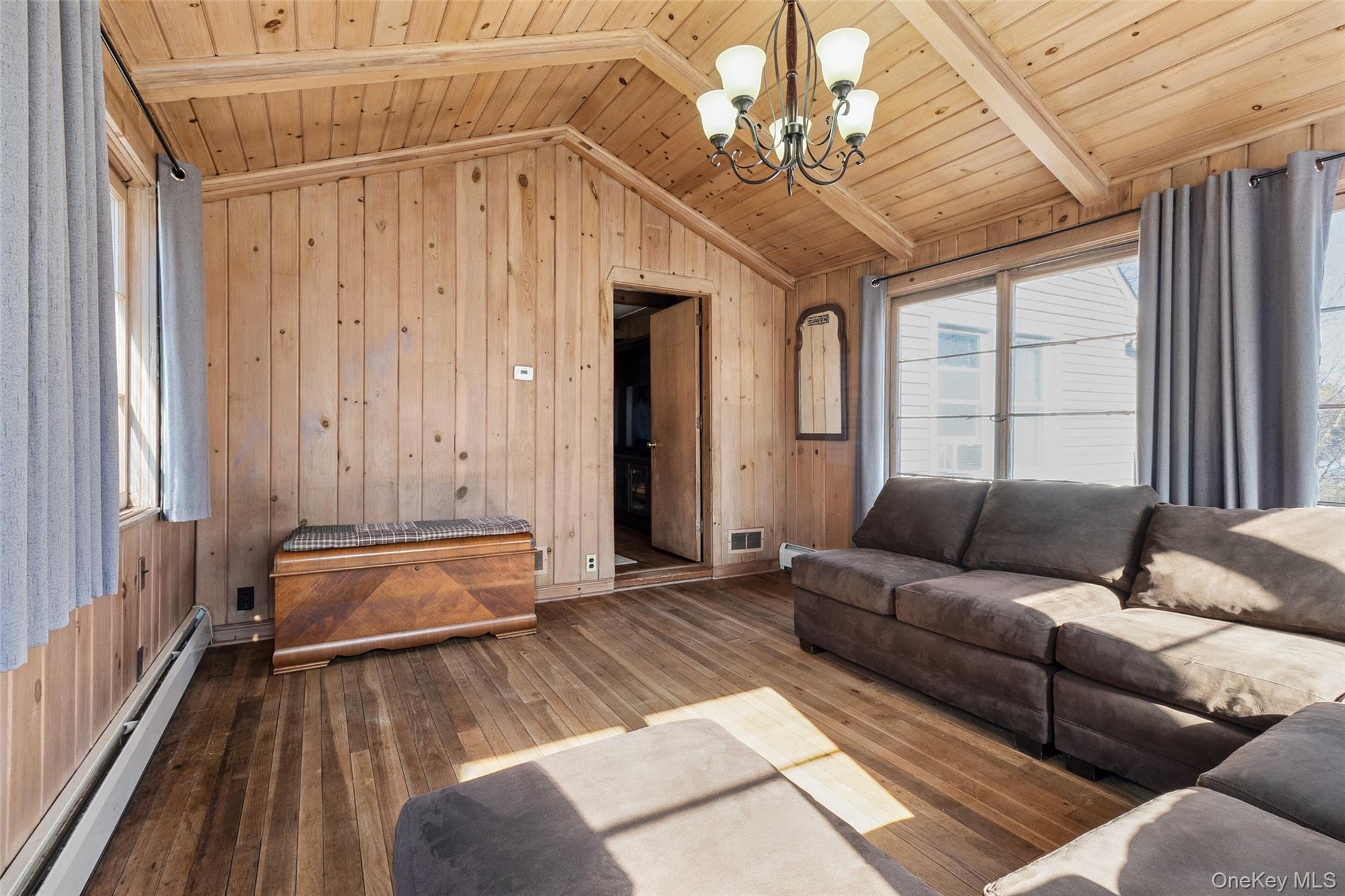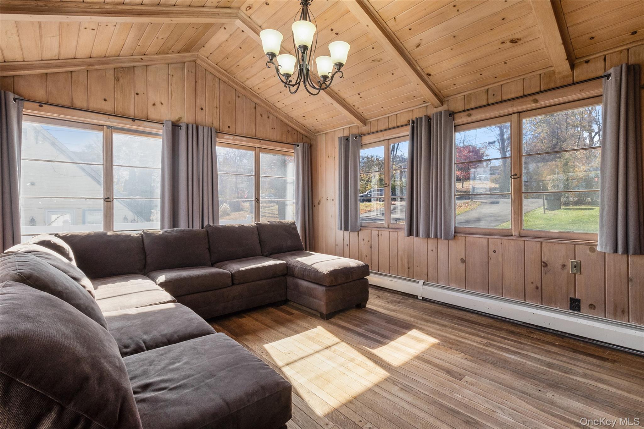 This home offers approximately 1, 700 square feet of living space with two bedrooms, one and a half bathrooms and bonus room. The property features vaulted ceilings, creating an open and airy atmosphere. The home is filled with abundant natural light, highlighting the beautiful hardwood flooring throughout. The spacious living area boasts warm wood paneling, contributing to a cozy and rustic charm. A cozy fireplace provides a inviting gathering space. The primary bedroom is generously sized, offering ample room. The additional bedroom is also spacious, providing comfortable accommodations. The neutral flooring in the bathrooms complements the ample natural lighting, creating a refreshing ambiance. The spacious bathroom includes tiled flooring for easy maintenance. The kitchen is well-equipped, featuring ample cabinetry and tile flooring, leading to a charming dining area with hardwood beams. Stepping outside, the property sits on a spacious lot surrounded by mature trees, offering scenic surroundings. The expansive yard provides ample space for outdoor enjoyment, with a charming exterior and ample parking available.