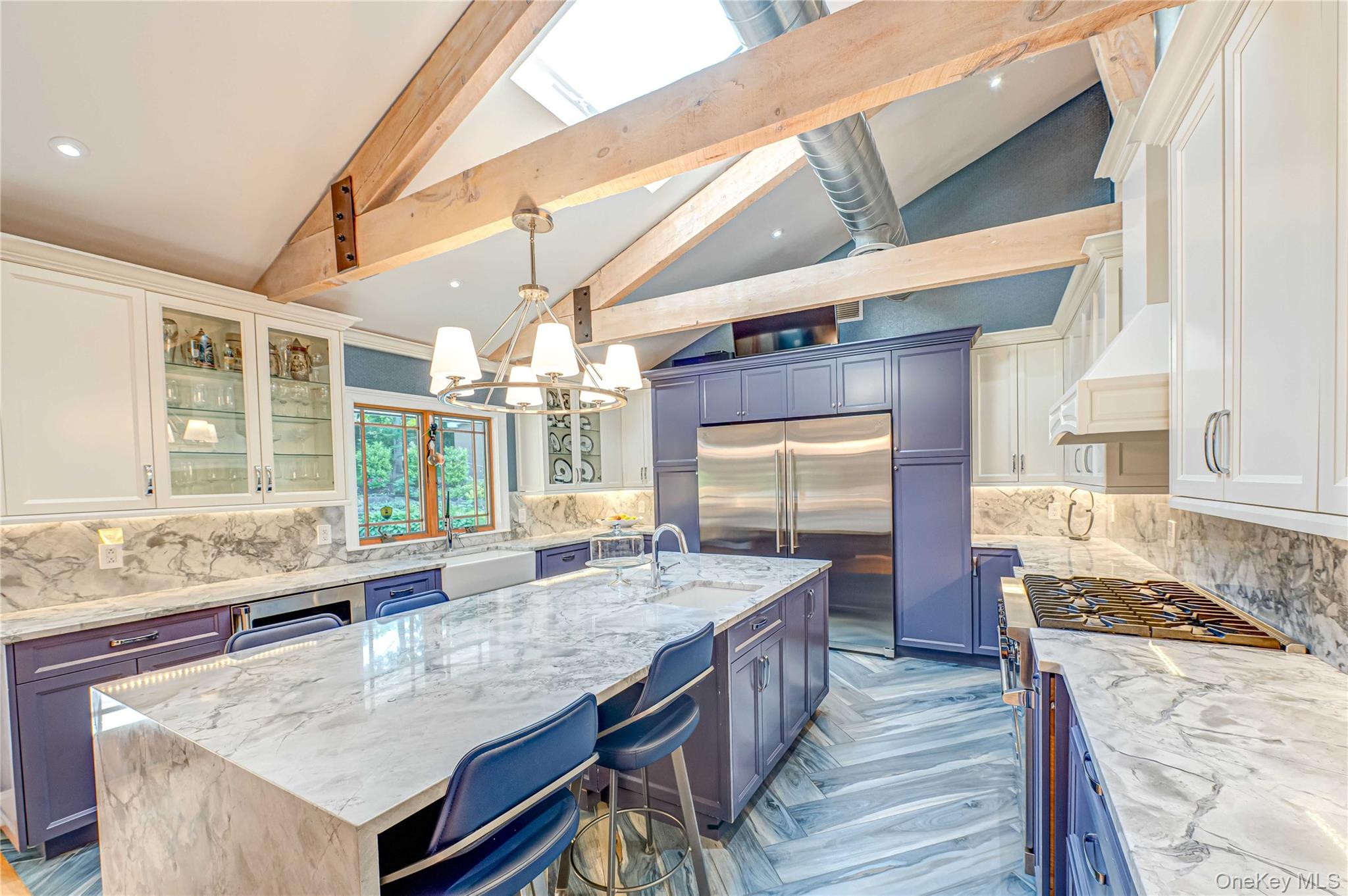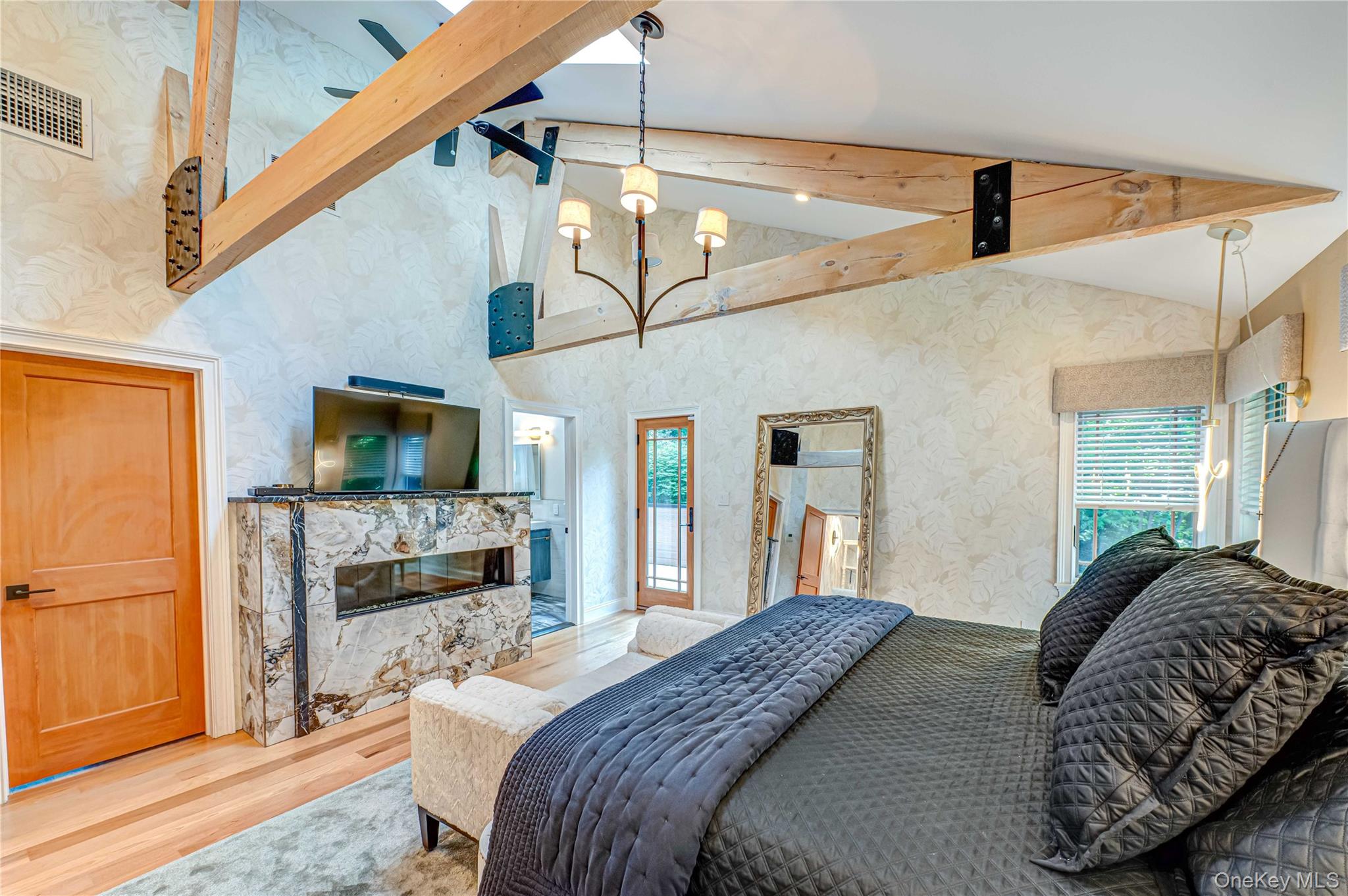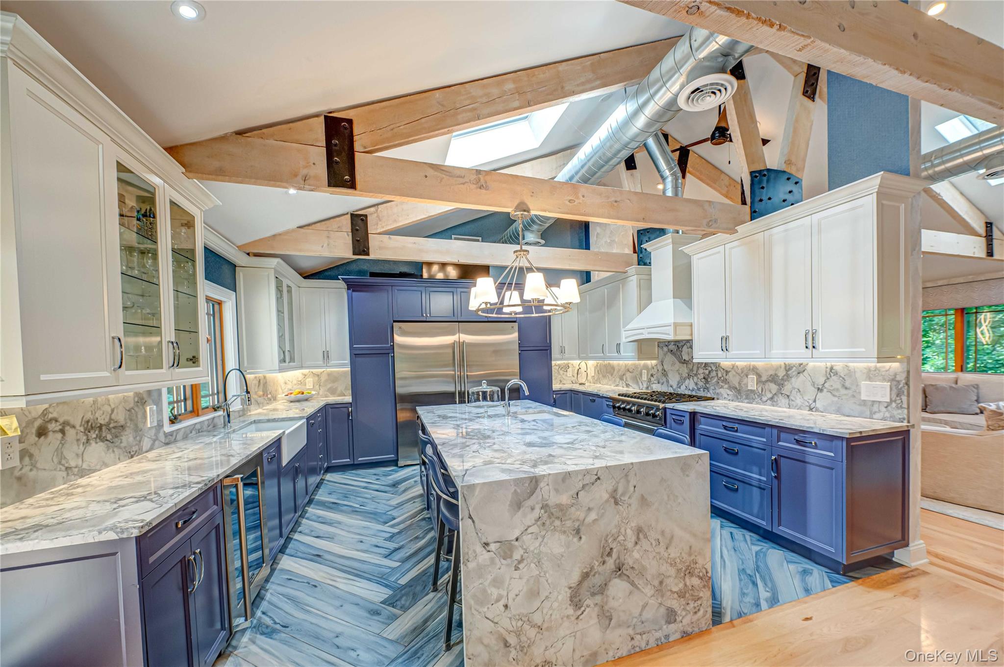 Stunning Custom 4, 000 Sq. Ft. Builder's Home in Southdown Section of Huntington Perched privately at the top of a hill and just moments from Huntington Village, this exceptional 5-bedroom, 4-bathroom residence offers the finest in modern living. Thoughtfully renovated with new siding, electrical, plumbing, and Andersen windows, this home is built for comfort, style, and function. The sun-drenched interior features a striking open floor plan with soaring ceilings, exquisite hardwood flooring and handcrafted live edge cherry wood staircase. The chef’s kitchen is equipped with top-of-the-line appliances and opens to a spacious dining room and elegant family room with one of two gas fireplaces. Also includes a beautifully appointed guest room with a full bath and a flexible layout ideal for a home office or potential accessory apartment (with proper permits). The luxurious primary suite offers a spa-quality bathroom, radiant heated floors and a generous walk-in closet. Four additional bedrooms and three additional full bathrooms offer space and privacy for guests. Outside, enjoy resort-style living with a heated in-ground pool featuring a waterfall, a full outdoor kitchen, stamped concrete patio, and a large side yard perfect for recreation or entertaining. Additional highlights include a 2-car garage, solar panels, laundry room, video security system, and radiant heat in the primary bath. This home truly has it all—space, privacy, luxury finishes and unbeatable location—all conveniently close to Huntington Village shops, restaurants, and amenities. Perfect for entertaining, multigenerational living or work-from-home lifestyles. A rare opportunity not to be missed!