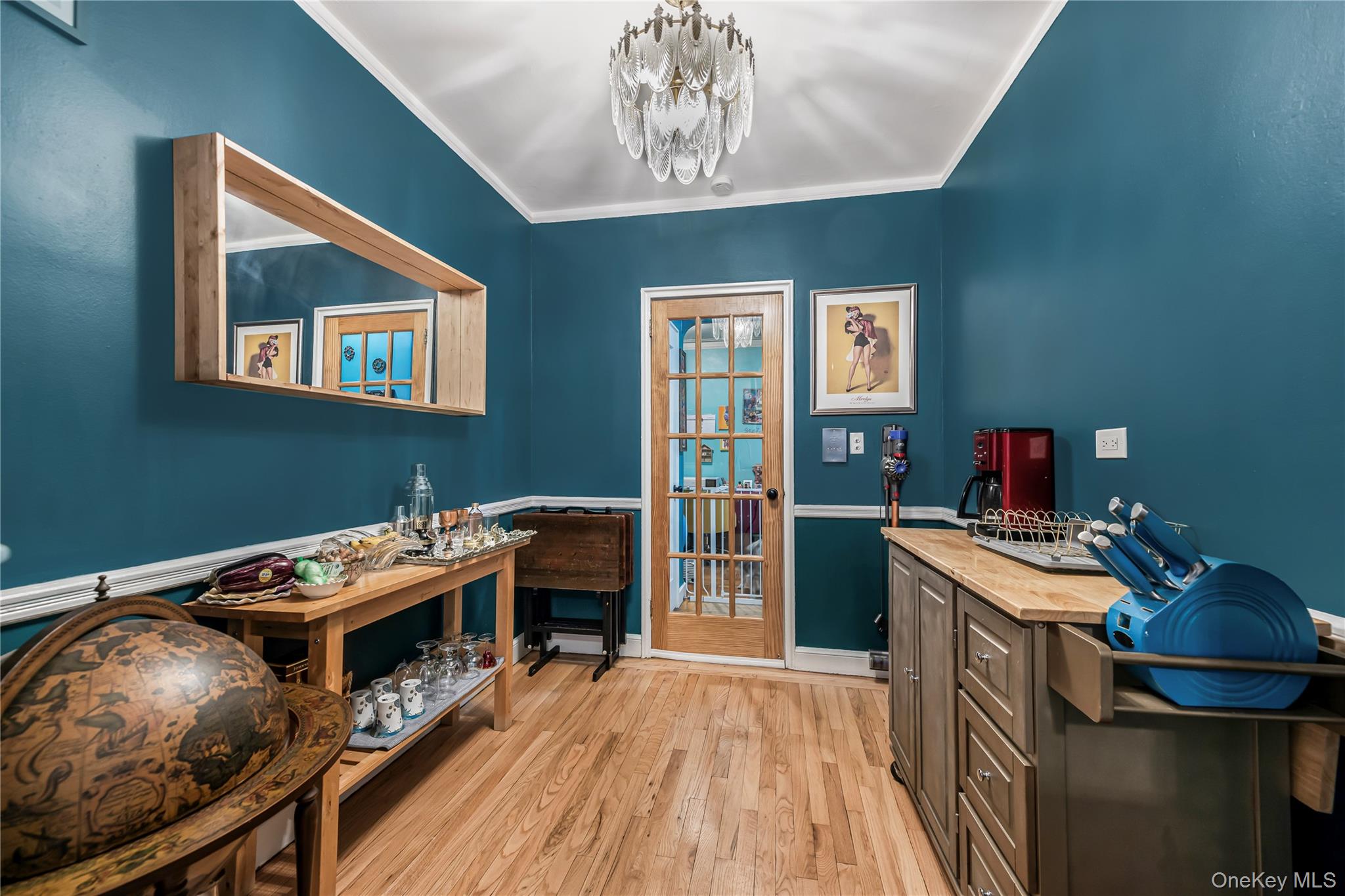 Step into this well designed 1 bed, 1 bath home with hardwood floors throughout featuring an entry foyer that leads to an expansive living room offering plenty of space to unwind or entertain. The separate dining area flows seamlessly into an updated kitchen outfitted with porcelain countertops and floors, decorative quartz backsplash, and stainless steel appliances. The spacious bedroom includes a large closet while the full hall bath is enhanced with an updated vanity and a freshly reglazed bathtub. Enjoy access to a common laundry room, live in super, fitness center, compactor on every floor, bike room, and a courtyard with outdoor seating to enjoy in the warmer months. Ideally located near 2 and 5 trains, local and express buses, as well as Bronx River Pkwy for easy commuting. Close to the Bronx Zoo, Botanical Gardens, and many shops and restaurants. A perfect blend of comfort and convenience awaits in this inviting home.
