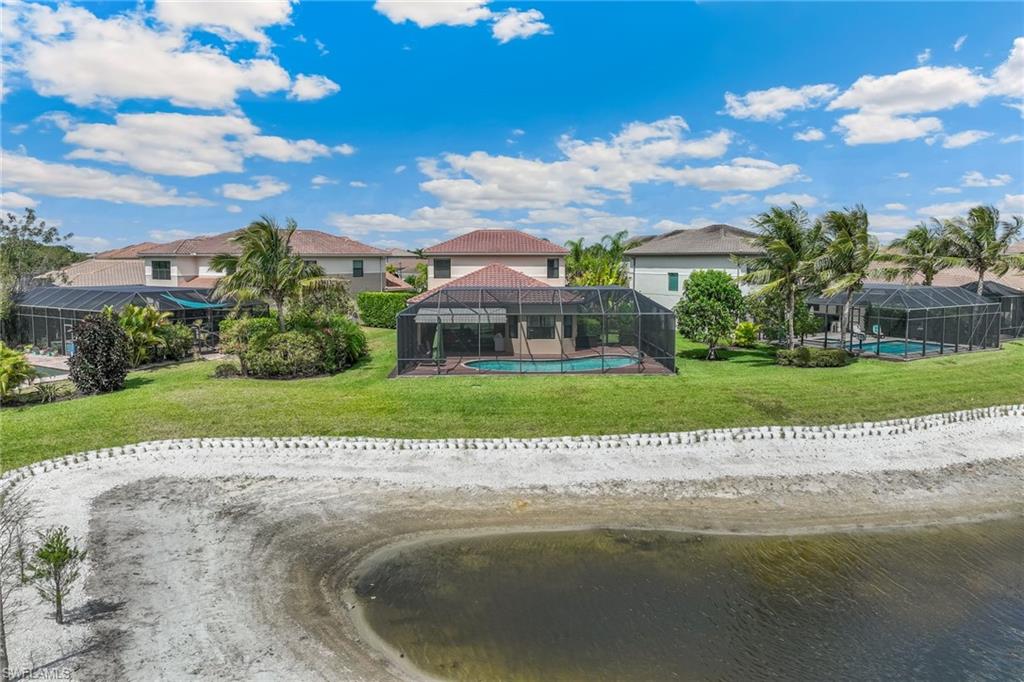 Oversized lot! Your private paradise, located on a premium oversized pie-shaped southern exposure corner lot in highly sought after Stonecreek. This spacious home offers the perfect blend of privacy, outdoor living and lots of yard space! From the moment you arrive, you’ll appreciate the extended driveway and lush landscaping that enhance the curb appeal. Step inside to find a spacious interior with high ceilings. The large kitchen is a chef’s dream, featuring stainless steel appliances, vented range hood, abundant storage, and casual dining area in the kitchen. The great room flows seamlessly to the expansive screened lana, ideal for relaxing or hosting guests while enjoying peaceful views of the lake. Relax poolside with expansive lounging areas, or cook a great meal in your outdoor kitchen, with extended shade from the extended awning. This home offers plenty of space with 4 bedrooms, a loft/flex room, and 4 bathrooms. The primary suite is tucked away on the on the 1st floor for privacy, and features dual walk-in closets and a spa-like en-suite bath. Remaining 3 bedrooms are on 2nd floor. Enjoy resort-style living in Stonecreek, a gated community with world-class amenities including a clubhouse, fitness center, resort and lap pools, splash pad, tennis, pickleball, and more. Top-rated school zone and just minutes from dining, shopping, and beaches. Don’t miss this rare opportunity to own one of the most desirable lots in Stonecreek!