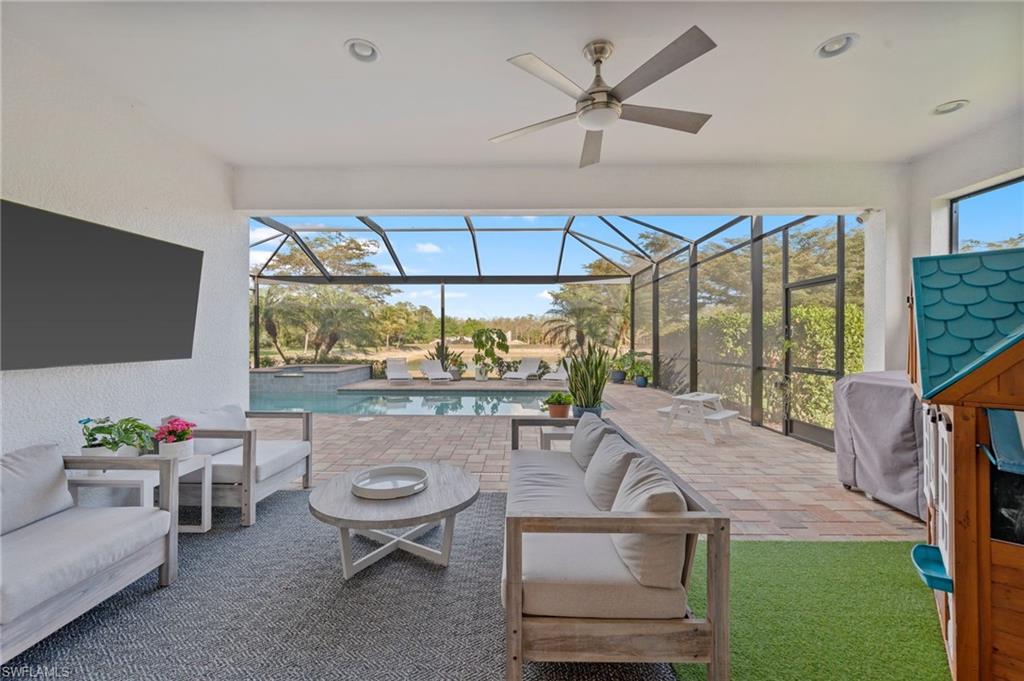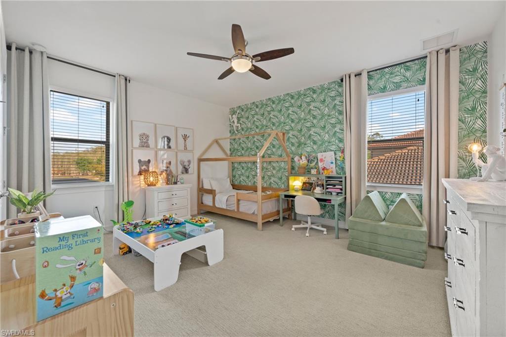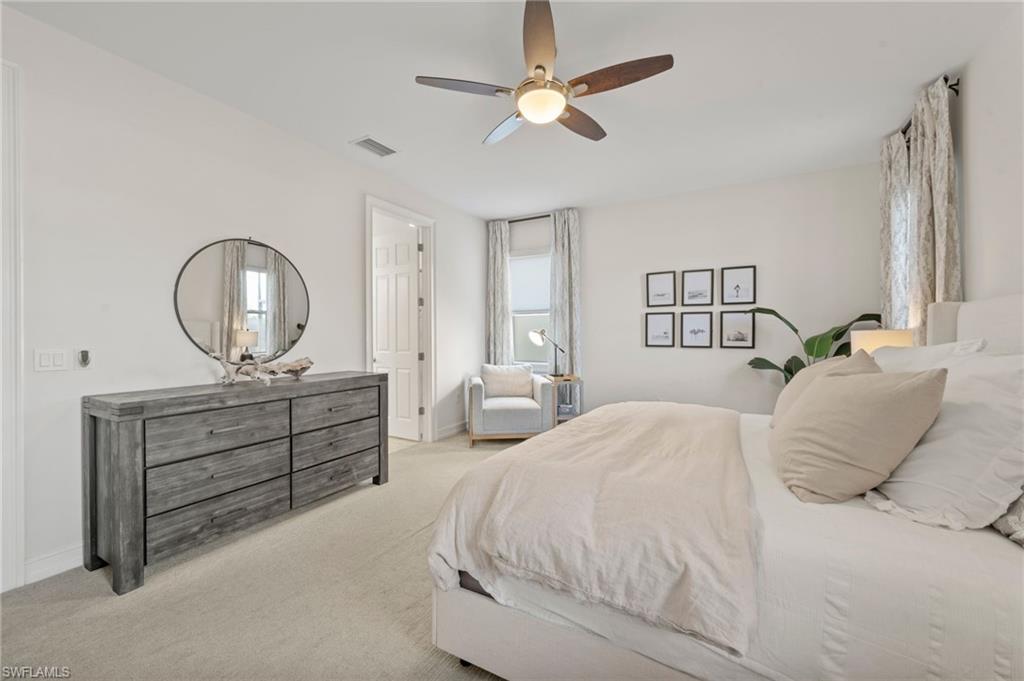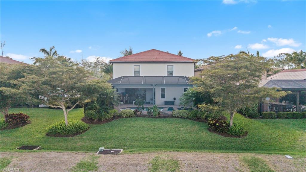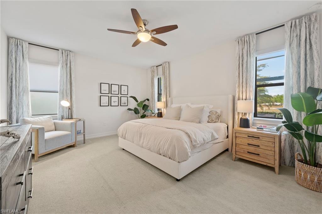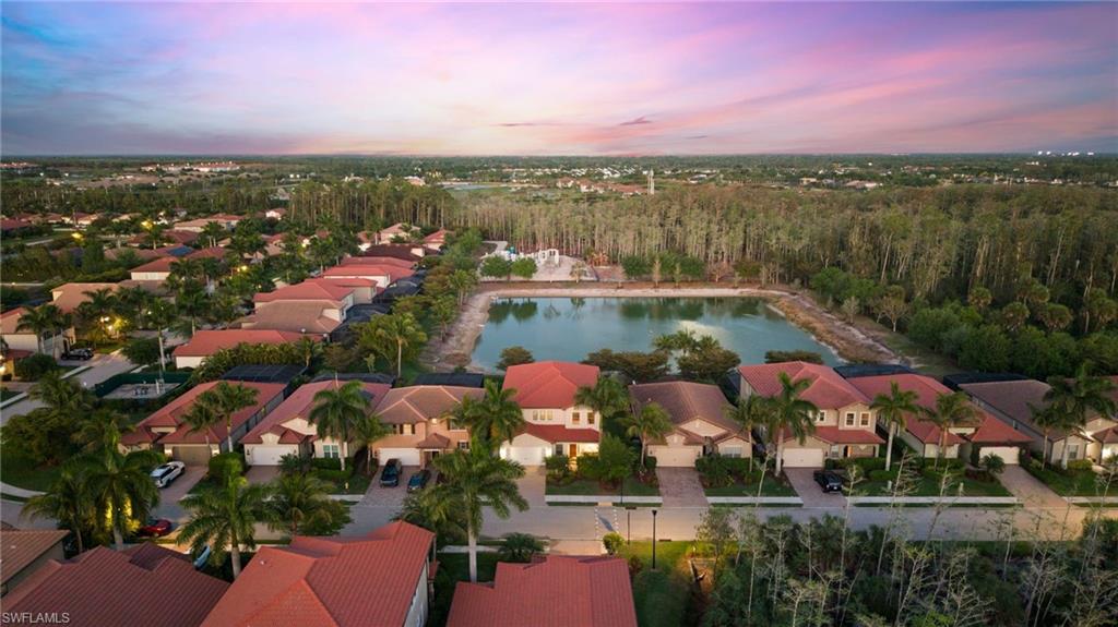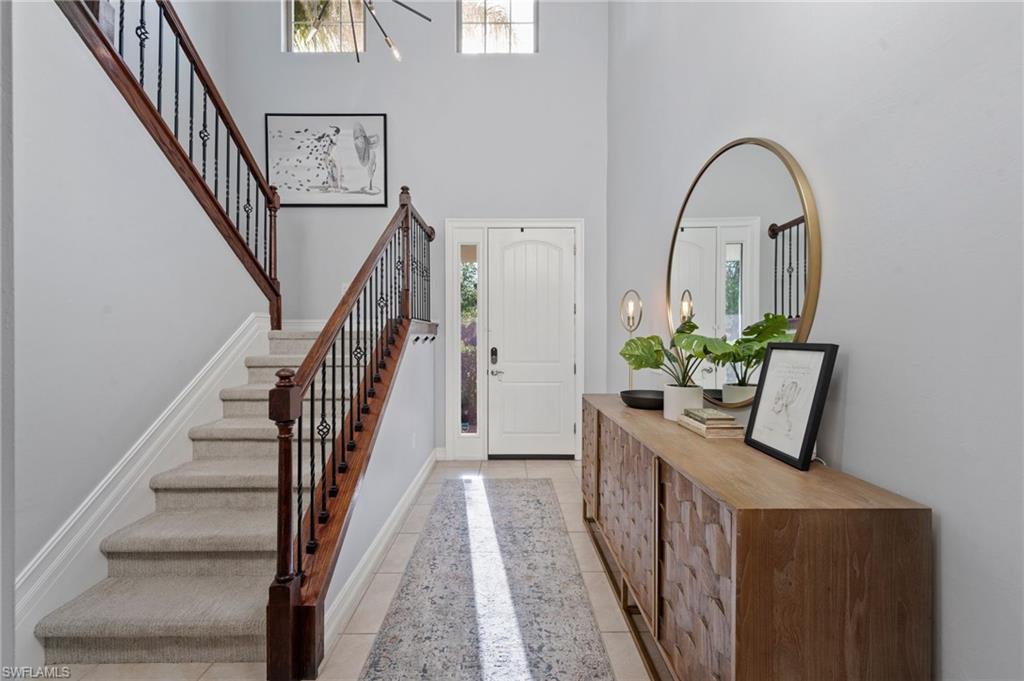 This exceptional 3, 600-square-foot two-story residence offers a rare blend of space, thoughtful design, and an unbeatable North Naples location—perfectly tailored for families seeking both comfort and style. Featuring five spacious bedrooms and three and a half baths, the layout is ideal for family living, offering the perfect balance of open gathering areas and private retreats. At the heart of the home, the beautifully upgraded kitchen shines with 42-inch cabinetry, quartz countertops with a full backsplash, stainless steel appliances, and a generous eat-in area. It flows seamlessly into the expansive family room, creating a central hub that’s perfect for everyday living, entertaining, and staying connected. Natural light fills the space, enhanced by motorized interior shades that provide both convenience and a modern touch. The first-floor primary suite serves as a private retreat for homeowners, complete with a large walk-in closet and a well-appointed bath featuring crisp white cabinetry and abundant storage. This thoughtful separation adds to the home’s family-friendly design. Upstairs, a large open loft offers incredible flexibility as a media area, play space, or secondary living room—ideal for families needing extra room to spread out. Four additional bedrooms and two full baths complete the second level, providing plenty of space for children, guests, or home office needs. Outdoor living is equally impressive. The covered porch and extended lanai lead to a stunning saltwater pool and spa, all overlooking incredible eastern-facing water, lake, and preserve views. Enjoy peaceful sunrises and tranquil mornings in a private, scenic setting that feels like your own personal retreat. Located in a highly rated school zone in North Naples, this home offers exceptional convenience with close proximity to Seed to Table, upscale shopping, dining, and the beautiful Gulf beaches. You’re also just a short drive from the vibrant and up-and-coming downtown Bonita Springs, making it easy to enjoy everything Southwest Florida has to offer. This home is a rare opportunity to own a spacious, beautifully upgraded property with a family-focused layout in one of Naples’ most desirable areas.