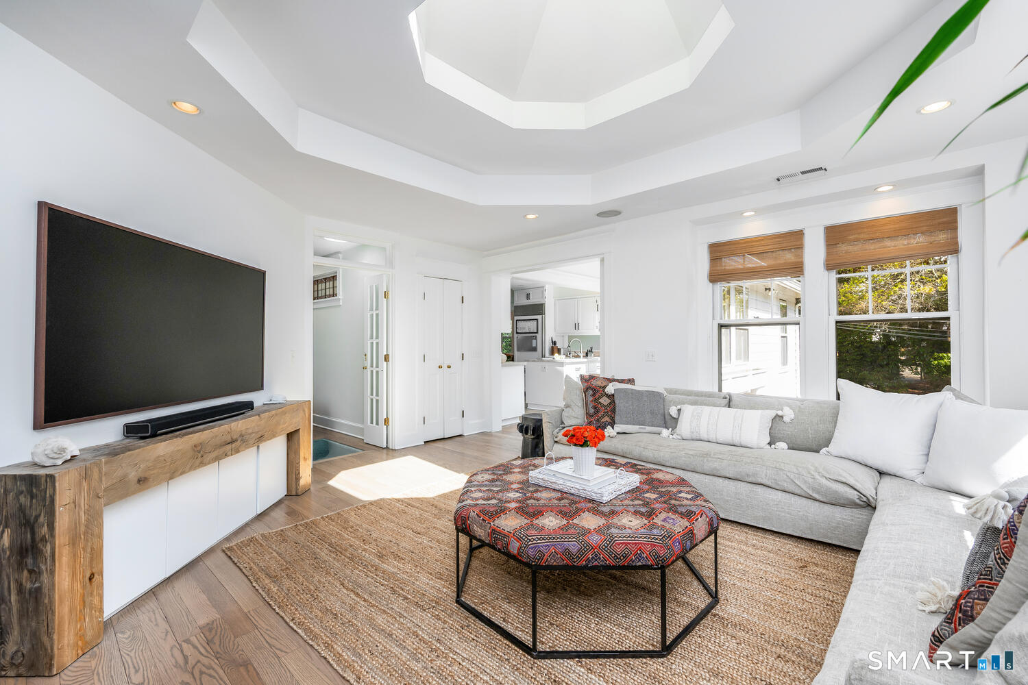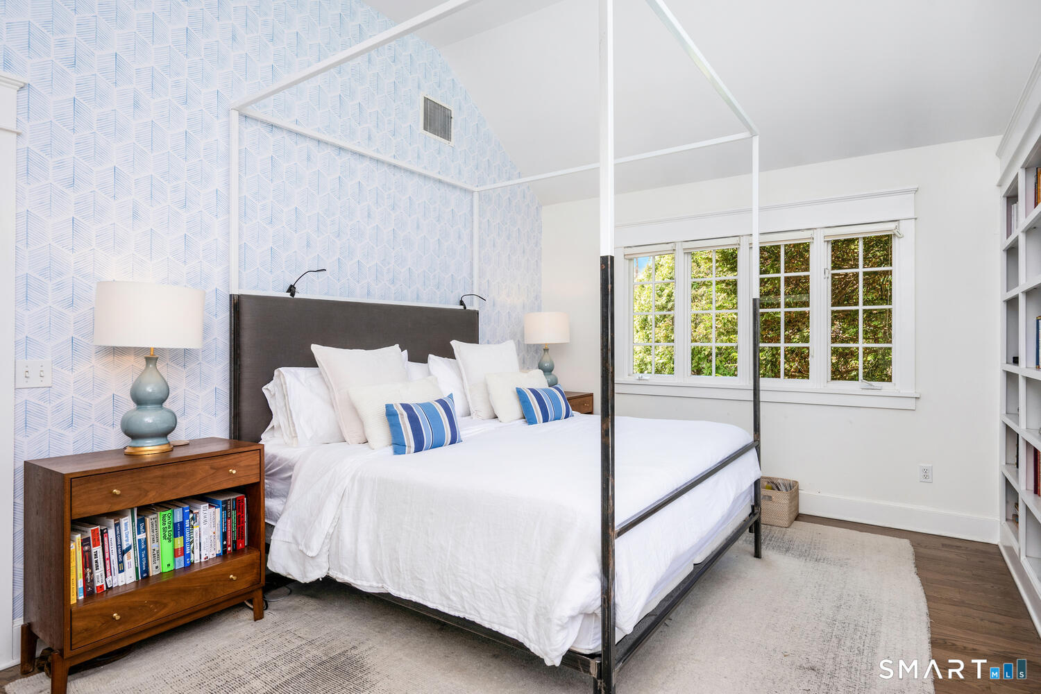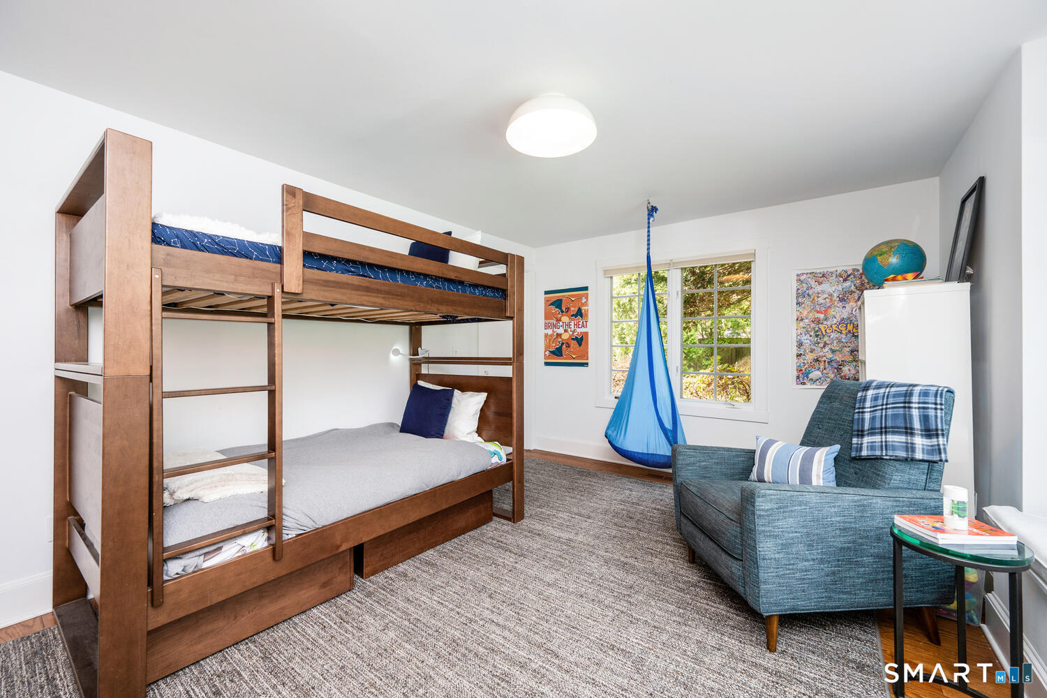 Few homes in Darien offer this combination: five bedrooms, five indoor entertainment spaces, a private elevator, gunite pool, hot tub, and pool cabana with wet bar-all on a private . 70-acre lot in the Tokeneke School district. Fully updated 2021-2026 and just a walk to Metro-North and downtown. Spanning three fully finished floors, the main floor is built for living and entertaining: a formal living room with fireplace, sunroom with, family room with fireplace, and a renovated chef's kitchen open to the dining room, featuring new cabinet doors, hardware, countertops, sink, faucet, pantry, and updated lighting. The primary suite features a dressing room and a cedar walk-in closet. Upstairs: home office and home gym. The at-grade lower level-built into natural ledge with no below-grade space-opens via French doors directly to the pool and features a pool entertainment room, three bedrooms, playroom, game room, cabana with wet bar, a mudroom, and two attached garages (a two-car garage and a separate third garage bay). Outside: gunite pool, new hot tub (2025), new pool heater (2024), pool cabana with wet bar and fridge, stone patio, large custom playset, full irrigation, fenced yard, and professional landscaping. Updated 2021-2026: two central A/C units, Ecobee smart thermostats, new appliances, refinished hardwood floors, renovated bathrooms, and painted exterior. No deferred maintenance. A private world of its own.