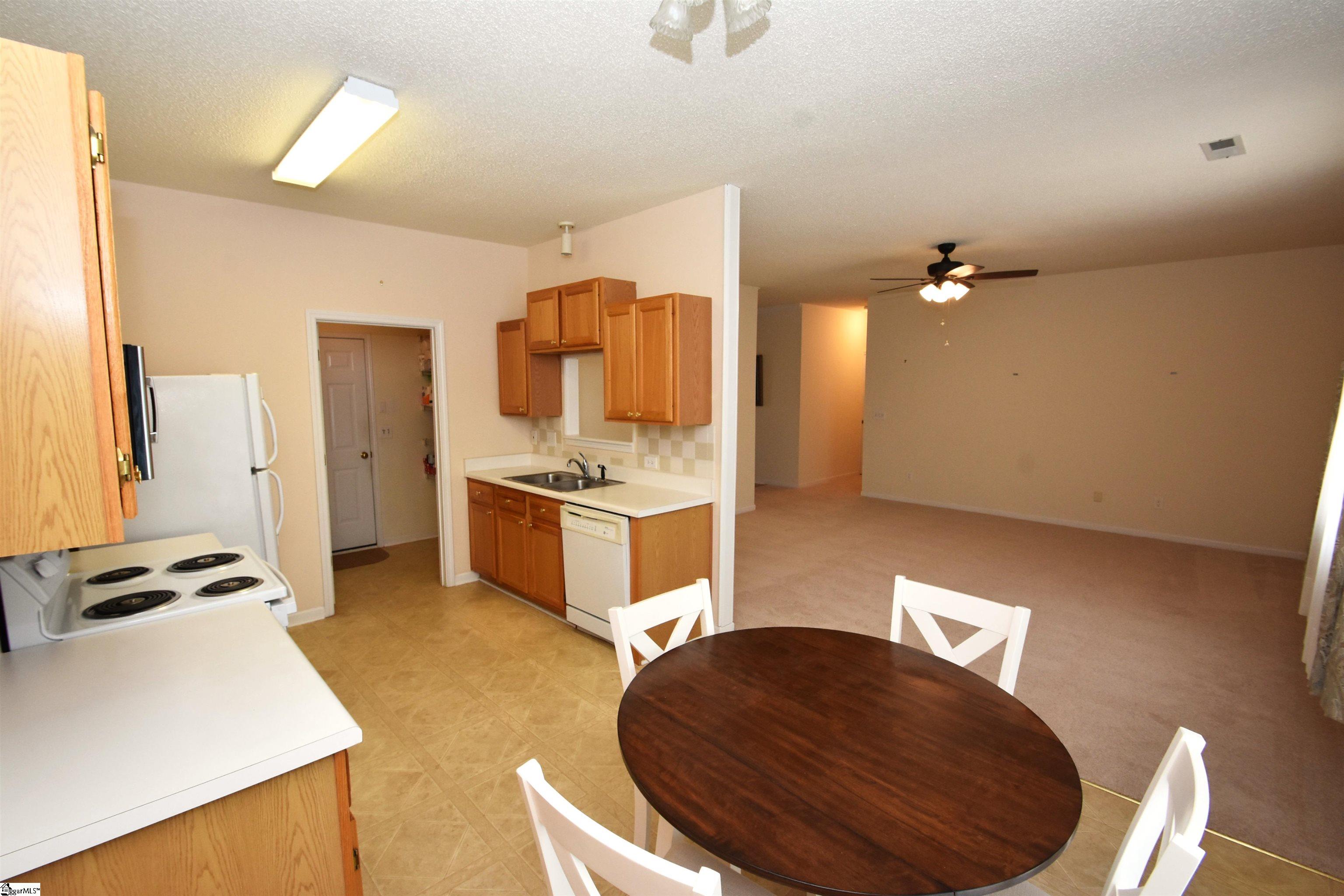 GREAT PRICE on this cute 1-STORY home that is SUPER CLEAN, and offers NEW CARPET in a house that has been very well cared for. Great Mauldin location too! You will appreciate the OPEN FLOOR plan with the kitchen overlooking the central great room dining area. All ceilings are 9’, creating a nice spacious feeling. Kitchen RANGE and REFRIGERATOR are 1 year old and the MICROWAVE is brand new. LAUNDRY room features shelving that works well for a pantry or general use. The WASHER & DRYER are 1 year old and can convey if needed. In the PRIMARY BEDROOM you will love the LARGE WALK-IN closet that offers a nice organization system. LVP FLOORING are recent updates the primary bath as well as the hall bath. Bedroom 2 has an extra long closet for storage. Other updates include: ROOF 2023, HVAC new 2023, GARAGE DOOR and opener 2024, new STORM DOOR at front. FRESH PAINT in primary bed & bath, bedroom 2. Garage is extra deep and has built-in base CABINETS AND COUNTER that works well as a work table, plus a WORK SINK for easy clean up. Peg boards on both garage walls provide you with plenty of storage space. Do not miss the garage yard door that gives you quick access to the right side of the house. An oversized back PATIO makes for shady afternoon retreat and a great place for grilling. This community has a nice AMENITY PACKAGE – pool, tennis courts, playground with nearby shelters, and clubhouse with kitchen. There is a convenient tunnel that takes you under Ashmore Bridge for easy pedestrian access to the clubhouse and pool area. Just around the corner from the house is a 2. 5 acre recreational FIELD for your enjoyment. Great location in Mauldin with quick access to the center of Mauldin or the new Publix shopping center at Ashmore Bridge and Fork Shoals.
