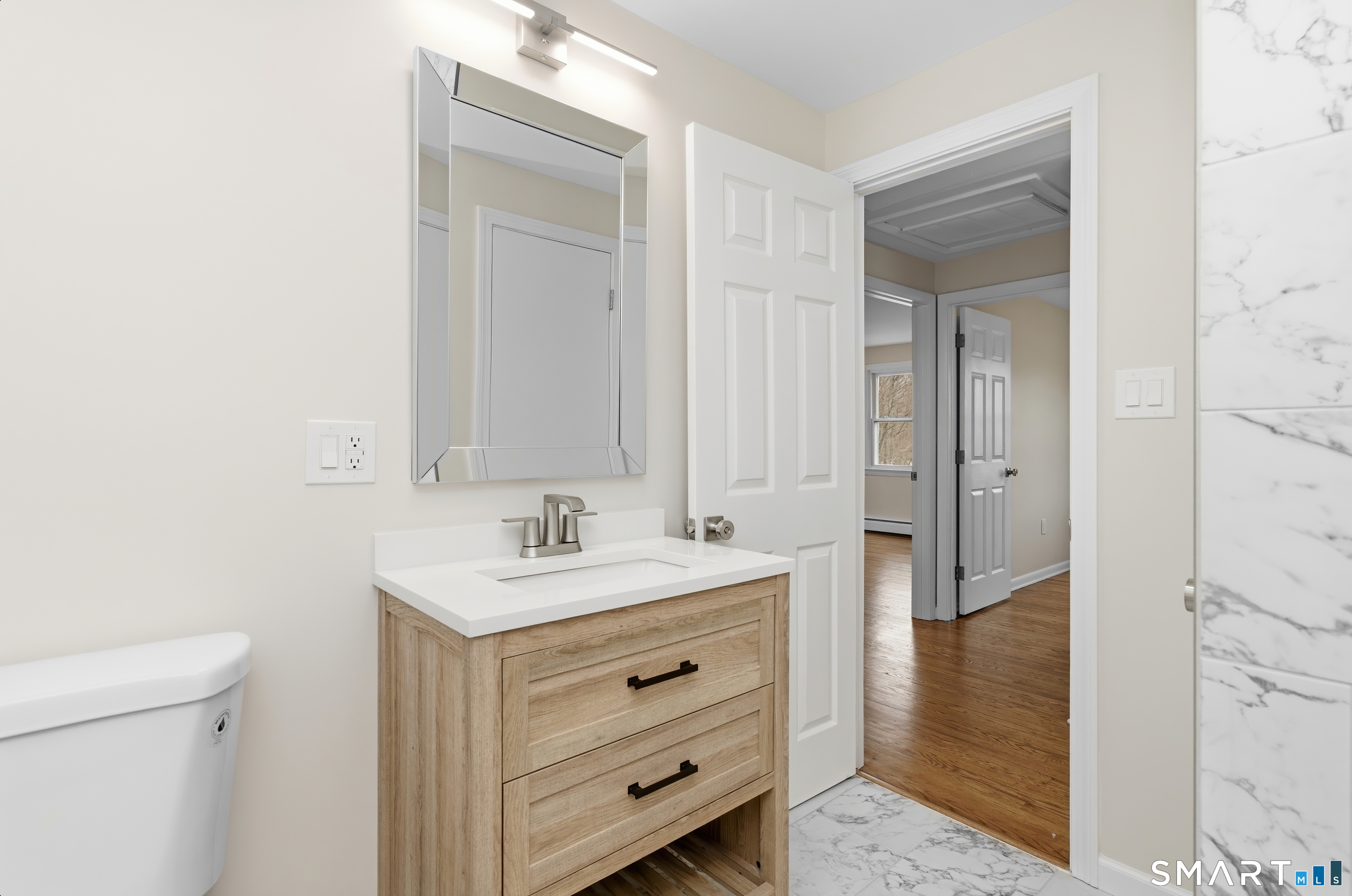 Welcome to 46 Rainbow Court, a beautifully updated home tucked away on a quiet culdesac in Hamden. Set on an elevated lot, this property offers both privacy and a wonderful setting for everyday living and entertaining. The upgraded, openconcept kitchen is the heart of the home, featuring stainless steel appliances, a spacious center island with electric oven and cooktop, and a sleek range hood overhead-perfect for cooking and gathering. Hardwood floors throughout the home have been recently refinished, adding warmth and a fresh, modern feel. This home offers two fully updated full bathrooms and the convenience of a twocar garage. Step outside to a very large rear deck, ideal for hosting summer gettogethers or simply relaxing while surrounded by mature trees that provide excellent privacy. With its peaceful culdesac location, elevated setting, and thoughtful updates throughout, 46 Rainbow Court is movein ready and offers the perfect blend of comfort, style, and seclusion. Owner/Agent