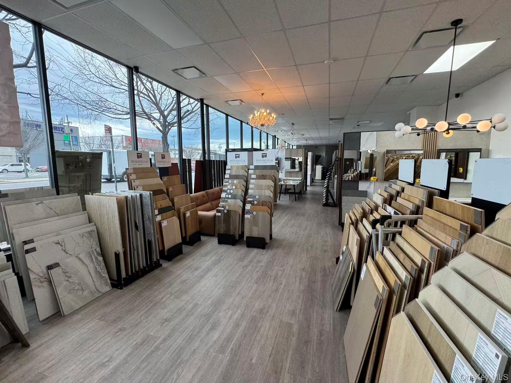 This is a spacious retail store specializing in renovation materials and modern design styles, located in the bustling and highly sought-after commercial area of King Plaza in Brooklyn.