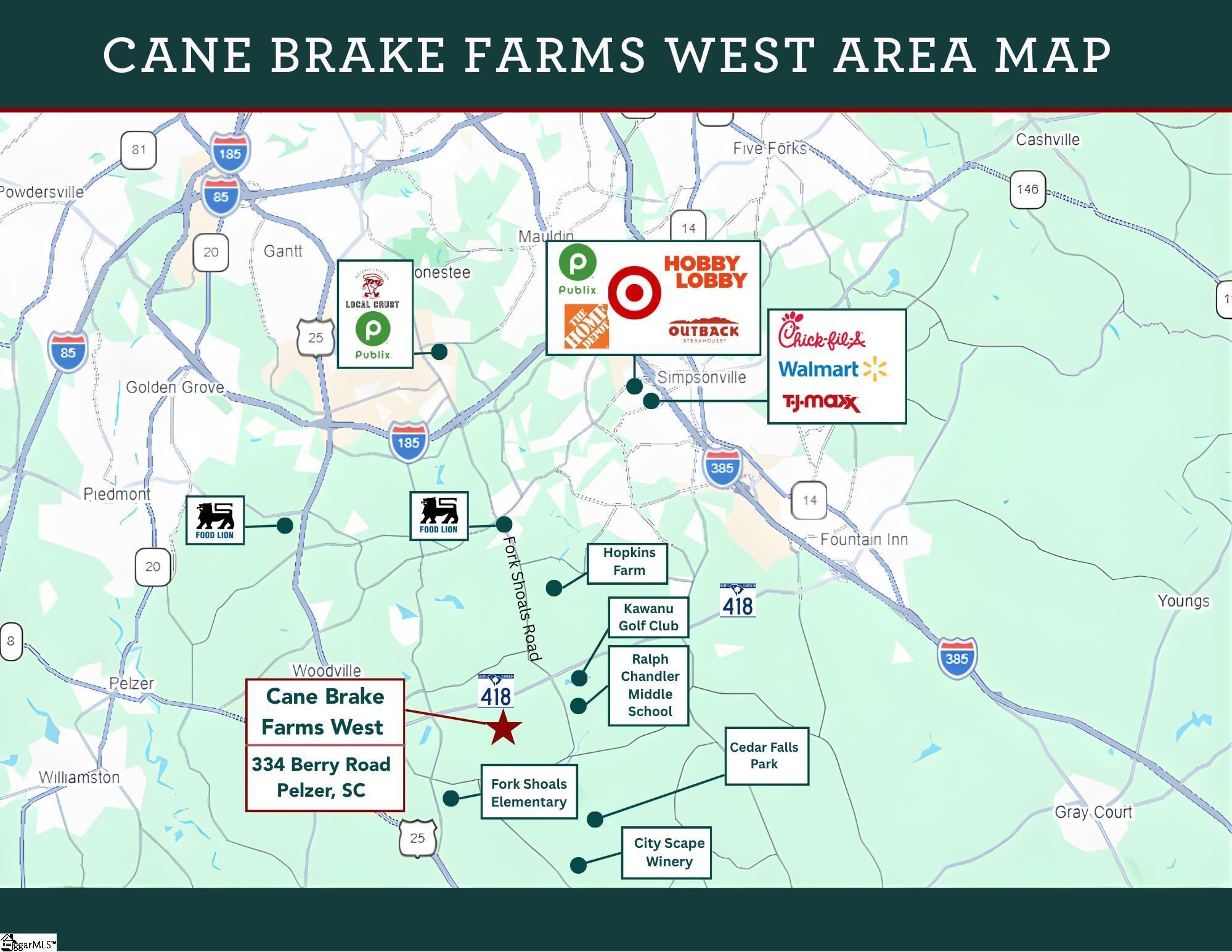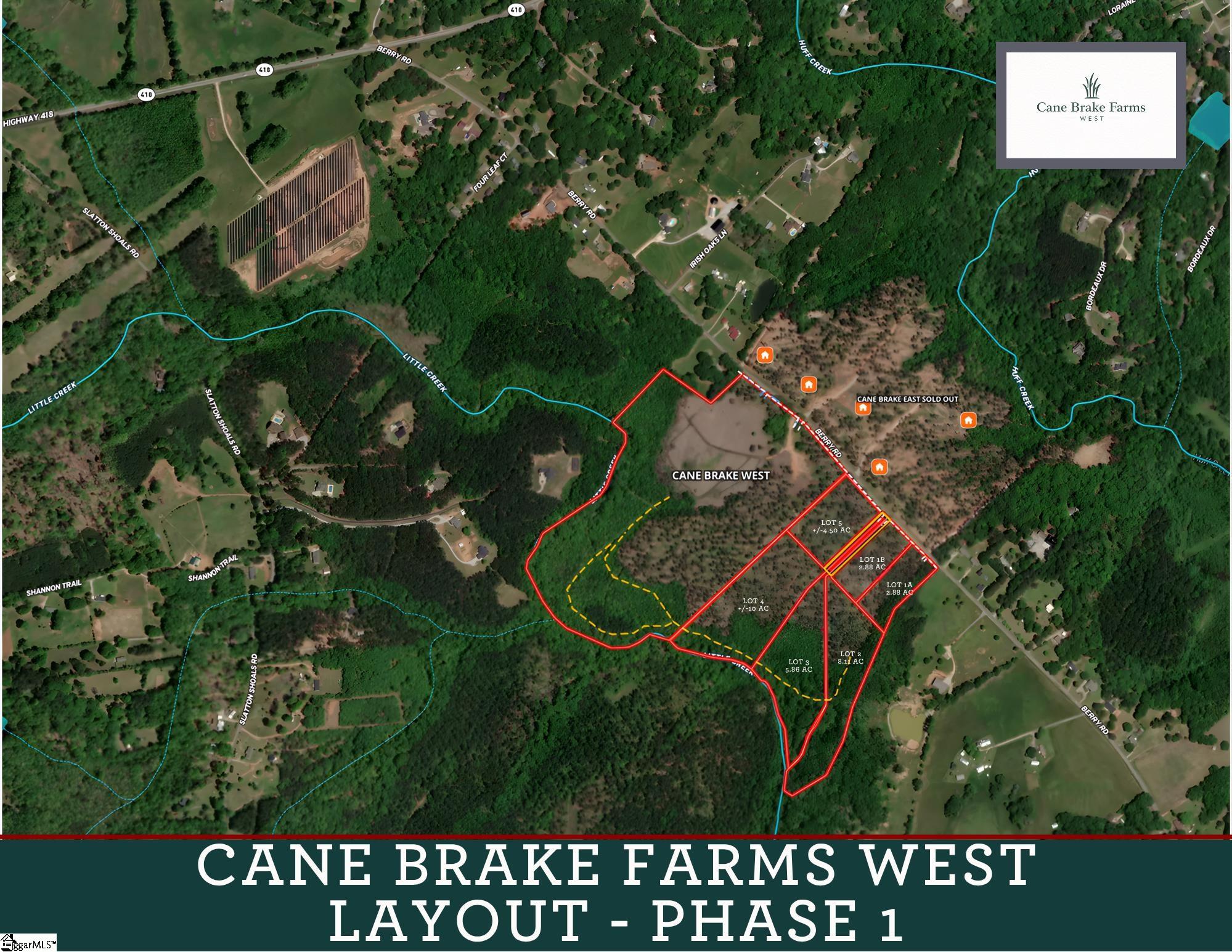 This is a +/-5. 9 acre Lot #3 in Cane Brake West. A well-designed, low density estate farm community - you'll enjoy clean country living without sacrificing accessibility. A beautiful creekside estate farm lot - offering the perfect blend of privacy, natural beauty, large-lot community, and convenience - a rare blend in Greenville, SC! This exceptional property features rolling topography ideal for building your dream home. 745 feet of scenic creek frontage. Located just 25 minutes from Downtown Greenville and 15 minutes to Simpsonville, 10 minutes to Publix, and 5 minutes from the new Kawanu Golf Club. With no HOA, you have flexibility while still maintaining quality standards through reasonable restrictions, including no mobile homes, minimum build size, and no noxious uses. Priced at $275, 000. Cane Brake West offers the distinction and flexibility not found elsewhere.