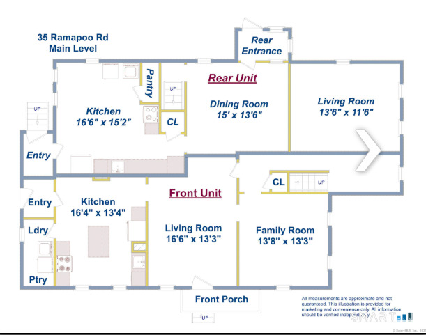 Perfect for multi-generational living, this unique two-family home in the heart of Ridgefield offers space, flexibility, and comfort for extended families! Ideal for families wanting private living areas under one roof, investors seeking strong income potential, or homeowners looking to offset expenses, this versatile property accommodates a variety of lifestyles. Each unit provides well-proportioned living spaces, and the home sits proudly on a desirable corner lot just steps from all the amenities of town living. The main living space welcomes you with a bright, open kitchen featuring a center island for casual dining, connecting to the dining and living room. Upstairs, you'll find three generously sized bedrooms and a full bath. Additional highlights include a charming front porch and a dedicated laundry room. The rear unit, with a private entrance, has newly refinished hardwood floors, a large eat-in kitchen and a welcoming living and dining space. The upper level includes three bedrooms, a full bath, and an additional room perfect for a home office, guest space, or nursery. Both units are equipped with their own washer & dryer, have separate electric service, and individual oil tanks for efficiency. The rooms are large and both sides have lots of light and new windows. The attic and cellar span the full size of the house and are full height. Town water and sewer! Discover the possibilities this home has to offer!
