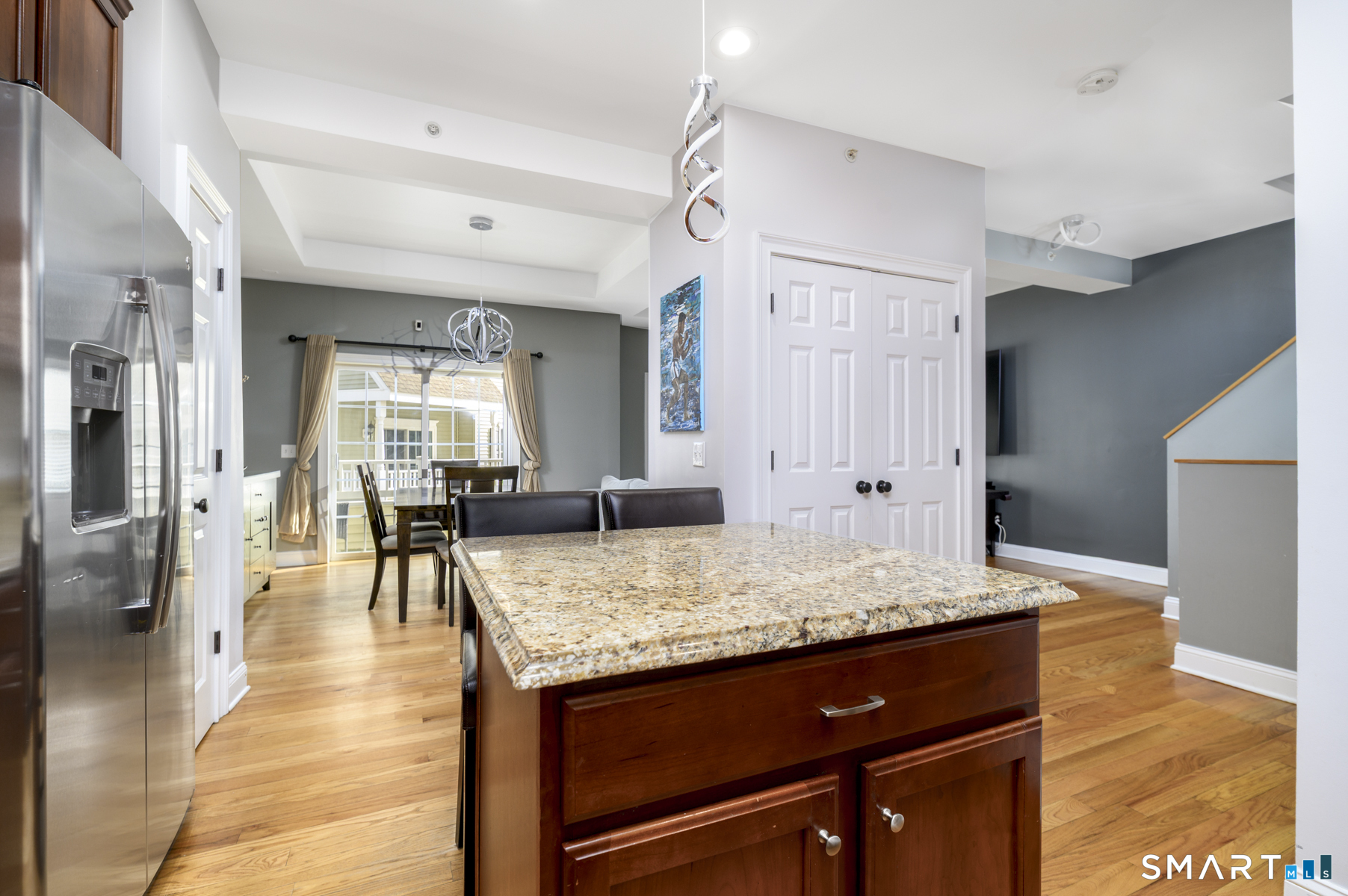 Freshly updated with a price improvement, 130 Main Street Unit E4 is the opportunity you've been waiting for. This move-in ready 2-bedroom, 2. 5-bath townhouse with a two-car garage delivers the perfect blend of style, space, and convenience. The main level showcases gleaming hardwood floors and an effortless open layout ideal for entertaining and everyday living. The kitchen features a center island and flows seamlessly into the dining area with sliders to a private balcony-perfect for morning coffee or evening unwinding. The living room is elevated by elegant coffered ceilings, adding a sophisticated touch. Upstairs, the spacious primary suite offers a walk-in closet and private bath, while a second bedroom, full hall bath, and in-unit laundry provide comfort and ease. The expansive third-floor loft is a true bonus-ideal as a guest suite, home office, or flexible living space. Enjoy year-round comfort with a 3-zone HVAC system and unbeatable commuter convenience with easy access to I-95, the Merritt Parkway, and nearby train stations. Stylish, versatile, and now priced to move-don't miss it!