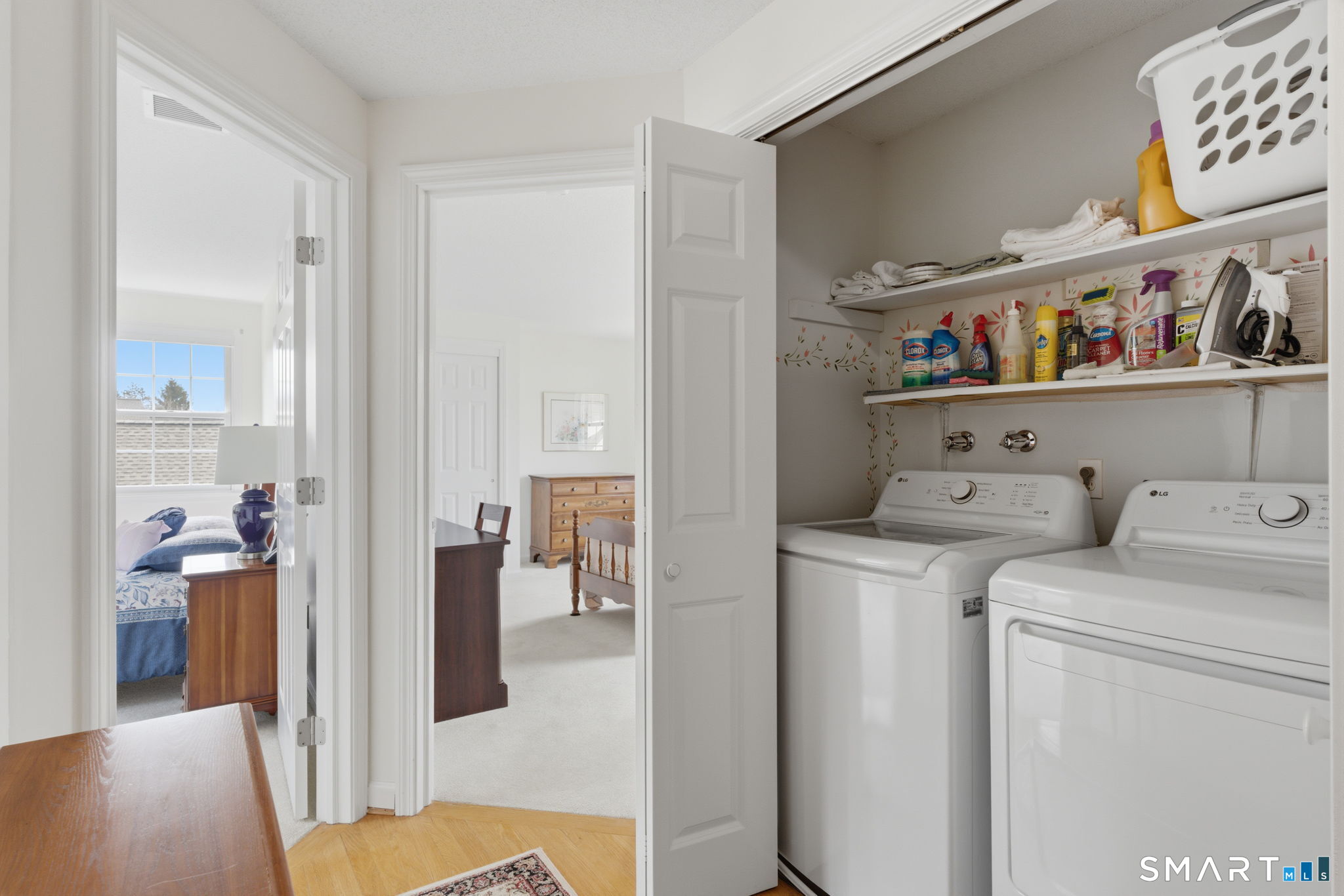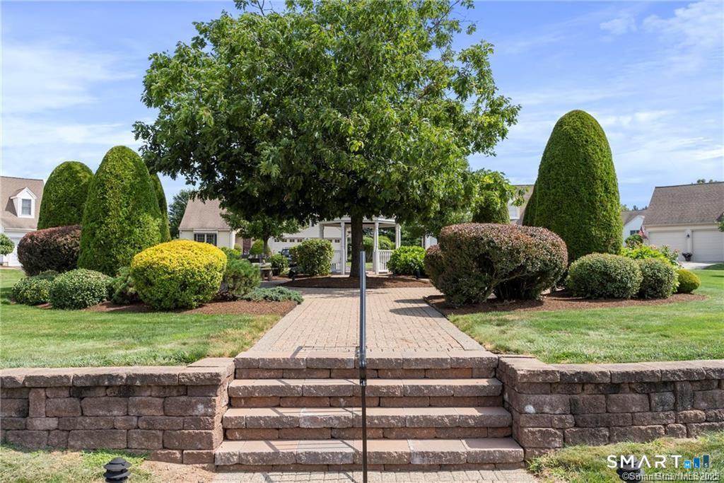 Multiple offers received-please submit highest and best by 6: 00 PM on 4/6. This brick-front townhouse offers exceptional curb appeal in the highly desirable Collier Farms community. Ideally situated just steps from the park-like gazebo with benches and beautifully maintained gardens, this home offers both comfort and convenience. With 1, 548 square feet of living space, the home features 2 bedrooms, 2. 5 baths, and a detached one-car garage just a short walk away. The updated eat-in kitchen is thoughtfully designed with recessed lighting, a cozy front window bench, granite countertops, tile flooring, and quality cabinetry. It opens seamlessly to the dining area, where rear windows fill the space with natural light. The dining room flows into a welcoming living room with a gas fireplace and built-in cabinetry, as well as a den offering lovely backyard views. A glass door leads from the main level to a spacious 15' x 10' wood deck-perfect for outdoor entertaining. Hardwood floors run throughout the dining room, living room, and den, complemented by an abundance of windows. Upstairs, both bedrooms feature private en-suite baths. The primary suite offers a generous walk-in closet and a full bath with a tub/shower combination. The second bedroom is also spacious, with its own private bath and walk-in shower. A conveniently located upper-level laundry closet adds everyday ease. A full basement with standard ceiling height, offering ample storage space, including a large closet. Exceptionally clean and well-maintained. Recent updates include a brand-new roofalong with a 2018 replacement of the central air conditioning, gas furnace, and water heater. Dedicated parking spot just steps from your front door for ultimate convenience. Please note that the garage is detached. A walkway off the back deck leads directly to it, and this unit's garage is the far-right one. The door is unlocked. The association takes care of grounds maintenance, as well as snow removal. Collier Farms is not an age-restricted community, offering flexibility and appeal for a wide range of buyers.