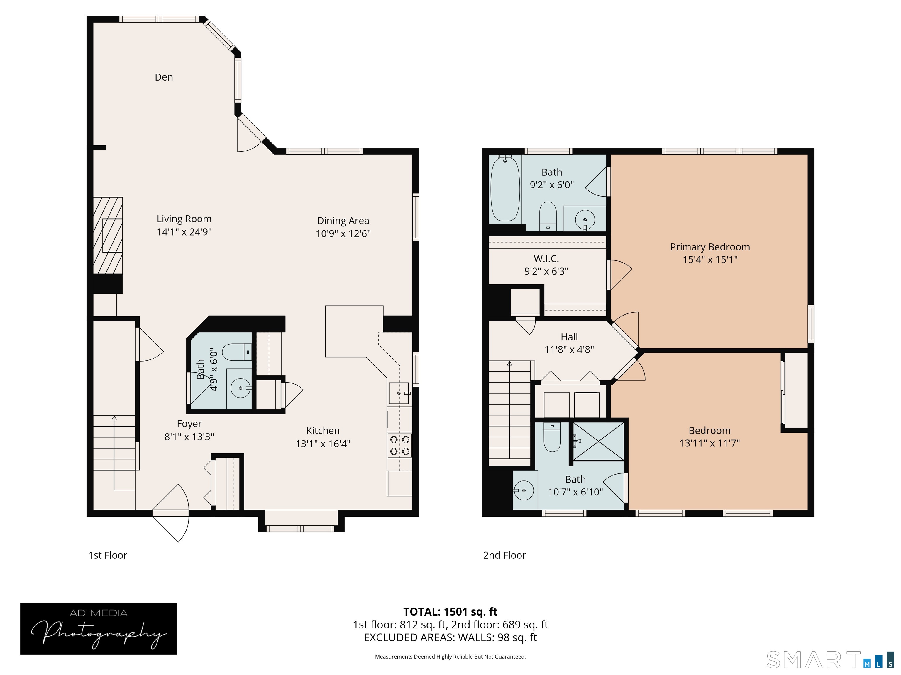 | Primary Bedroom | Full Bath,Tub w/Shower,Walk-In Closet,Wall/Wall Carpet | 15.4 x 15.1 | Upper |
