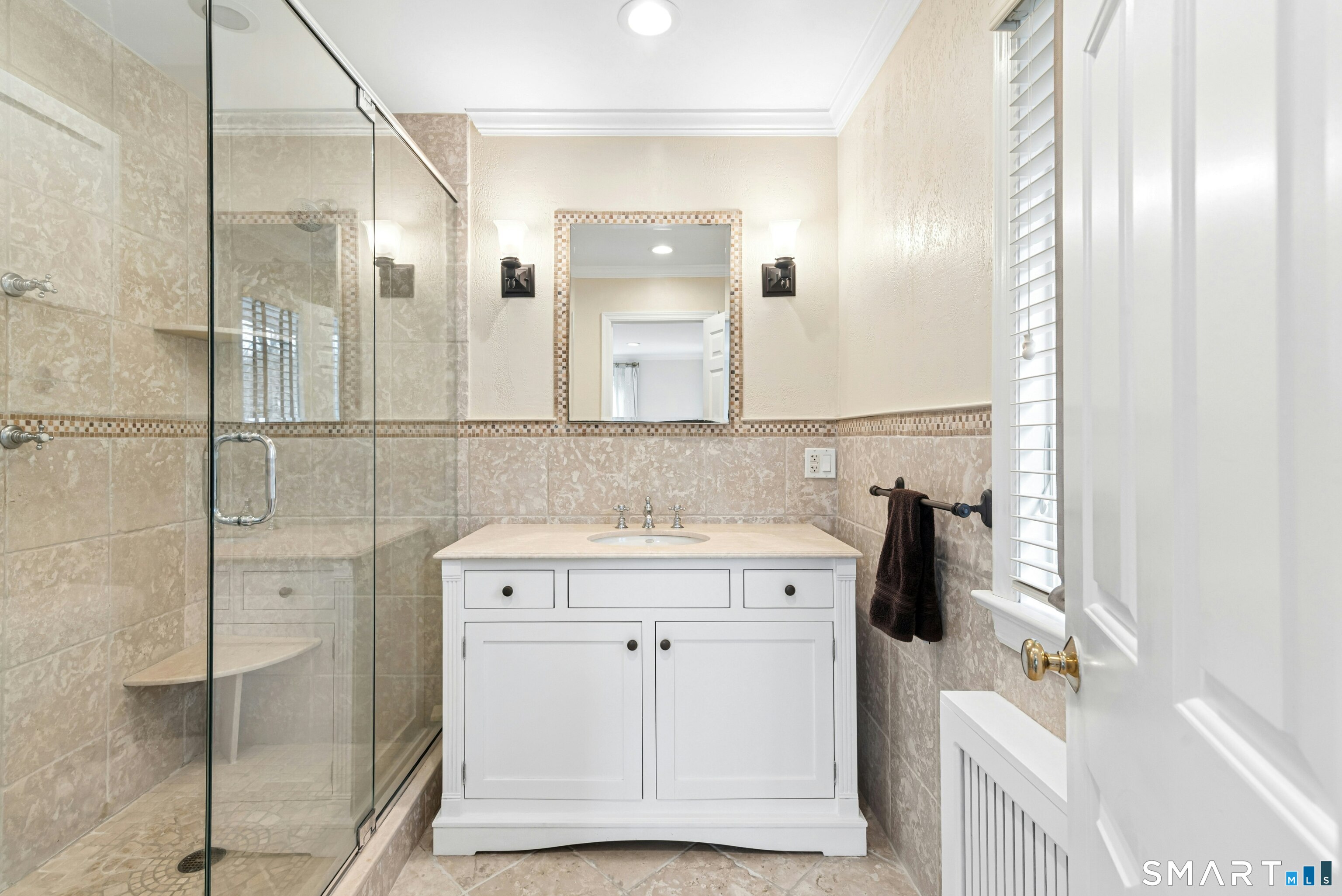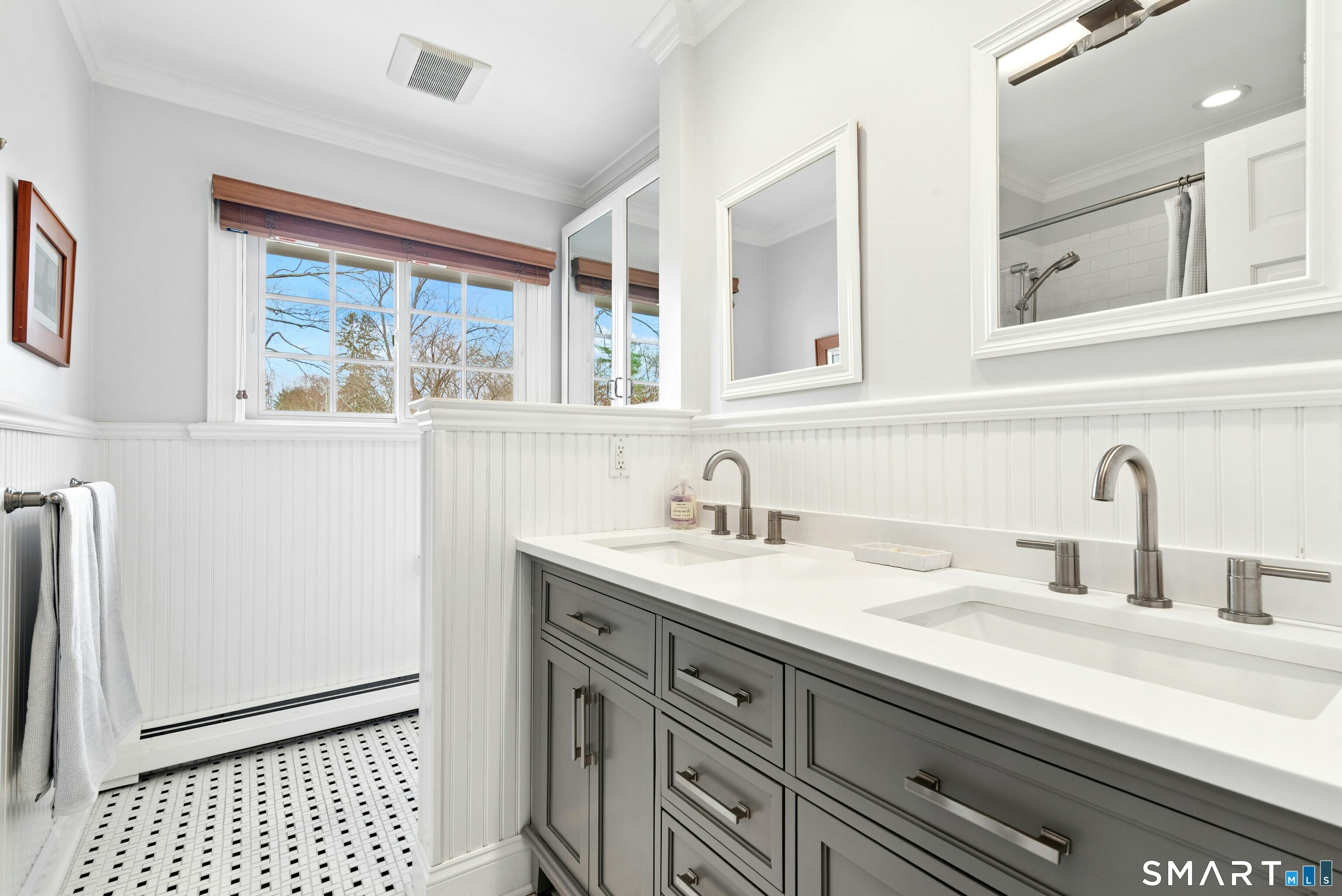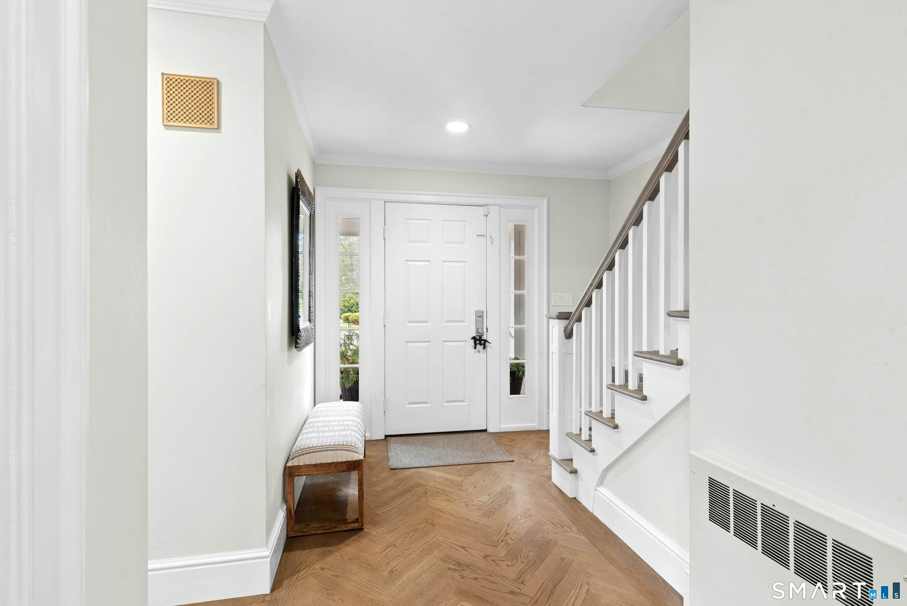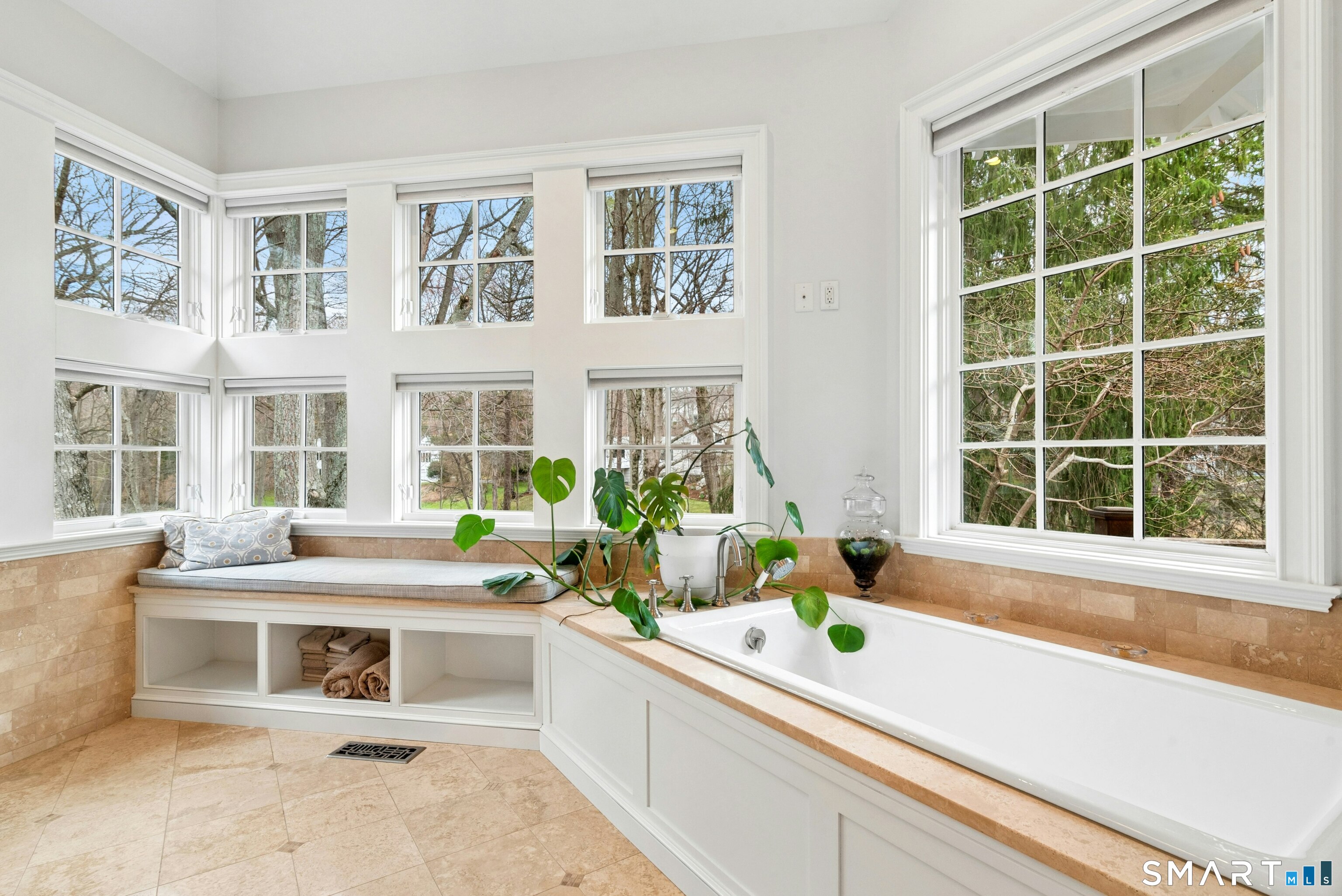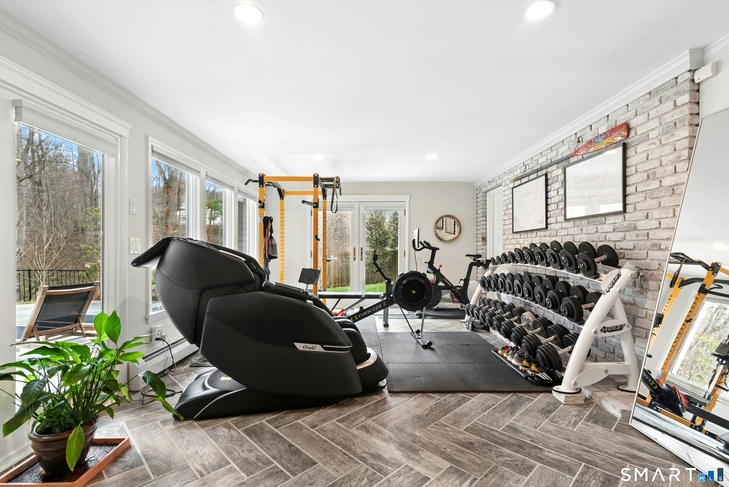 Rarely do you find a property that has it all: a spacious move-in ready house with a pool, and a private one-acre parcel close to everything Darien has to offer. Tucked away at the end of a cul-de-sac, steps away from the newly reimaged town center, and close to beaches, this thoughtfully renovated 5 bed/4. 5 bath home strikes just the right balance between comfortable living and sophistication. With tons of natural light, the first floor features an open living/dining room with access to the deck overlooking the pool, a kitchen with cozy banquette, family room with built-in desks and shelving, and a mudroom with laundry and custom cubbies. There are 4 spacious bedrooms and 3 baths upstairs, including a luxurious primary suite with vaulted ceiling, office, and generous walk-in closet and bathroom. The 5th bedroom, and 4th full bath, are in the walkout lower level which also offers a large "hang out" room with plenty of space for both relaxing and working out. For the car enthusiast, the detached barn, with heat and A/C, has an additional 2 garage bays as well as a workshop. Surrounded by nature, and awash with lush gardens, this is an unexpected oasis in the center of town.