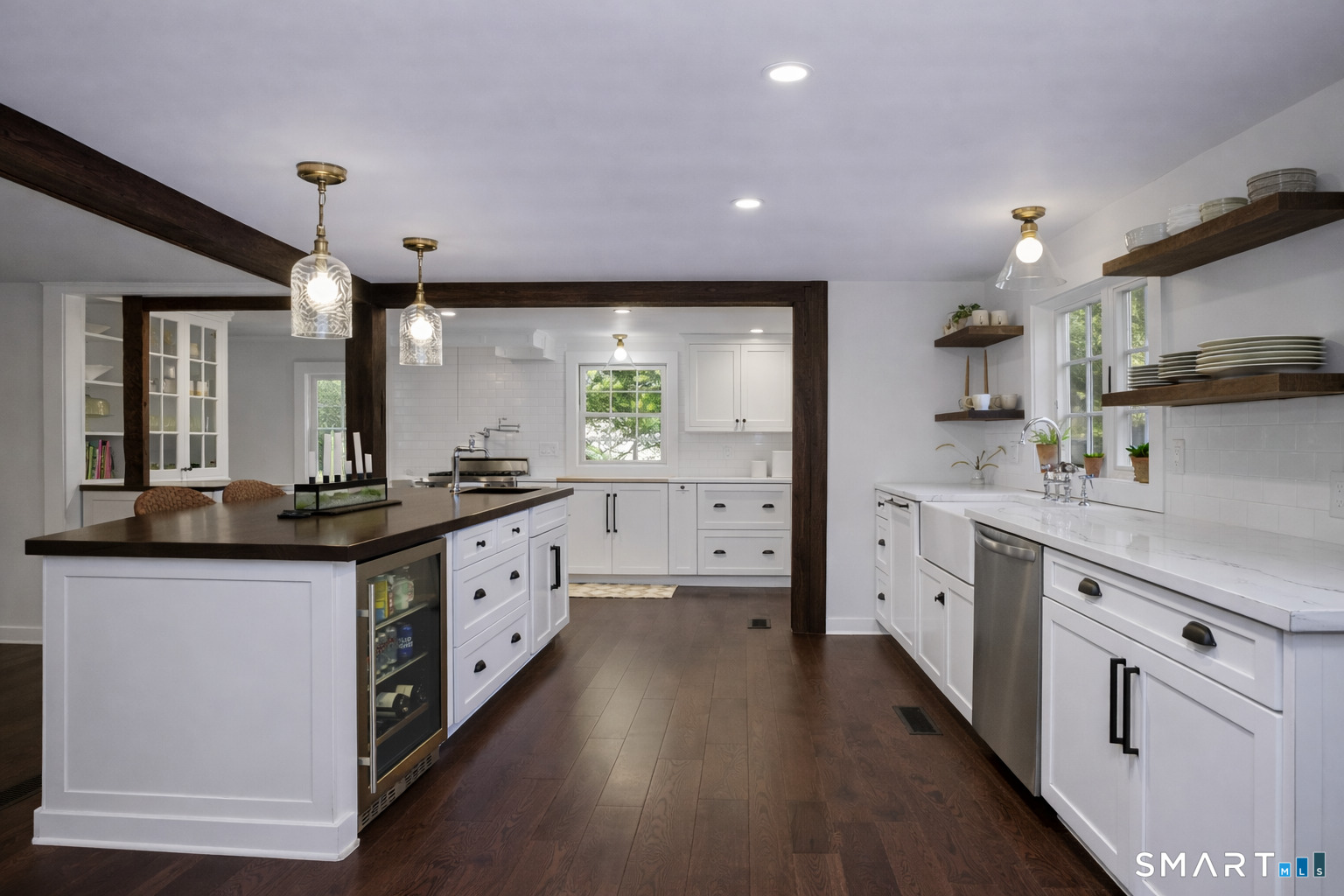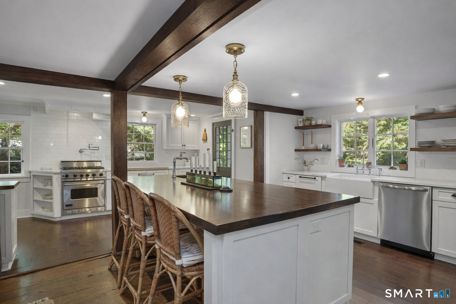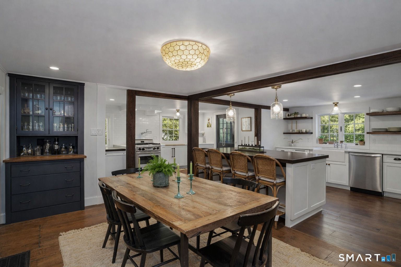 Set on a spacious . 48 acre corner lot in the highly sought-after Silvermine area, this stylish antique farmhouse offers four bedrooms and 2. 1 baths, blending timeless character with modern convenience. A splendid kitchen and mudroom addition was completed in 2022. The kitchen features a large island, quartz countertops, and stainless-steel appliances. The graceful open floor plan includes custom built-ins, wide plank hardwood floors, and two fireplaces. The primary suite with a vaulted ceiling, large closet and double vanity primary bath provides a peaceful retreat. The exterior is designed for entertaining, with a wraparound porch, large patio, stone fire pit patio and a barn that houses an art studio/entertaining space. Askimg for Highest and Best offers Monday, 4/13 at 3: 00pm