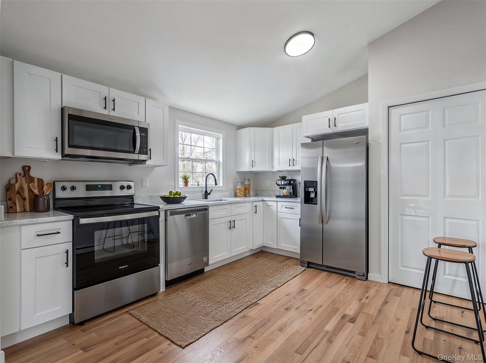 Located in the heart of Selden, this beautifully renovated 4-bedroom, 2-bath home blends modern sophistication with everyday comfort. Nestled within the highly sought-after Middle Country School District, this property has been beautifully updated from top to bottom. Step inside to discover a bright and inviting open layout, anchored by a stunning gourmet kitchen featuring white shaker cabinetry, quartz countertops, stainless steel appliances, and a charming breakfast nook with sliders leading to your private rear deck—perfect for morning coffee, casual dining, or entertaining guests. Luxury hardwood flooring throughout, recessed lighting, and a neutral color palette run throughout, offering a seamless and contemporary design. Both bathrooms have been stylishly updated with custom tilework, frameless shower doors, and modern finishes as well as a dedicated laundry area. The lower level offers additional versatility with a full bedroom and walkout access, perfect for guests, extended living, or flexible use. Situated in a well-established neighborhood, this home not only offers high-end updates but also access to an unbeatable lifestyle. Enjoy walkable access to local shops, restaurants, and more—making it the perfect combination of tranquility and convenience. Do not miss this opportunity.