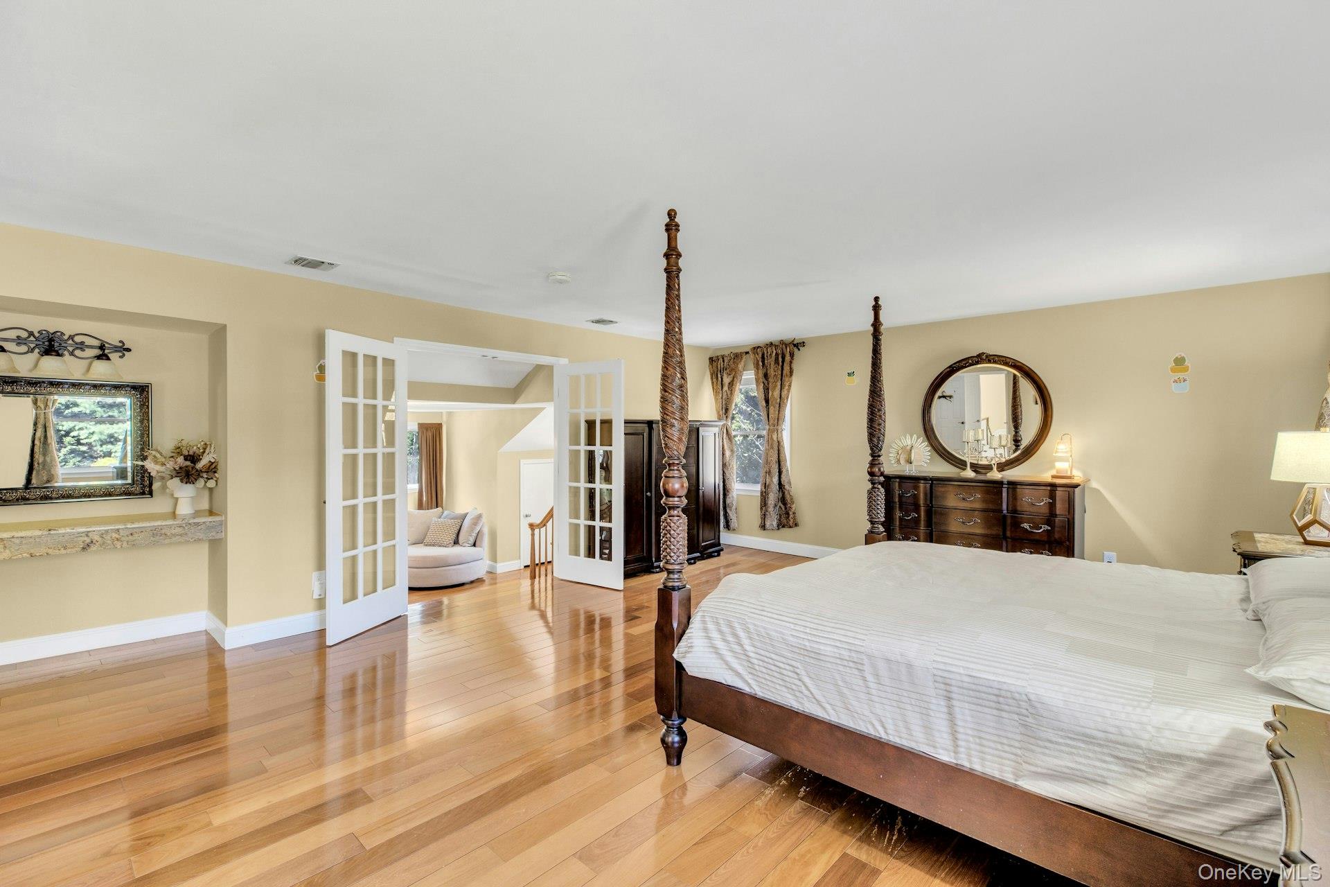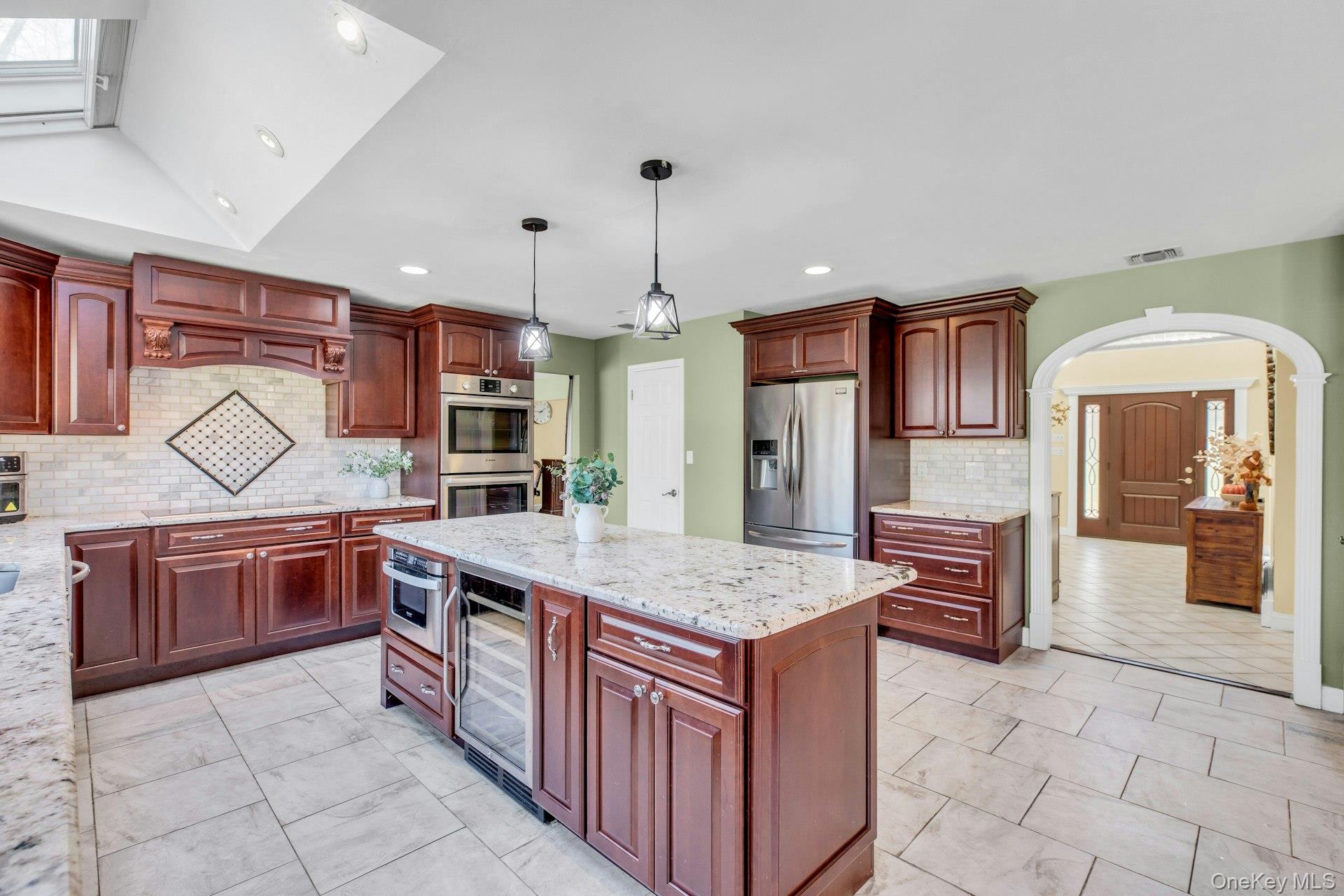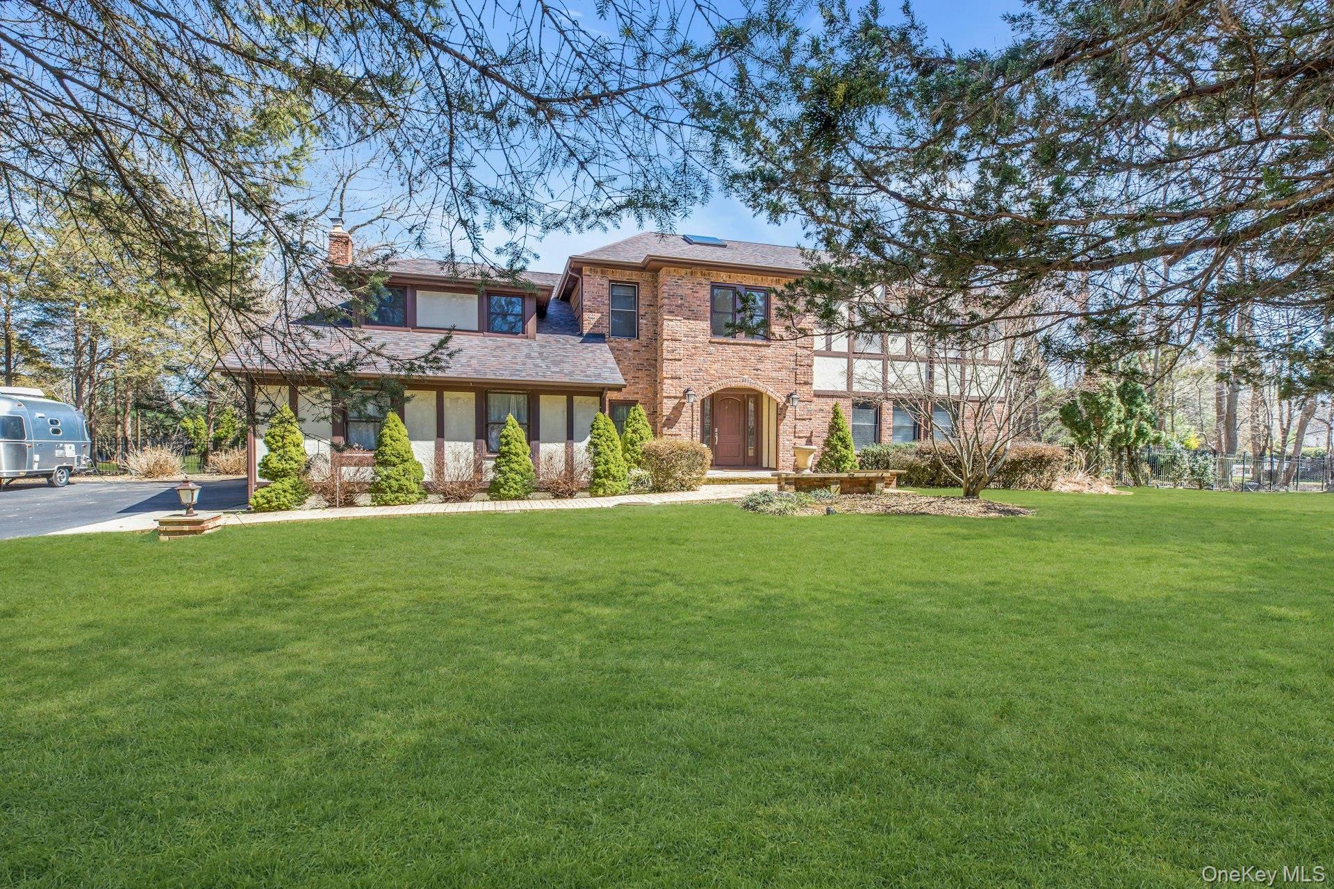 Beautiful Colonial style home on a professionally landscaped one acre lot in desirable Saint James, bordering a private nature preserve! Home features cathedral/vaulted ceilings, 4/5 bedrooms, 3 baths, gourmet kitchen w/ granite countertops & high-end appliances/double ovens, formal dining room, living room, master bedroom suite w/ 2 large custom-built walk-in closets & spacious updated bathroom w/fireplace, hardwood floors throughout. The home also features 4 skylights, 2 fireplaces, central VAC, large family room. Backyard includes large L-Shaped in-ground pool w/waterfall, Patio w/ outdoor kitchen & fire pit. Perfect for entertaining! Full basement w/ 9'ft ceiling. Close to school, beaches, parks, dining, shopping, LIRR.