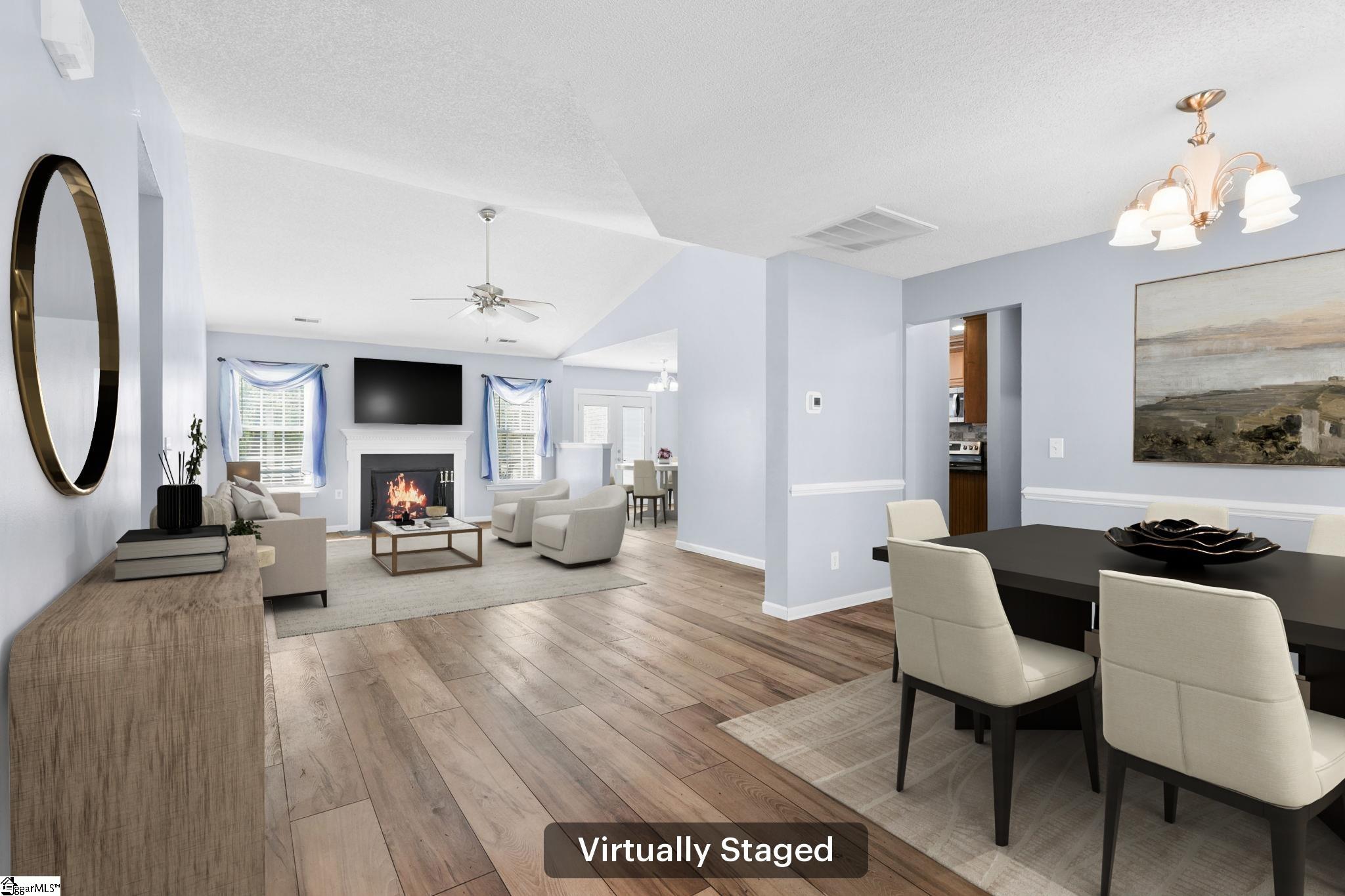 Welcome home to this extensively updated, move-in ready residence where thoughtful upgrades and quality craftsmanship truly shine. Nearly every major component has been improved, including a custom kitchen renovation (2023) featuring quartz countertops, solid wood soft-close cabinetry with pull-outs, a large lazy Susan, and a travertine backsplash. Durable Shaw Floorte Titan HD+ LVP flooring (2023) flows throughout, complemented by fresh interior paint (2026) and upgraded vinyl siding. Designed with a desirable split floor plan, the private primary suite is tucked away, while two additional bedrooms and a full bath sit on the opposite side. The formal dining room and spacious great room create a central hub ideal for both everyday living and entertaining. Upstairs, a versatile flex room offers the option of a fourth bedroom, office, or playroom. Additional improvements include an insulated garage with a new smart garage door opener, upgraded plumbing fixtures with Moen faucets and shutoffs, a pressure regulator system, new hose bibs, and consistent HVAC servicing twice yearly. A current termite bond adds peace of mind. Enjoy the fenced backyard—perfect for relaxing or entertaining. Lovingly cared for over the years, this home is ready for its next chapter — offering a new family the opportunity to create lasting memories of their own.