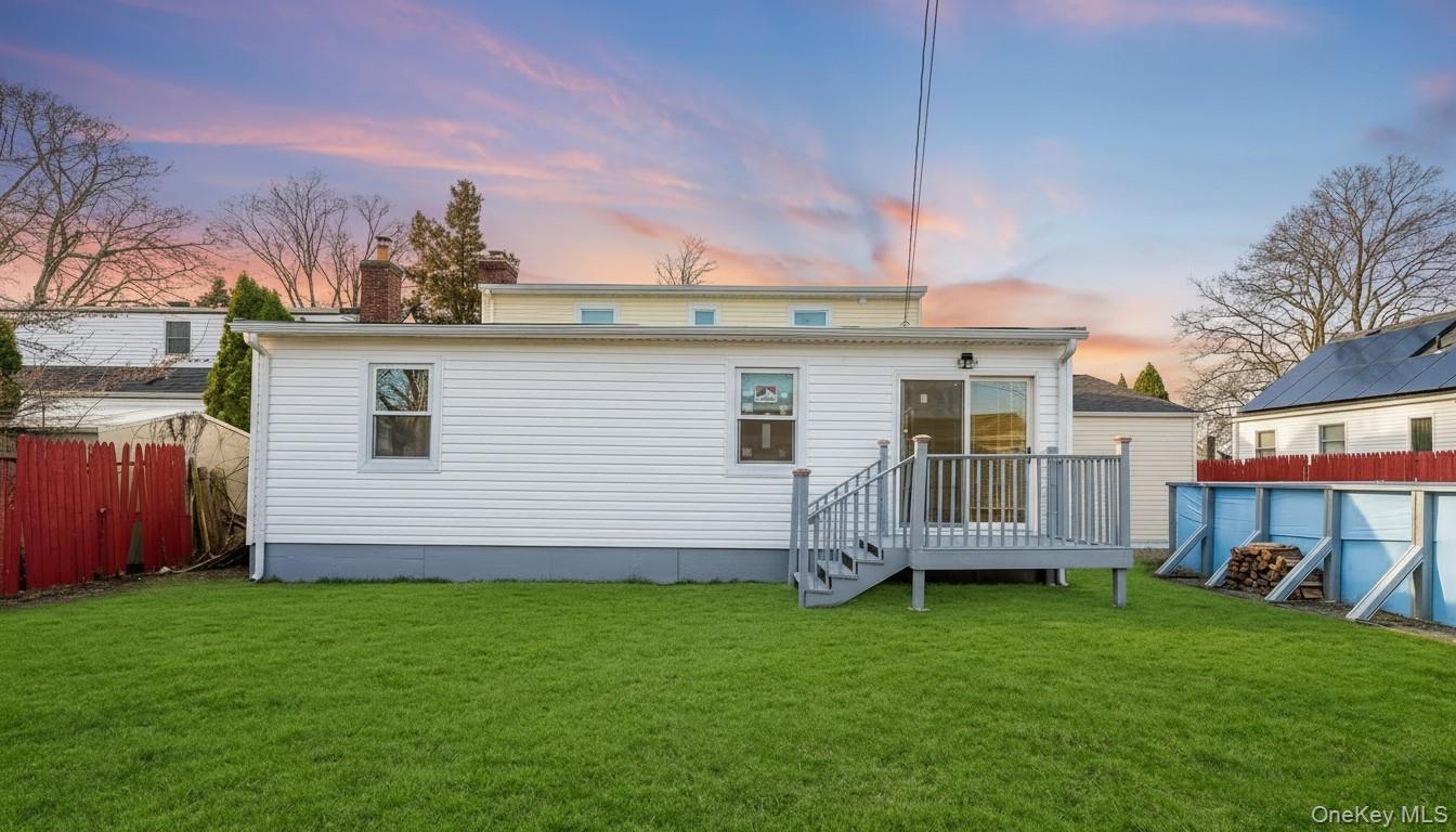 Discover this stunningly renovated 6-bedroom, 4-bathroom Cape Cod-style home nestled in the heart of Hicksville. Boasting over 2, 300 sq. ft. of living space on a generous 6, 630 sq. ft. lot, this residence perfectly blends modern luxury with functional living. Recently updated with high-end finishes, including brand-new, designer bathrooms and a fresh, modern aesthetic throughout. Features stainless steel appliances, dark wood cabinetry, and elegant decorative backsplashes. The first floor features durable and stylish ceramic tile flooring, an open-layout living and dining area, and spacious bedrooms. A massive lower level offers endless possibilities for a home theater, gym, or recreation room, complete with ample storage and built-in shelving. With 6 bedrooms distributed across levels and a back dormer, this home offers potential Mother-Daughter setup (with proper permits. Classic brick siding, a brand-new roof, and a well-manicured front lawn. A fully fenced backyard featuring a wooden deck and an above-ground pool—perfect for summer entertaining. Includes a 1-car attached garage and a private driveway. Efficient oil heating and public sewer/water services. Don’t miss this rare opportunity to own a high-capacity, renovated home in a prime Nassau County location near schools, shopping, and transportation!