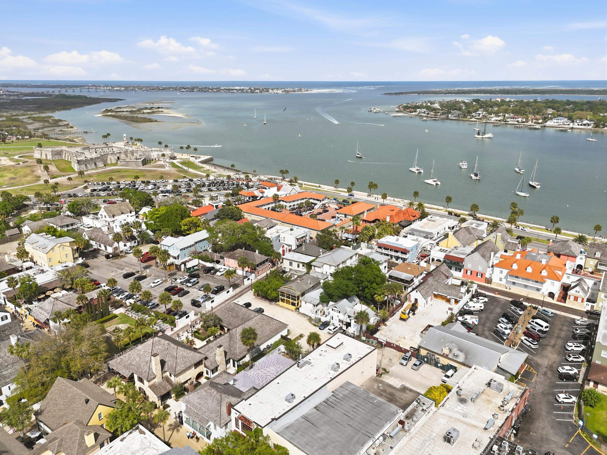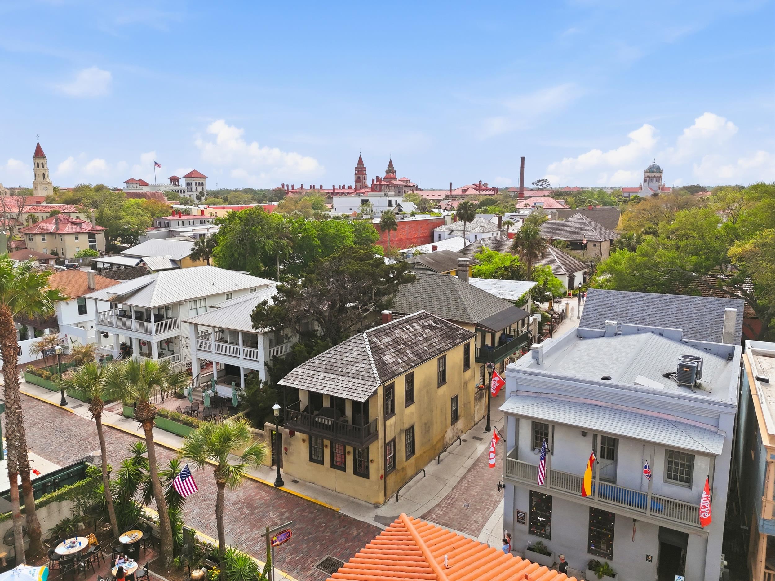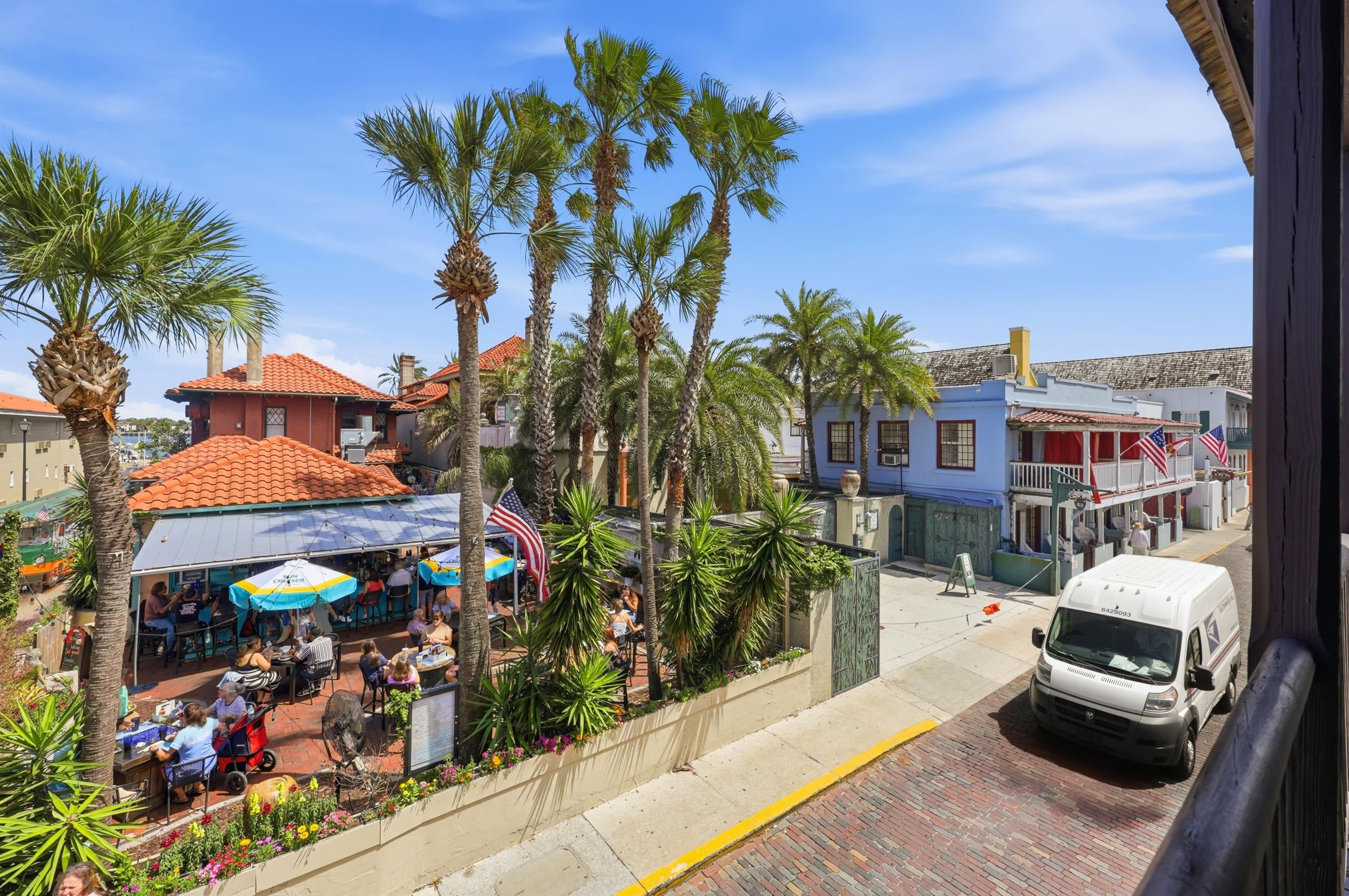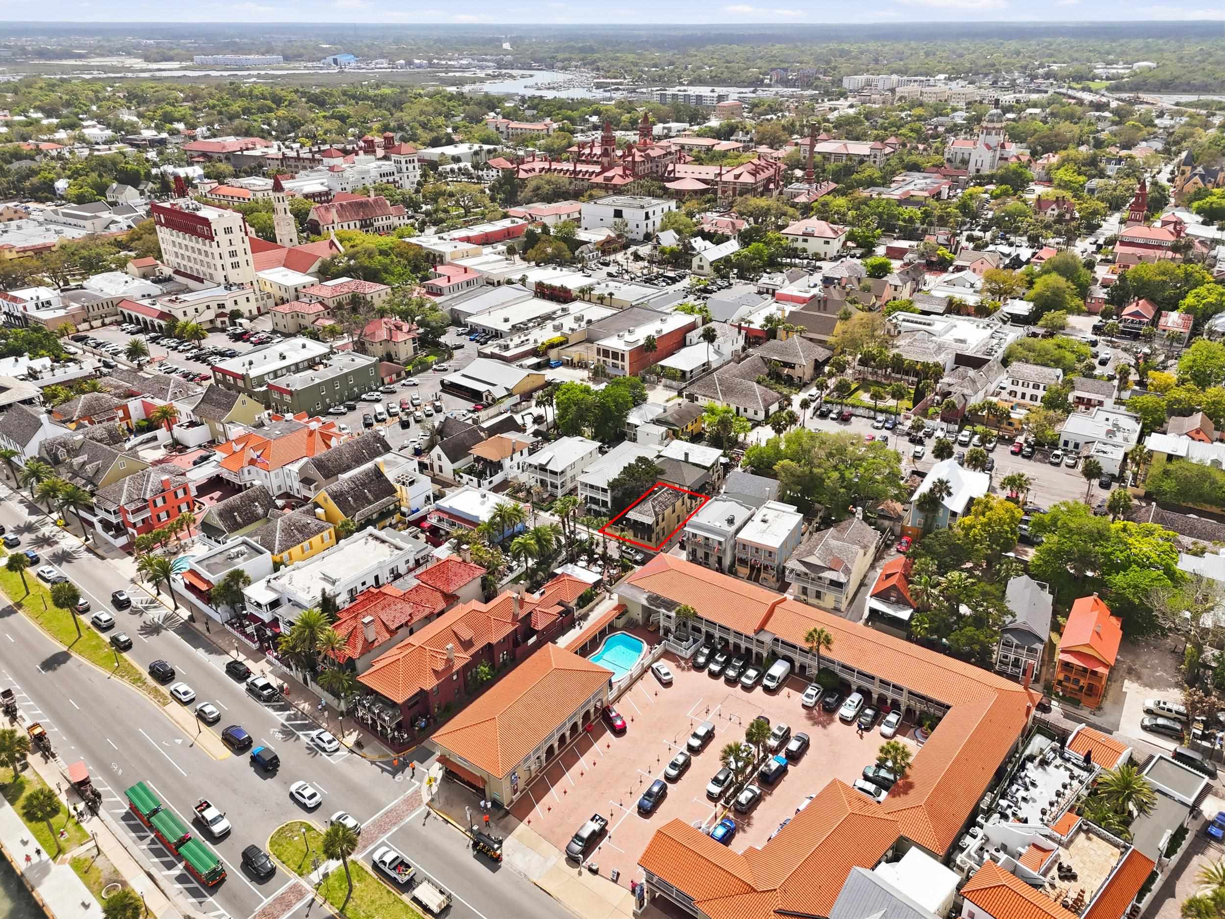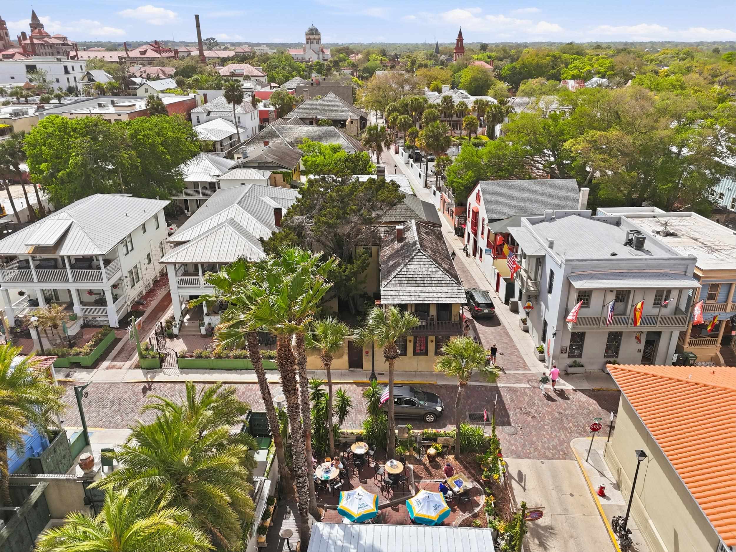 50 Charlotte Street | St. Augustine, Florida - An Iconic Corner in the Heart of the Historic District Positioned at the prominent corner of Charlotte and Hypolita Streets, 50 Charlotte Street presents a truly rare offering in the heart of St. Augustine's historic district that has been lovingly held as a legacy property by the same family for over 50 years. Just one block from the Matanzas River bayfront, this exceptional property is surrounded by renowned restaurants, boutique shops, and the city's most celebrated attractions. With unmatched walkability, high visibility, and constant pedestrian and trolley traffic throughout the day, the location stands among the most desirable in one of Florida's most iconic destinations. Originally constructed in 1900, this two-story historic building embodies the timeless character and architectural heritage that define St. Augustine. Set on a fully walled lot, the property reveals a private, brick-pavered courtyard shaded by mature trees - an inviting and tranquil retreat that contrasts beautifully with the vibrant energy just beyond its walls. A classic wooden second-story balcony overlooks Charlotte Street, offering a charming vantage point of the lively streetscape with glimpses toward the bayfront. The first floor features two thoughtfully designed units, including an inviting retail storefront and a separate residential apartment, each curated with finishes that honor the building's historic integrity. The second floor hosts a beautifully appointed one-bedroom residence, complete with rich wood flooring, a cozy kitchen, traditional shuttered windows, and a full bath. This residence opens onto a private deck overlooking the courtyard, creating a serene and intimate outdoor living space. Access from Charlotte Street welcomes guests through a charming entry into the courtyard, providing entry to the retail space, the second-floor residence, and an additional detached unit tucked within the courtyard - ideal for a creative studio, office, or flexible workspace. A second point of entry through an antique iron gate on Hypolita Street offers convenient access to the first-floor residential unit and the rear studio, enhancing the property's versatility for multiple occupants or uses. Zoned HP-2 (Historic Preservation 2), the property allows for a dynamic mix of residential and commercial uses, including retail, office, and hospitality-oriented concepts. With four total units, enduring architectural appeal, and a premier downtown location, this property offers exceptional flexibility for an owner-user, investor, or business operator. Whether envisioned as a boutique retail destination, professional office, income-producing investment, or a distinctive live-work environment, the possibilities are as compelling as the setting itself. Please note: The current business does not convey with the sale, as it will be relocating to another downtown location. All occupants will vacate the property prior to closing. The square footage is approximate.