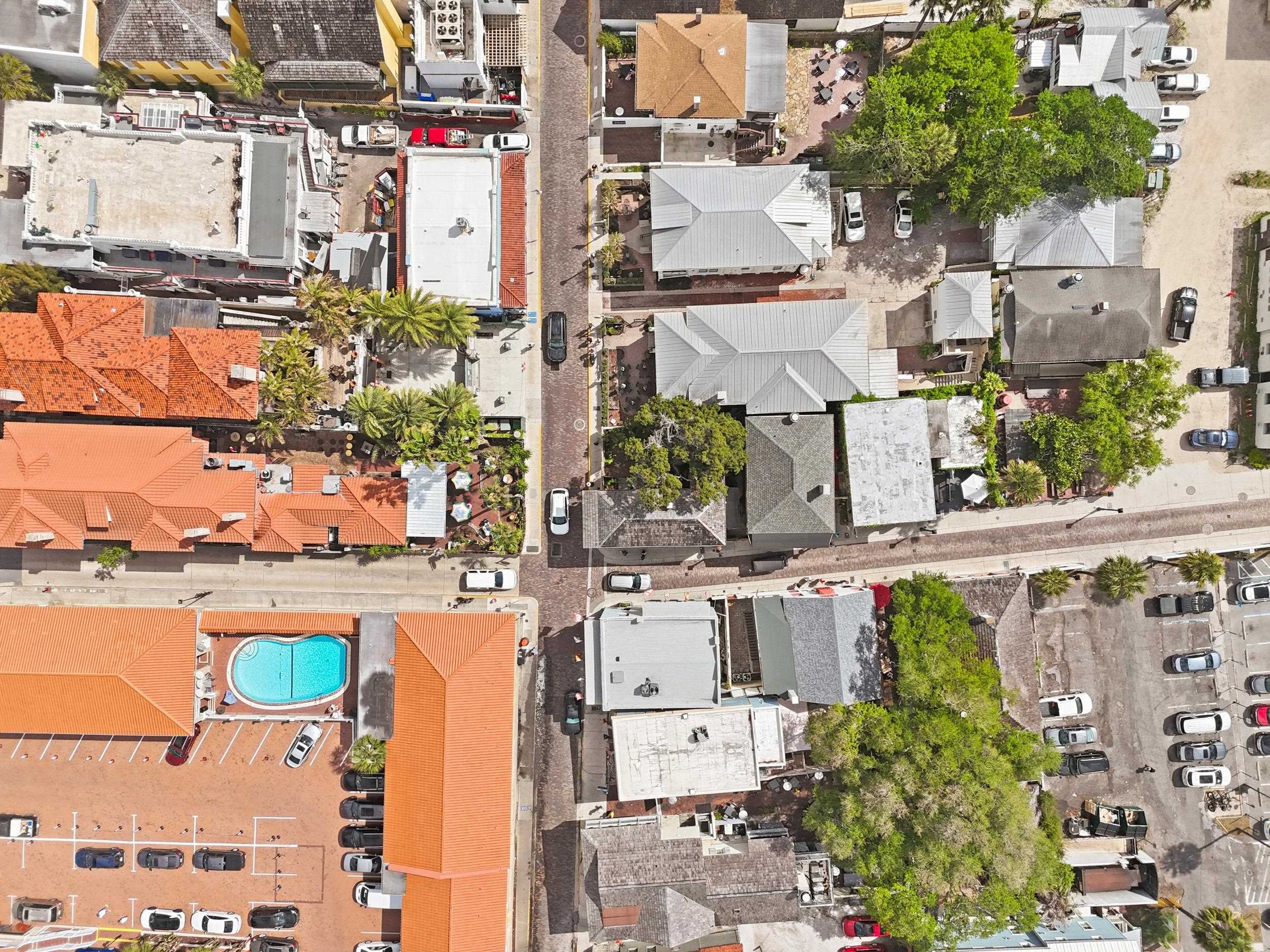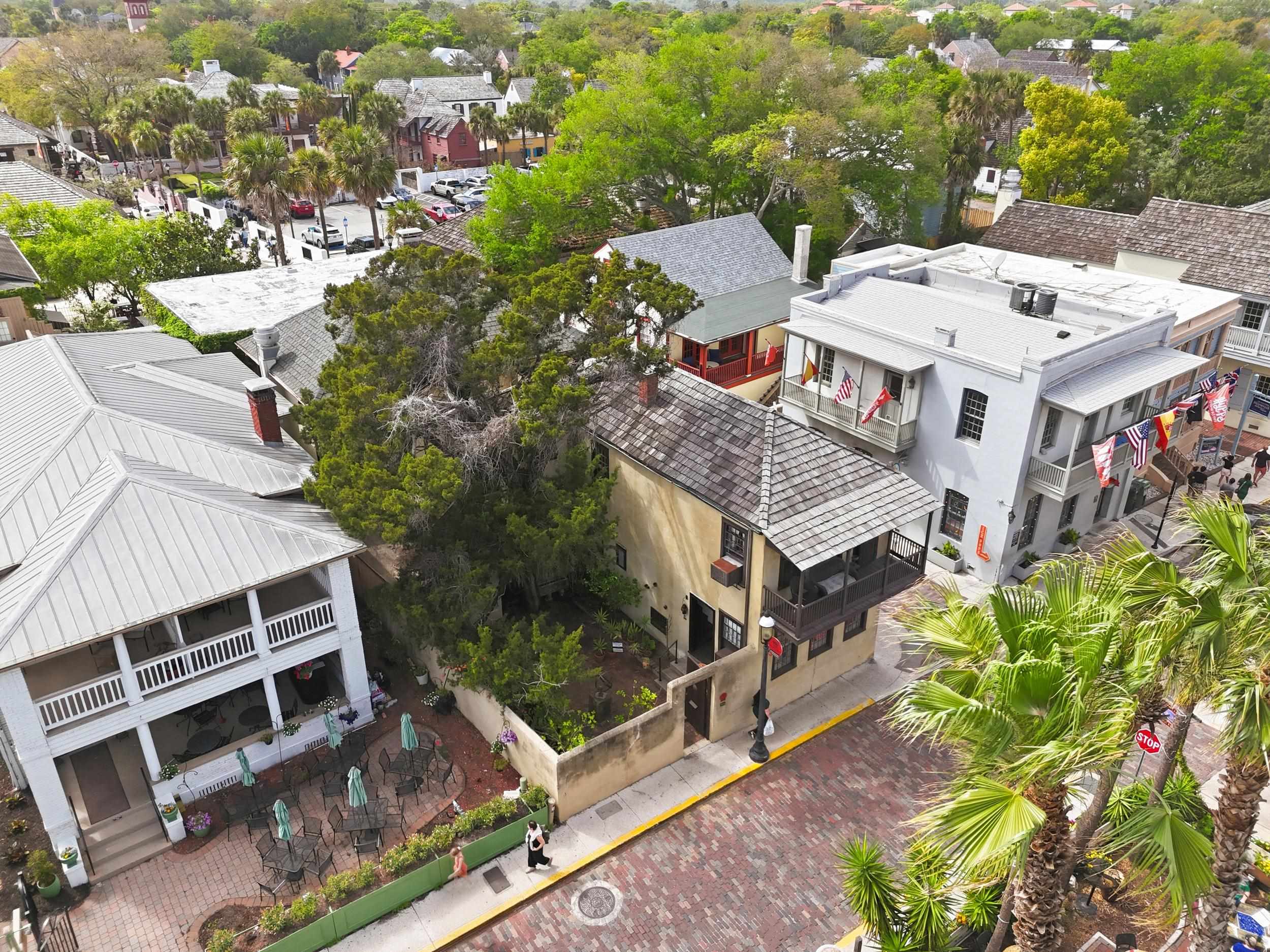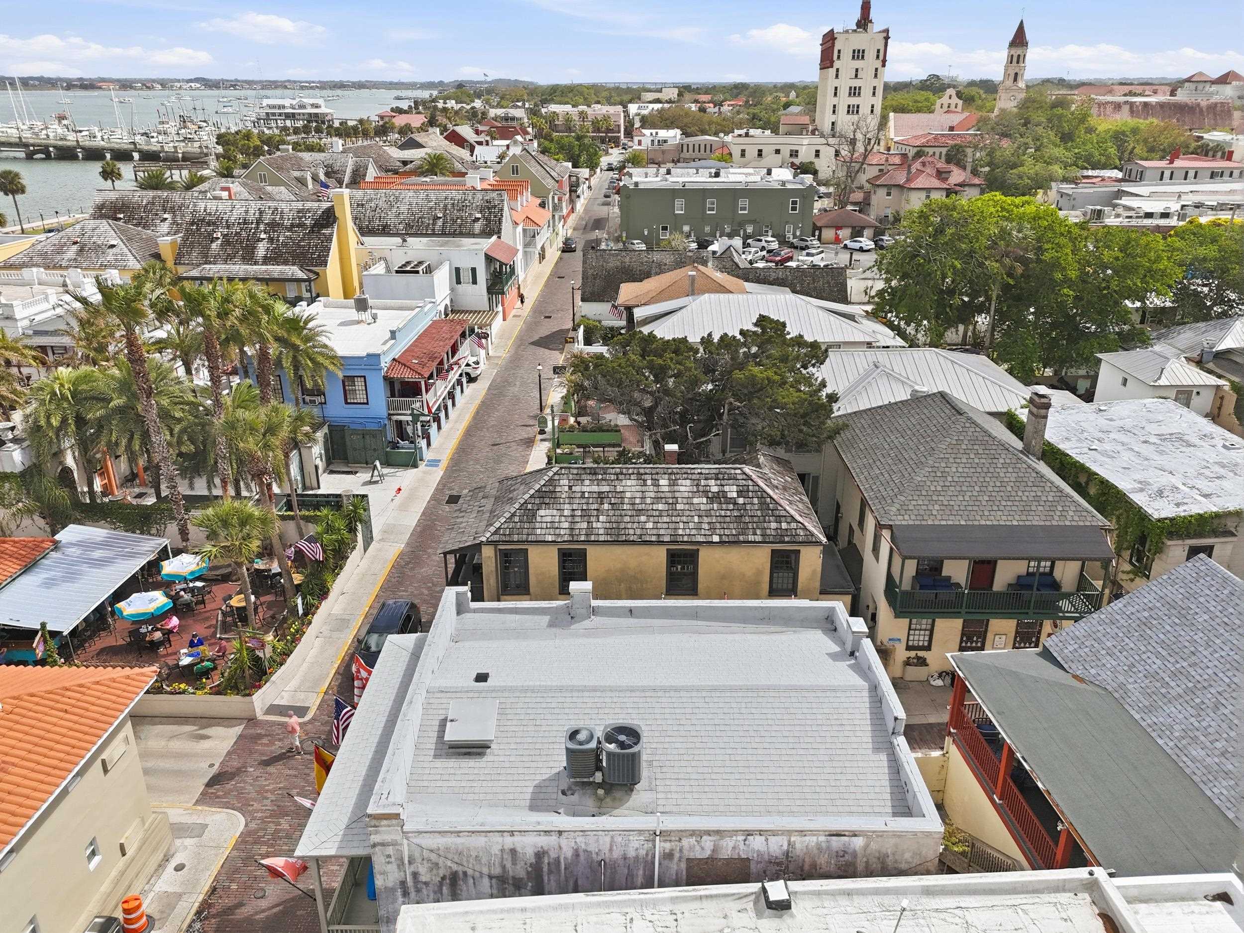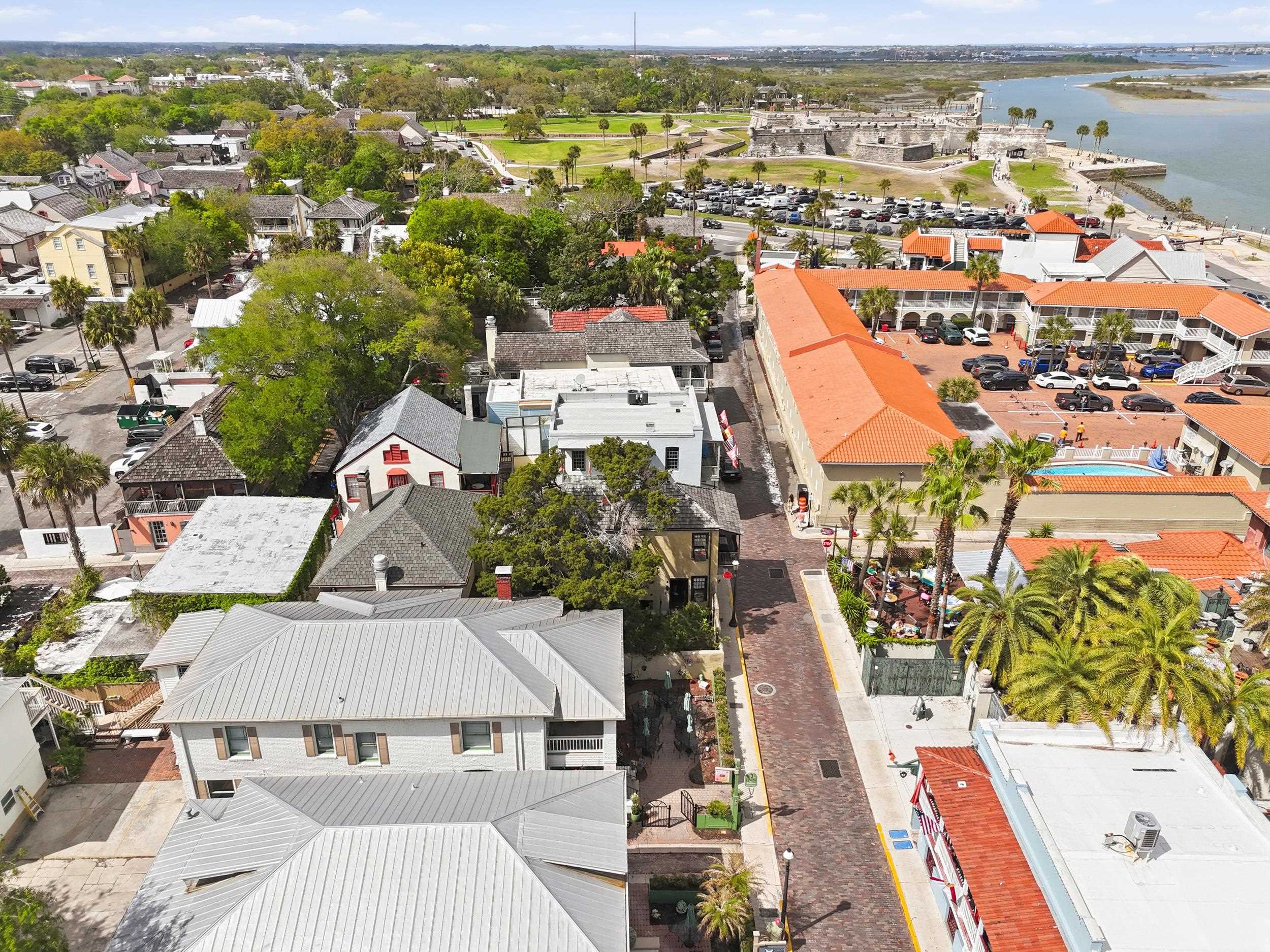 50 Charlotte Street | St. Augustine, Florida - An Iconic Corner in the Heart of the Historic District Positioned at the prominent corner of Charlotte and Hypolita Streets, 50 Charlotte Street presents a truly rare offering in the heart of St. Augustine's historic district that has been lovingly held as a legacy property by the same family for over 50 years. Just one block from the Matanzas River bayfront, this exceptional property is surrounded by renowned restaurants, boutique shops, and the city's most celebrated attractions. With unmatched walkability, high visibility, and constant pedestrian and trolley traffic throughout the day, the location stands among the most desirable in one of Florida's most iconic destinations. Originally constructed in 1900, this two-story historic building embodies the timeless character and architectural heritage that define St. Augustine. Set on a fully walled lot, the property reveals a private, brick-pavered courtyard shaded by mature trees - an inviting and tranquil retreat that contrasts beautifully with the vibrant energy just beyond its walls. A classic wooden second-story balcony overlooks Charlotte Street, offering a charming vantage point of the lively streetscape with glimpses toward the bayfront. The first floor features two thoughtfully designed units, including an inviting retail storefront and a separate residential apartment, each curated with finishes that honor the building's historic integrity. The second floor hosts a beautifully appointed one-bedroom residence, complete with rich wood flooring, a cozy kitchen, traditional shuttered windows, and a full bath. This residence opens onto a private deck overlooking the courtyard, creating a serene and intimate outdoor living space. Access from Charlotte Street welcomes guests through a charming entry into the courtyard, providing entry to the retail space, the second-floor residence, and an additional detached unit tucked within the courtyard - ideal for a creative studio, office, or flexible workspace. A second point of entry through an antique iron gate on Hypolita Street offers convenient access to the first-floor residential unit and the rear studio, enhancing the property's versatility for multiple occupants or uses. Zoned HP-2 (Historic Preservation 2), the property allows for a dynamic mix of residential and commercial uses, including retail, office, and hospitality-oriented concepts. With four total units, enduring architectural appeal, and a premier downtown location, this property offers exceptional flexibility for an owner-user, investor, or business operator. Whether envisioned as a boutique retail destination, professional office, income-producing investment, or a distinctive live-work environment, the possibilities are as compelling as the setting itself. Please note: The current business does not convey with the sale, as it will be relocating to another downtown location. All occupants will vacate the property prior to closing. The square footage is approximate.