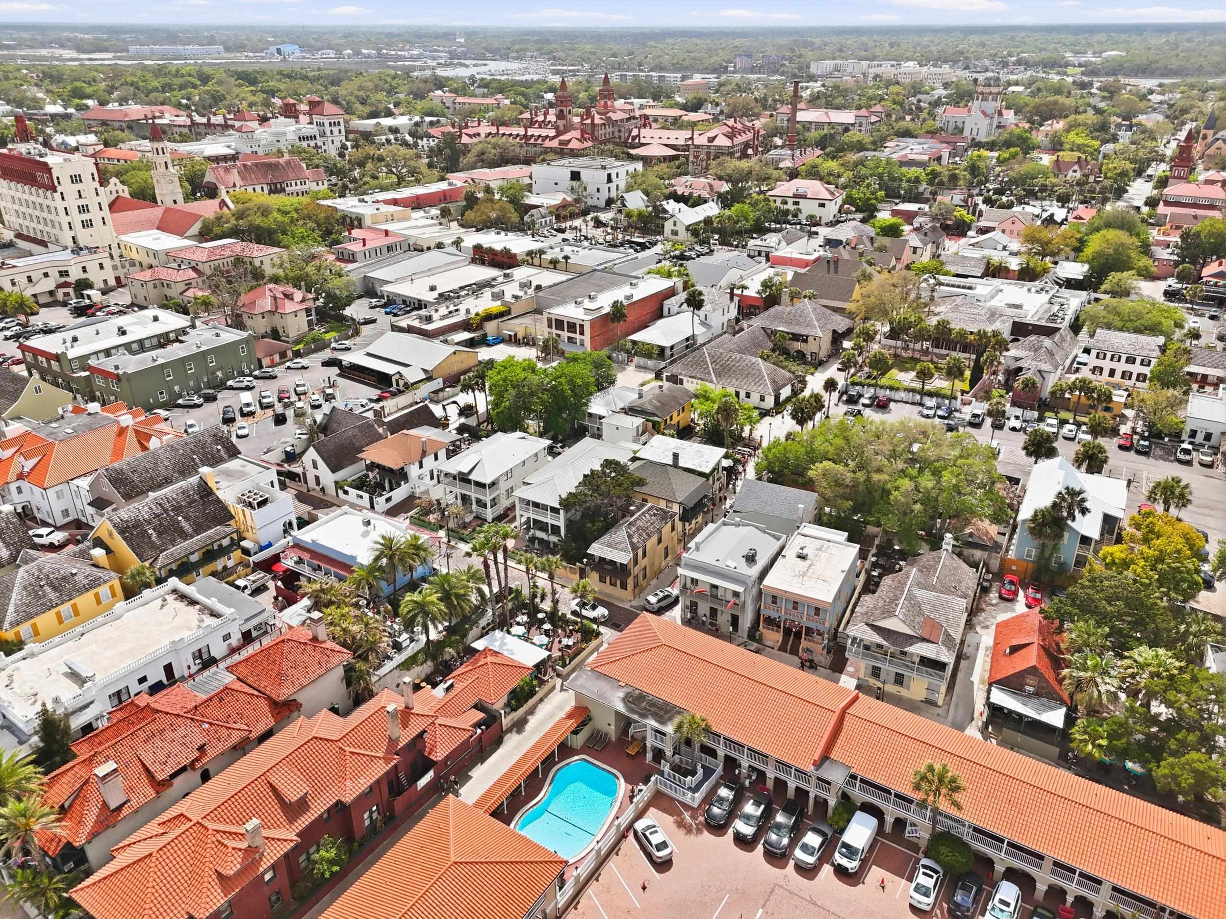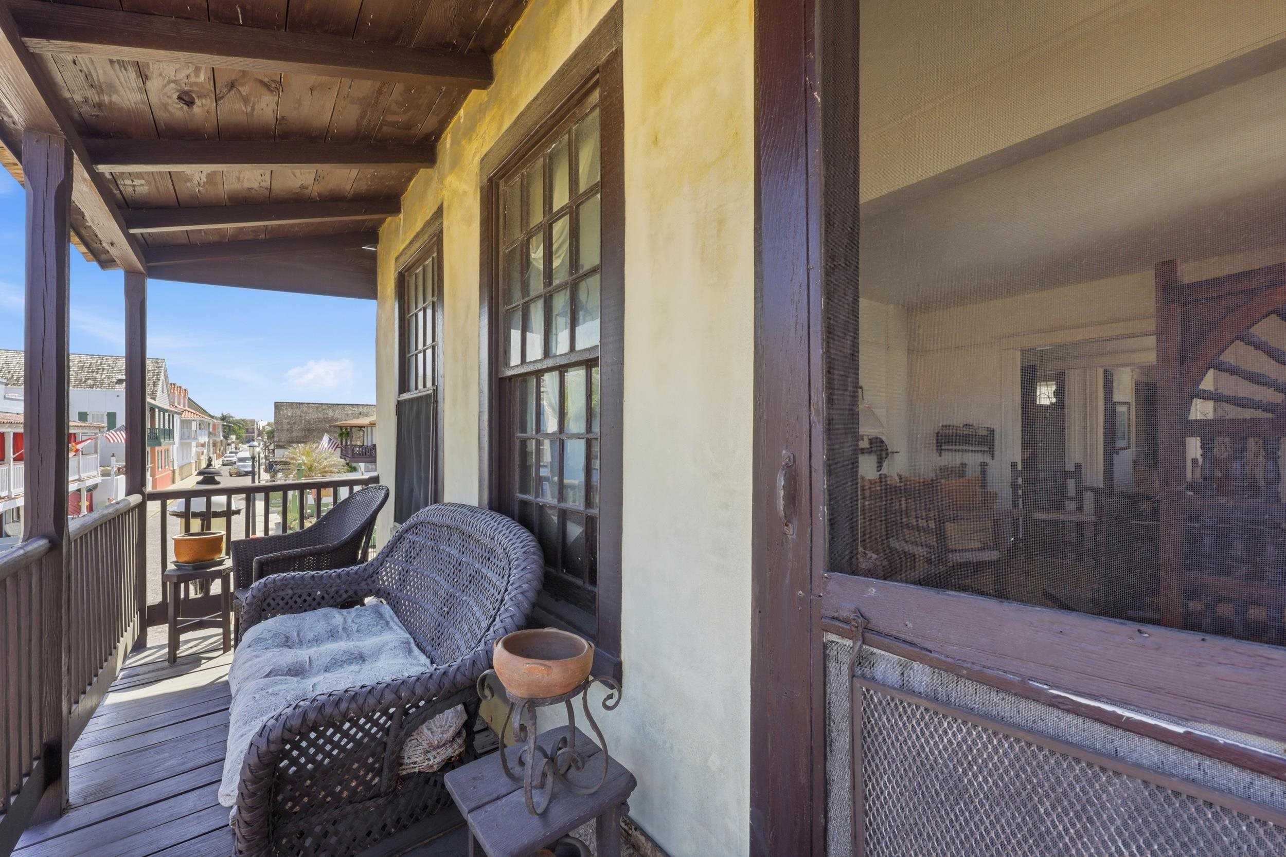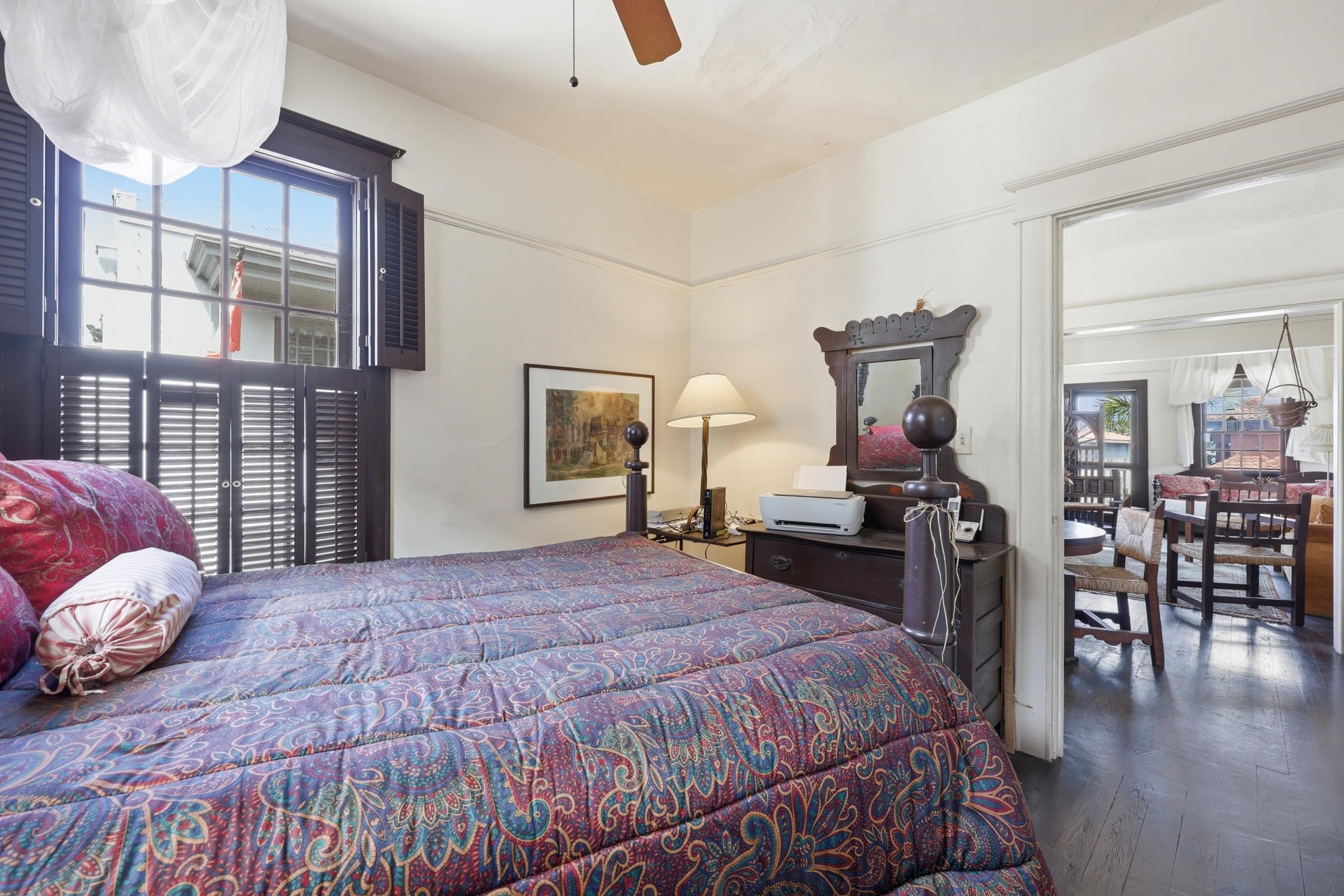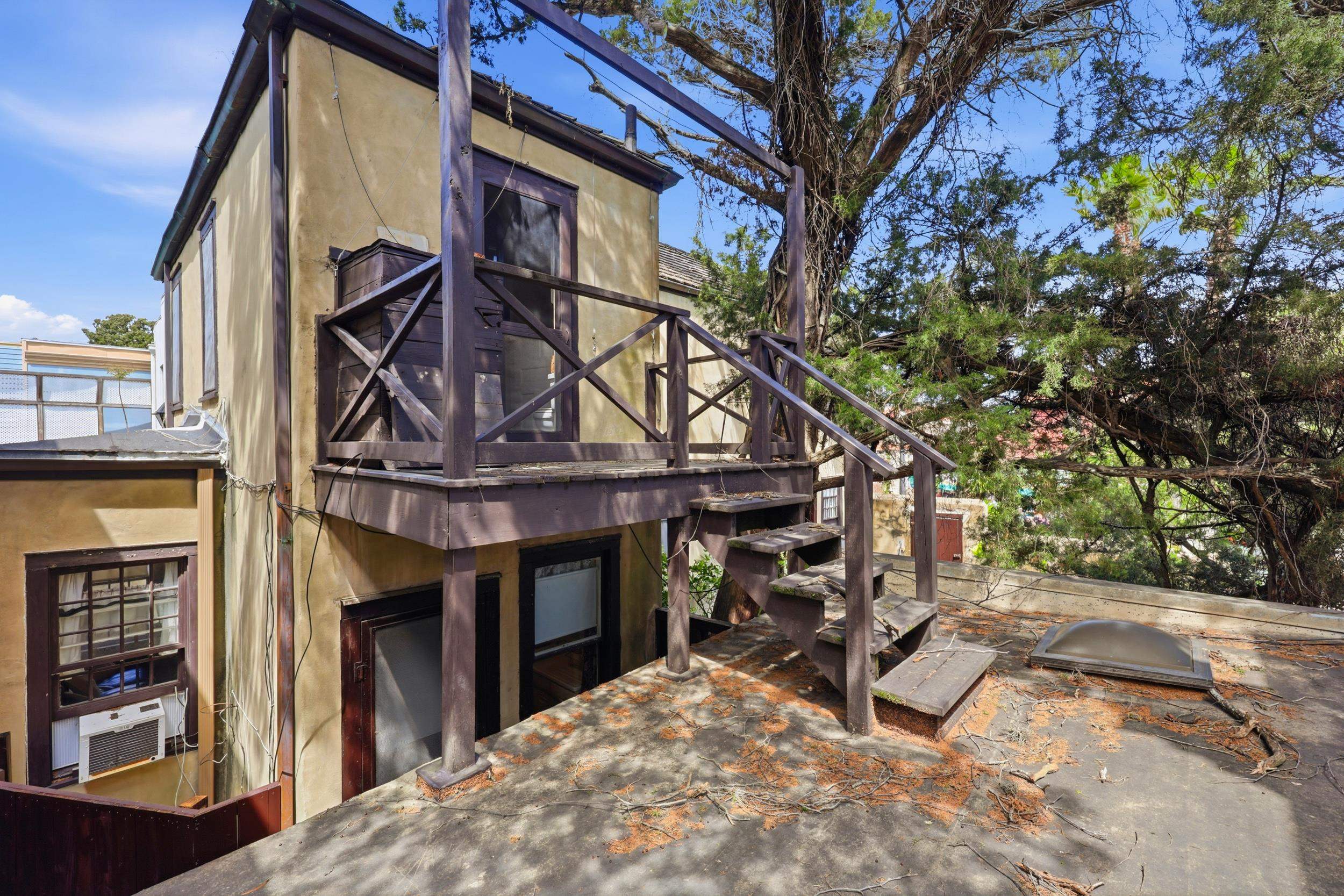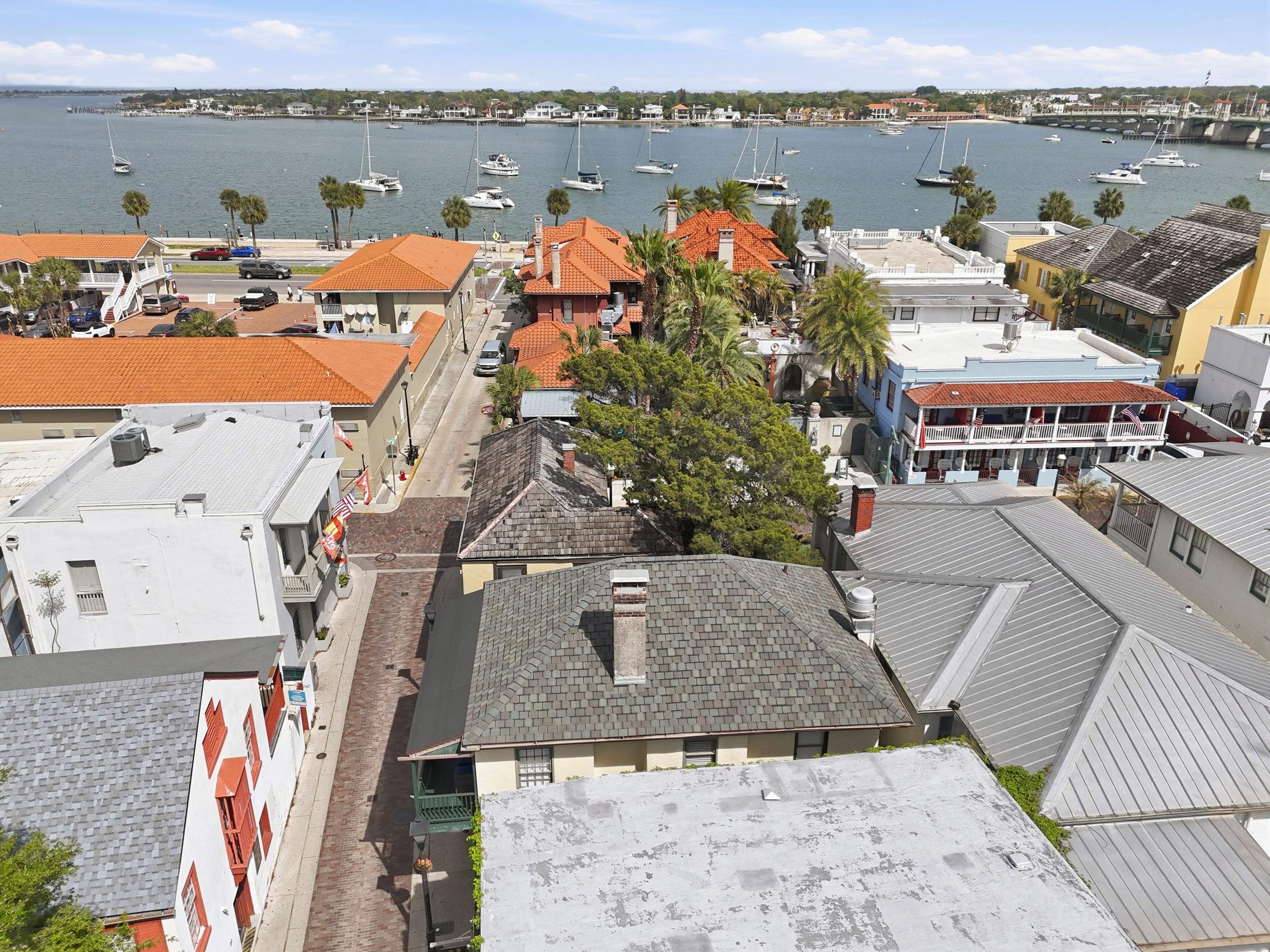 50 Charlotte Street | St. Augustine, Florida - An Iconic Corner in the Heart of the Historic District Positioned at the prominent corner of Charlotte and Hypolita Streets, 50 Charlotte Street presents a truly rare offering in the heart of St. Augustine's historic district that has been lovingly held as a legacy property by the same family for over 50 years. Just one block from the Matanzas River bayfront, this exceptional property is surrounded by renowned restaurants, boutique shops, and the city's most celebrated attractions. With unmatched walkability, high visibility, and constant pedestrian and trolley traffic throughout the day, the location stands among the most desirable in one of Florida's most iconic destinations. Originally constructed in 1900, this two-story historic building embodies the timeless character and architectural heritage that define St. Augustine. Set on a fully walled lot, the property reveals a private, brick-pavered courtyard shaded by mature trees - an inviting and tranquil retreat that contrasts beautifully with the vibrant energy just beyond its walls. A classic wooden second-story balcony overlooks Charlotte Street, offering a charming vantage point of the lively streetscape with glimpses toward the bayfront. The first floor features two thoughtfully designed units, including an inviting retail storefront and a separate residential apartment, each curated with finishes that honor the building's historic integrity. The second floor hosts a beautifully appointed one-bedroom residence, complete with rich wood flooring, a cozy kitchen, traditional shuttered windows, and a full bath. This residence opens onto a private deck overlooking the courtyard, creating a serene and intimate outdoor living space. Access from Charlotte Street welcomes guests through a charming entry into the courtyard, providing entry to the retail space, the second-floor residence, and an additional detached unit tucked within the courtyard - ideal for a creative studio, office, or flexible workspace. A second point of entry through an antique iron gate on Hypolita Street offers convenient access to the first-floor residential unit and the rear studio, enhancing the property's versatility for multiple occupants or uses. Zoned HP-2 (Historic Preservation 2), the property allows for a dynamic mix of residential and commercial uses, including retail, office, and hospitality-oriented concepts. With four total units, enduring architectural appeal, and a premier downtown location, this property offers exceptional flexibility for an owner-user, investor, or business operator. Whether envisioned as a boutique retail destination, professional office, income-producing investment, or a distinctive live-work environment, the possibilities are as compelling as the setting itself. Please note: The current business does not convey with the sale, as it will be relocating to another downtown location. All occupants will vacate the property prior to closing. The square footage is approximate.