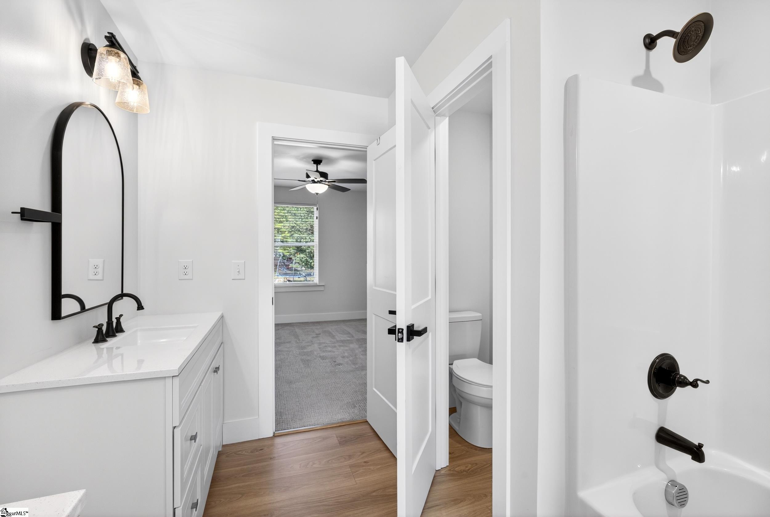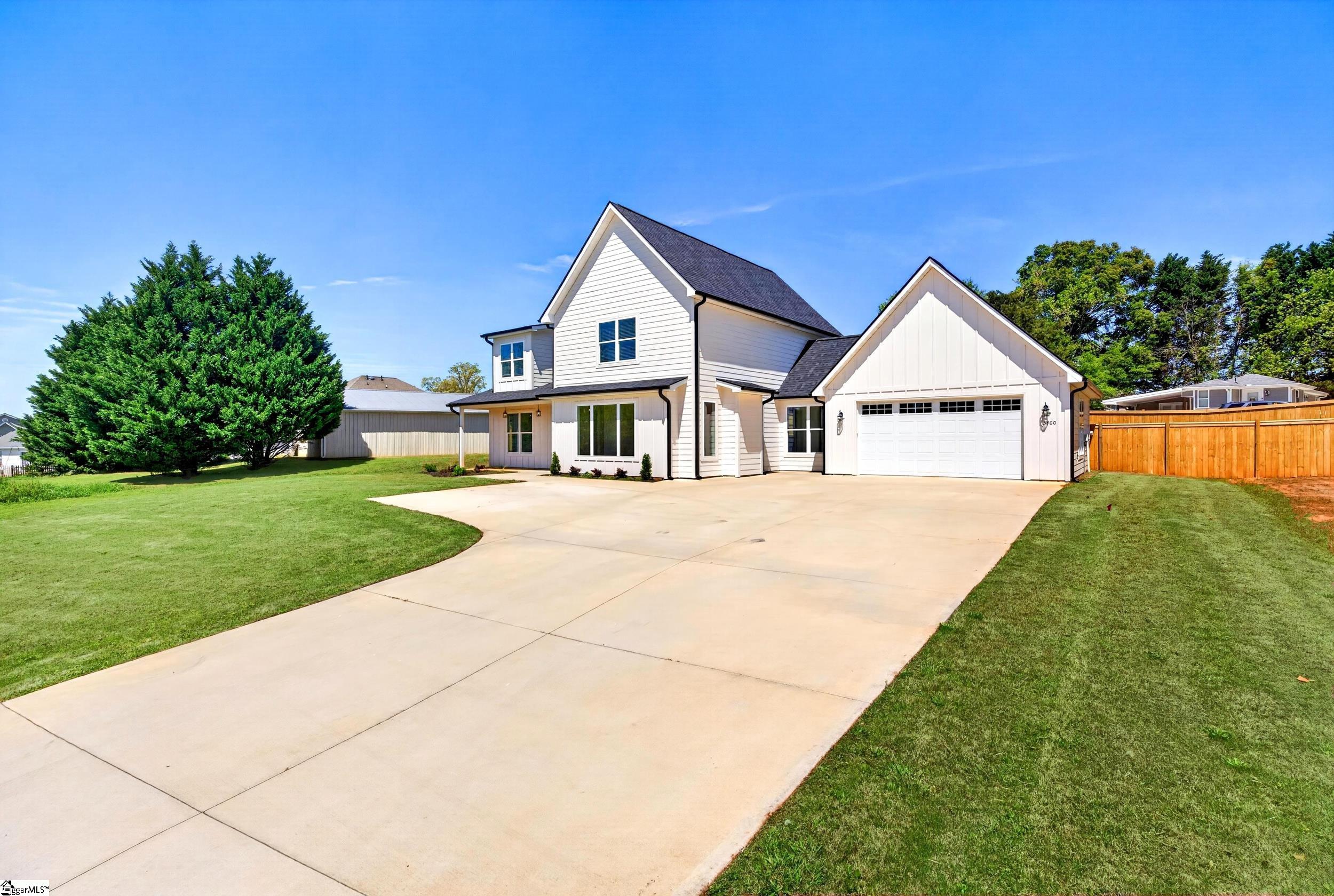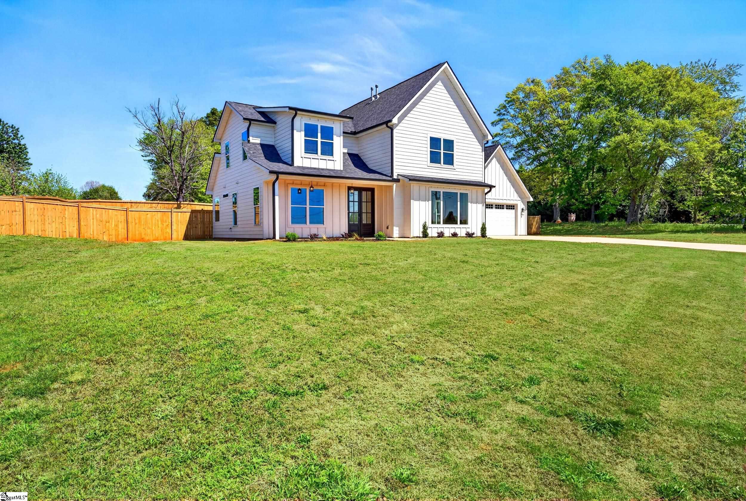 NO HOA - 3/4 ACRE FENCED LOT! Minutes from Lake Robinson, this beautifully designed 4-bedroom, 3. 5-bath home offers approx. 2, 533 sq ft of modern living in the desirable Greer area. Inside, an open, light-filled layout features a welcoming living room with a fireplace that flows into a stylish kitchen with a large island, quartz countertops, and a window overlooking the spacious backyard. The main-level owner’s suite provides a relaxing retreat with a ceramic tile shower, dual vanities, and a walk-in closet. Upstairs, you’ll find three additional bedrooms and two full baths, including one bedroom with its own private suite and cozy window nook. Enjoy the generous outdoor space with room to garden or play, all in a peaceful setting just minutes from Greenville-Spartanburg conveniences. Finished with an oversized 2-car garage and paved driveway for extra convenience.