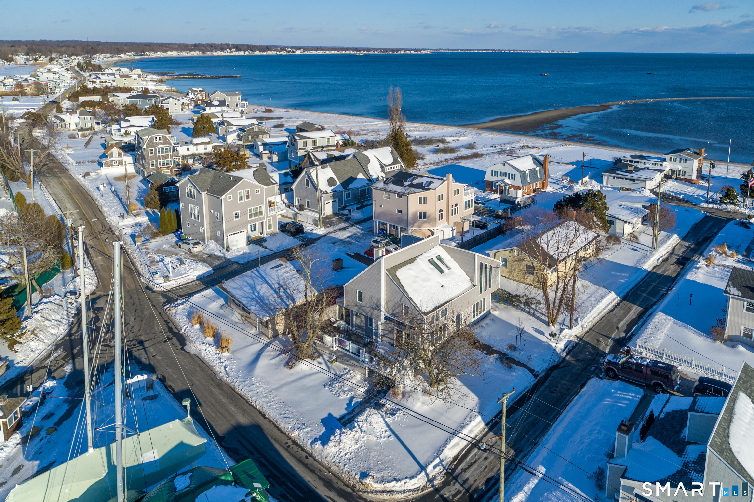 Pristine year round Contemporary home with views of the Marina at Pilots Point. Relax on the 12'x35' deck with an electric retractable awning or just enjoy the evening setting sun. The back patio has an enclosed shower and an area to grill. This home has been renovated and features many upgrades. The family room on the first floor could have an office. The Great room on the 2nd level has windows from wall to wall and has room for a Art/study, playroom, and views of Long Island Sound and the private beach. This Gem must be seen to be appreciated! Won' last!! Listing agent related to owner!