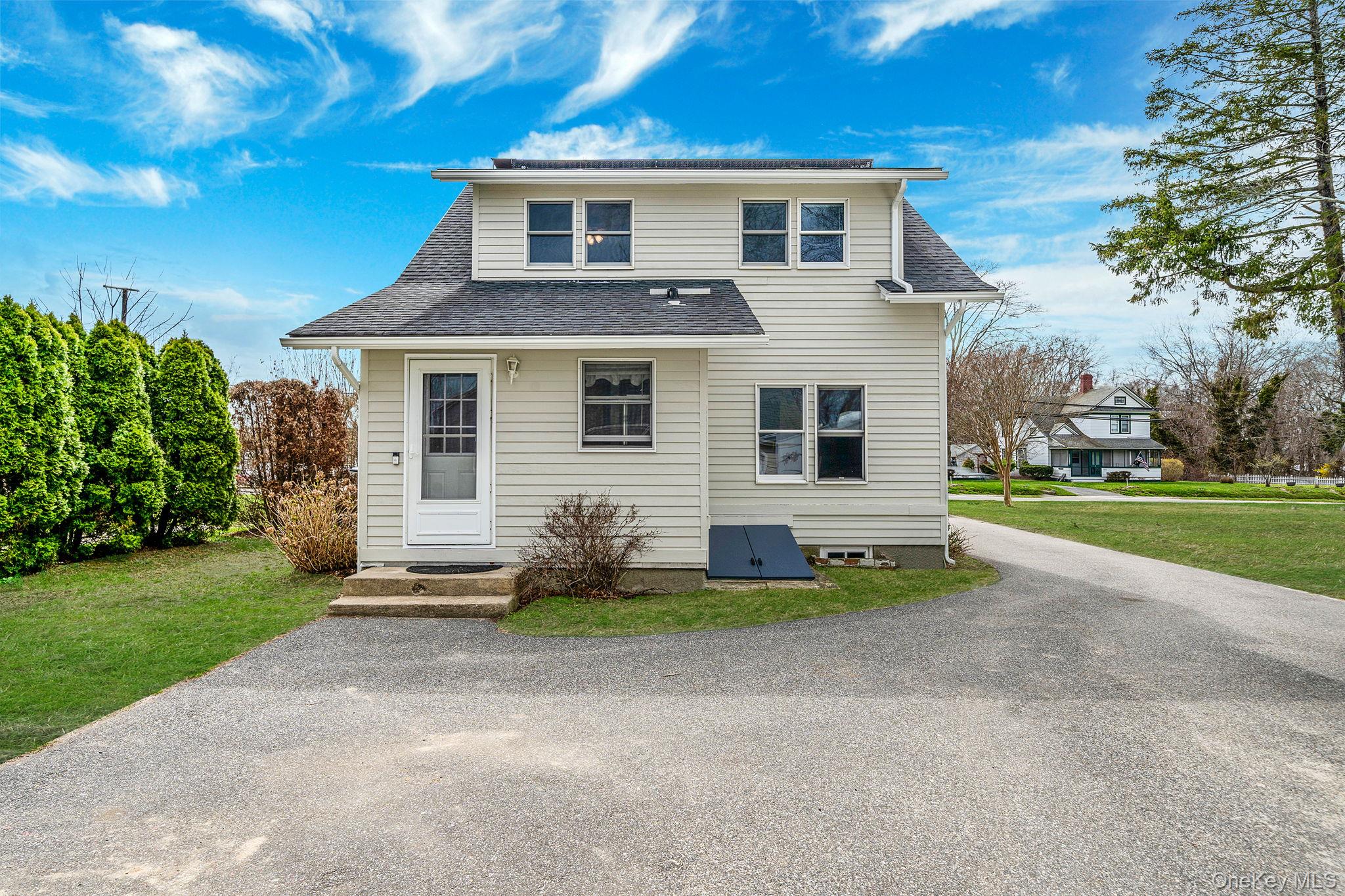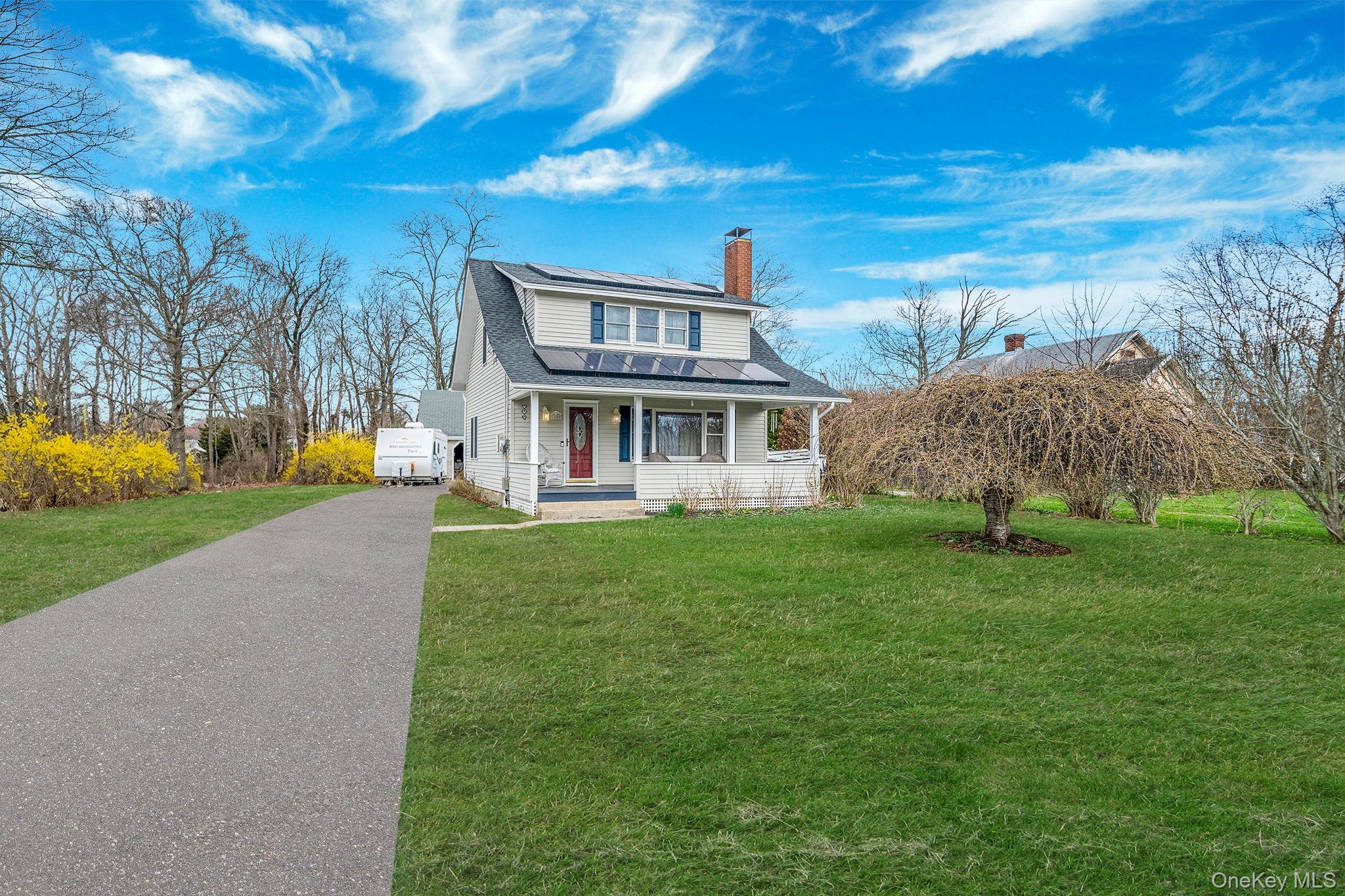 Nestled in the Heart of the North Fork, this Charming Move in Ready Home in Mattituck has 3 Bedrooms and 3 Baths. Close to Beaches, Strong's Marina, Wineries, Local Farmstands, Restaurants and Beloved Love's Lane. Enjoy your morning coffee on the Inviting Covered Porch. Or watch a movie Cozied up infront of the Fire Place that anchors the Living Room. Plenty of Cabinets and Counter Space in the Kitchen. Hardwood Floors on the First and Second Levels. Extra Living space in the Finished Basement for an Office and Media/Game Room. Plenty of Room for Cars and Toys in the 2. 5 Car detatched Garage equipped with an Escalated Fast Charger AV Charging Station. Solar Panels on the Roof help reduce electricity costs and carbon footprint. A Must See! Peconic Bay Tax applies