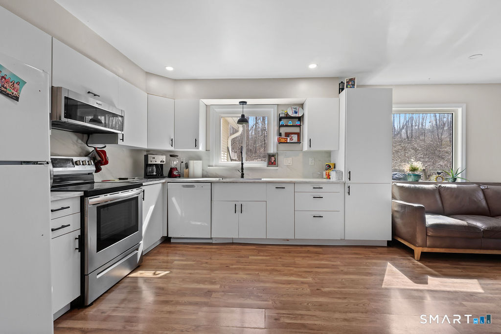 Tucked away in a private, secluded location, this move-in ready two-family home situated on a 2+ acre lot presents a fantastic opportunity for both investors and owner-occupants. Each unit has been tastefully updated with fresh paint, modern vinyl flooring, and recessed lighting, creating clean, comfortable living spaces that are ready to enjoy. The updated kitchens and bathrooms, along with newer appliances, offer a stylish and functional setup that appeal to today's renters and homeowners alike. Designed with efficiency and practicality in mind, the home features a combo instant hot water heater and boiler system, as well as propane heat with an owned tank which provides dependable performance and added long-term savings. Each unit is equipped with its own separate washer and dryer, offering convenience and independence for occupants. The exterior is just as appealing, with low-maintenance vinyl siding and fenced-in yards that provide private outdoor space for each unit-ideal for relaxing, entertaining or pets. Two sheds add valuable storage options, making it easy to keep everything organized and accessible. Opportunities like this are few and far between. Whether you're looking to expand your investment portfolio or live in one unit while generating rental income from the other, this property checks all the boxes. A truly great investment and a rare find in today's market-schedule your showing today!