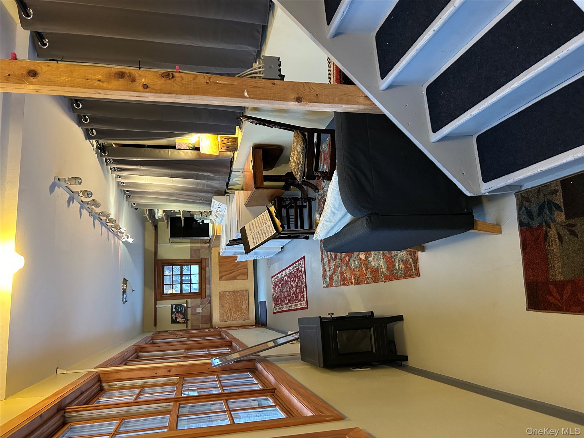 Unique Cornwall 1 BR cottage shares property with the owner's residence; partially furnished option; 3. 7 acre property w/mature trees & shrubs. Wraparound porch overlooks Moodna Creek. Spacious living room w/ high ceiling; efficient galley kitchen; small BR, 1 bath. Lower level studio w/shelving, slab floor, sink/cabinets & laundry area w/walkout. Pellet stove and electric baseboard heat. Great views, hiking trails across the road, woods and creek in the back. Easy commuter access: 15 mins to West Point; 2 mi to Salisbury Mills train, 1 mile to Shortline Bus, 25 mins to Beacon train, close to NYS I-87 & Palisades Pkwy. 8 mins from Woodbury Commons. Heat, electric and internet not included. Landlord and tenant share snow and lawn maintenance. Rental application required, along with good credit (700+) and background check, references, proof of income in addition to personal interview. Do NOT drive on to property, confirmed appointments only. Parking for 1 car only. No Pets.