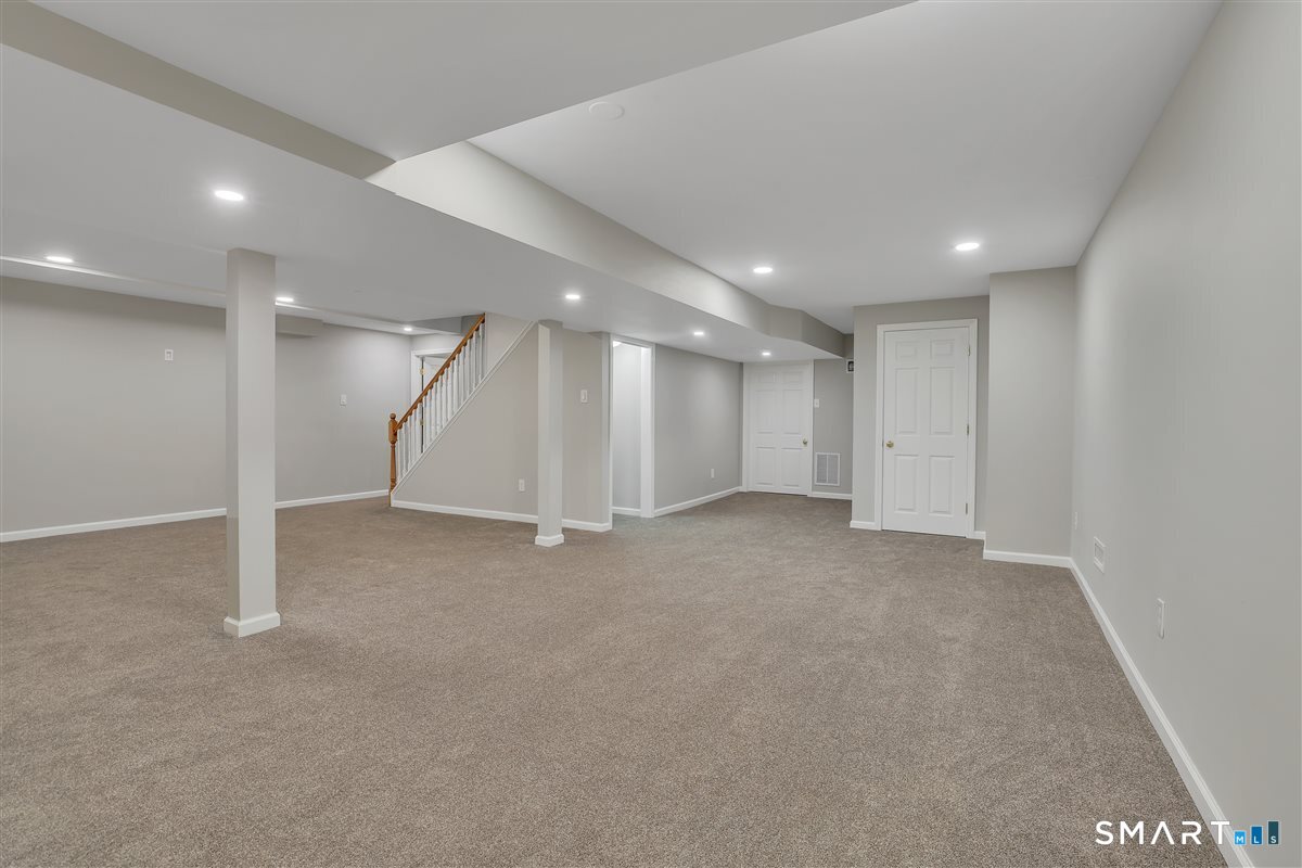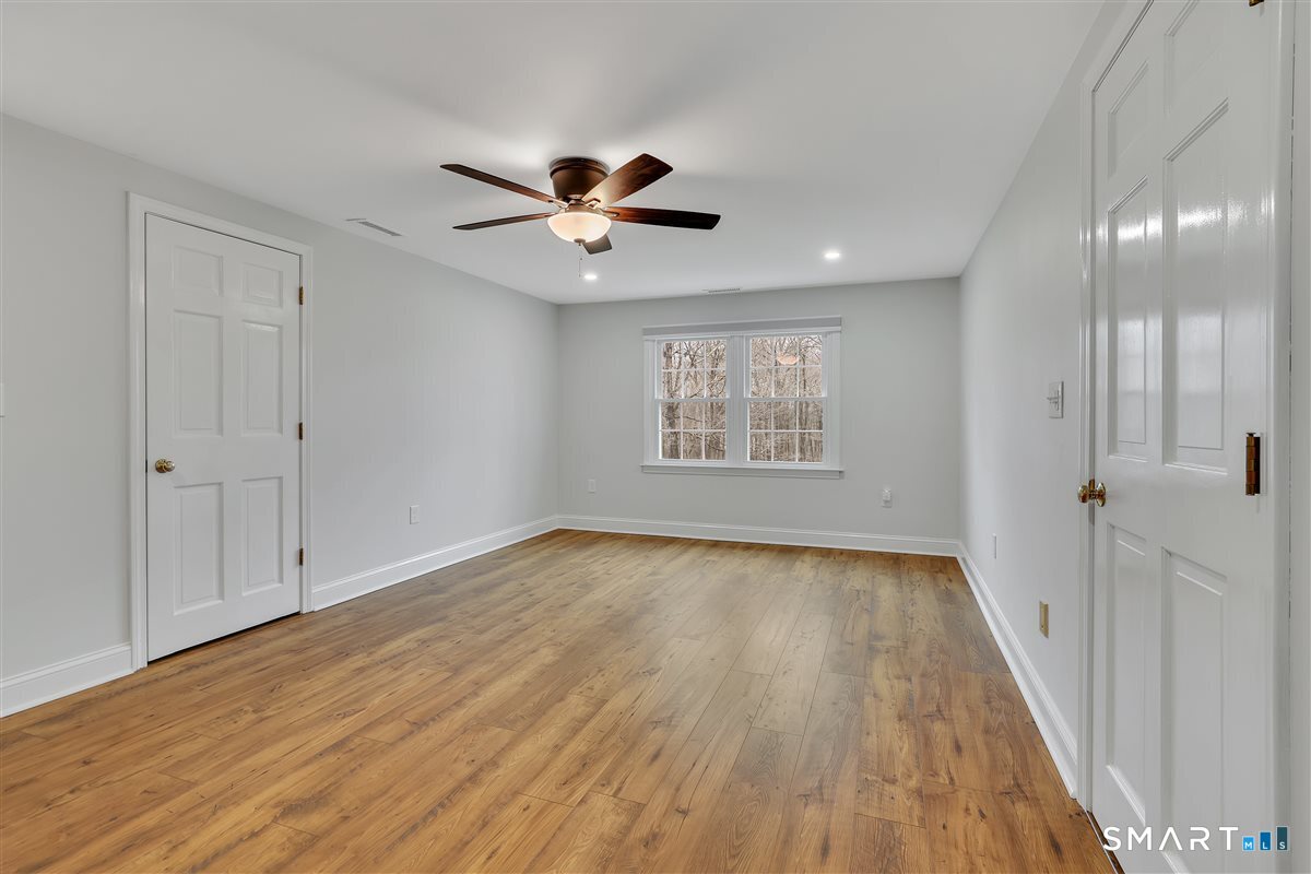 Welcome to this exceptionally well-built home on nearly 4 acres! Tucked at the end of a cul-de-sac, this oversized Cape offers sunny interiors within its 3, 000+ sf with 3 bedrooms & 3 full baths. Multiple living areas afford great layout flexibility: family room with fireplace, living room, dining room, eat-in kitchen, sun room, home gym & mudroom. Anchoring these spaces is the large, remodeled kitchen offering tremendous work and storage space with granite counters, newer SS appliances, prep island, pantry and freshly painted cabinetry. The mudroom/laundry area gets high marks for its perfect location between the garage and kitchen. If one floor living is a priority, the primary bedroom suite is privately situated on the main floor and includes a full bath and walk-in closet. The remodeled finished basement offers even more space with a large media or play room, and perfect office or craft room. Both bedrooms upstairs are remodeled and showcase board & batten wainscoting and new laminate flooring. They offer ample storage, multiple closets and share a beautifully remodeled full bathroom with tub. More to love: Brand new HVAC with heat pump, 3 zones (2022), new windows in most of the house (2022), oak floors on main floor, new lighting, new flooring in basement and on 2nd floor, beautiful and bright finished basement, and 2-car attached garage. Make this your home in a private and quiet neighborhood in Durham offering a great commuting location. The property is sprawling and limited only by your imagination. There is a patio and stone wall just off the sunroom, garden beds to enjoy, and an area prepped for a play set. Overgrown foundation plantings have been removed creating the blank canvas for your new landscaping vision. Make sure you check out the floor plans!