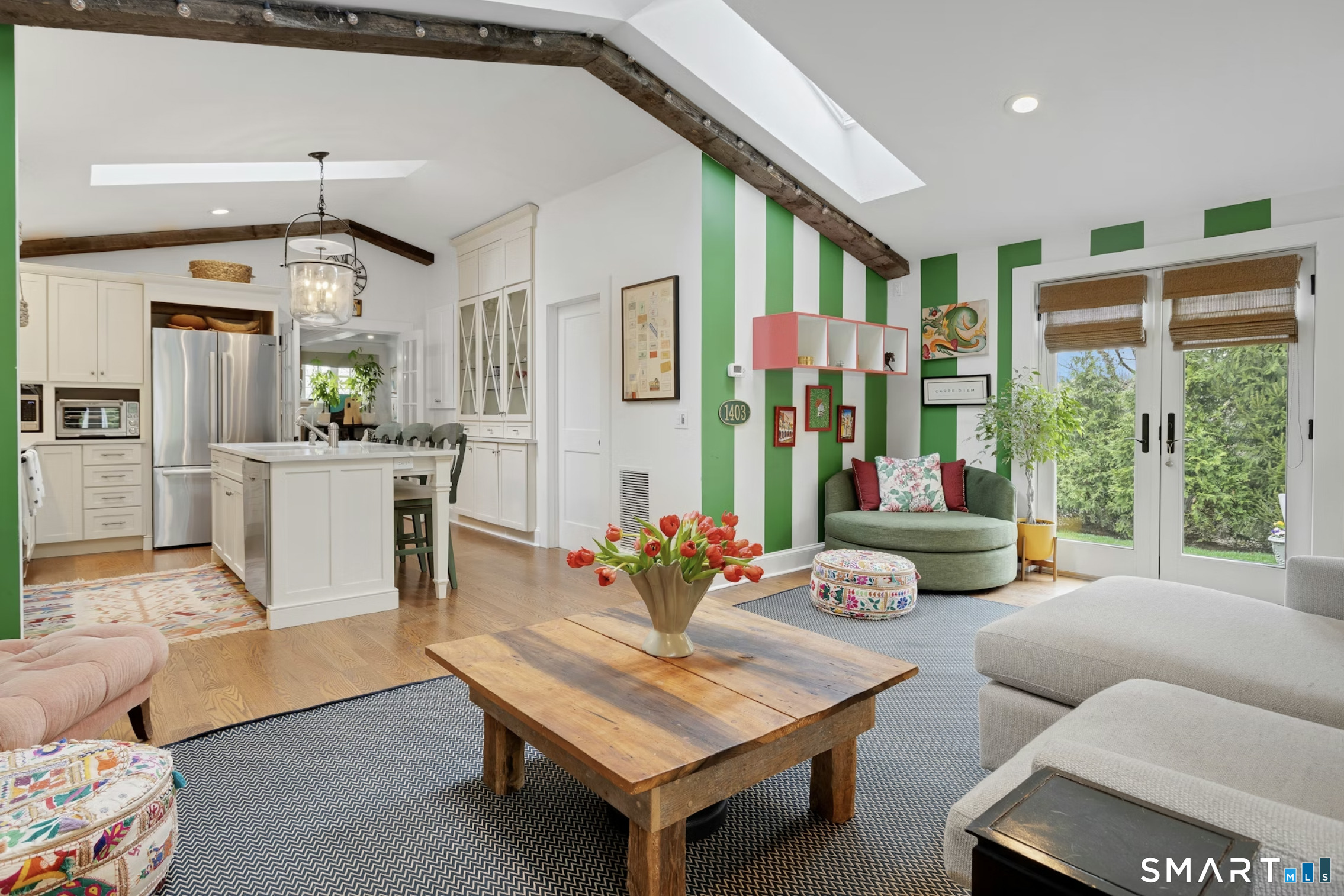 | Eat-In Kitchen | Vaulted Ceiling,Beams,Built-Ins,Quartz Counters,Half Bath,Island | 18.0 x 13.0 | Main |