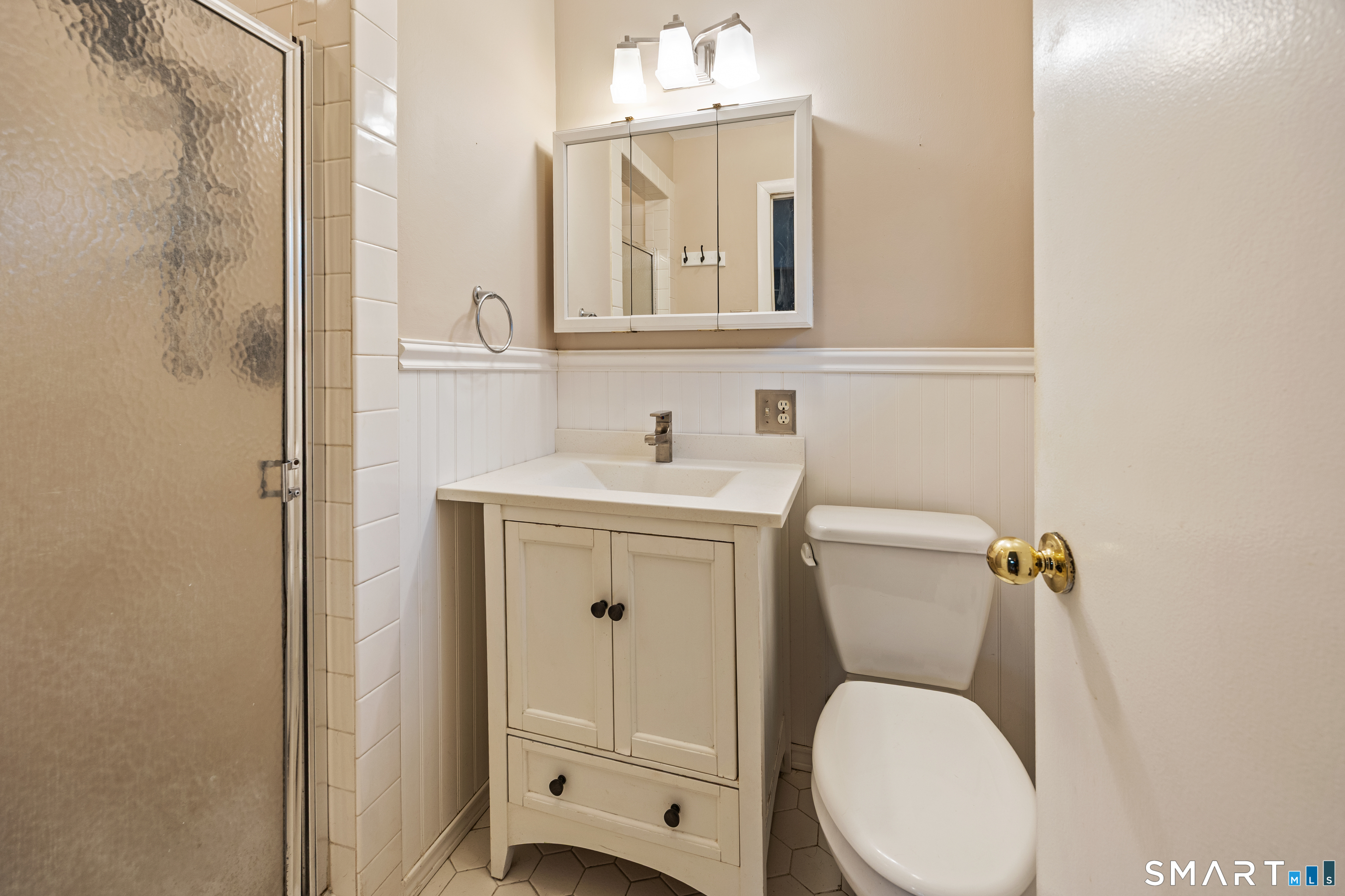 Welcome to this beautifully maintained 3-bedroom, 2-bath home set on a desirable corner lot in Cheshire! This inviting property features hardwood flooring throughout most of the home and an updated kitchen that blends style and functionality-perfect for everyday living and entertaining. The spacious living room is highlighted by a cozy fireplace, creating a warm and welcoming atmosphere. The primary bedroom offers a private ensuite full bath, for a comfortable retreat at the end of the day. A formal dining room and two additional spacious bedrooms complete the main level. They offer flexibility for guests/family, or even a home office. The partially finished lower level adds valuable living space, ideal for a family room, office, or recreation area, and includes a cedar closet for additional storage. Enjoy year-round comfort with central air, and benefit from solar panels that help reduce energy costs. Step outside to a newly fenced-in yard with a patio area-perfect for outdoor gatherings, pets, or simple relaxation. The level lot adds to the home's usability and curb appeal. Completing the package is a 2-car garage, offering convenience and additional storage. A wonderful opportunity to own a move-in ready home in a sought-after location-don't miss it!