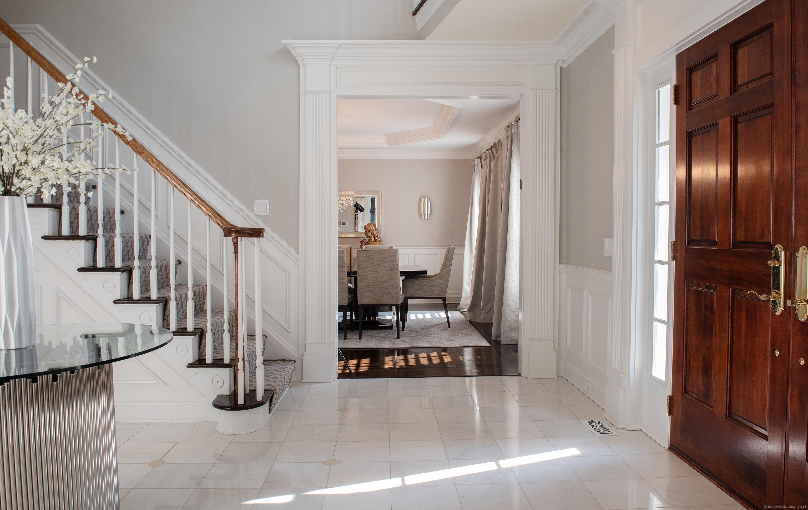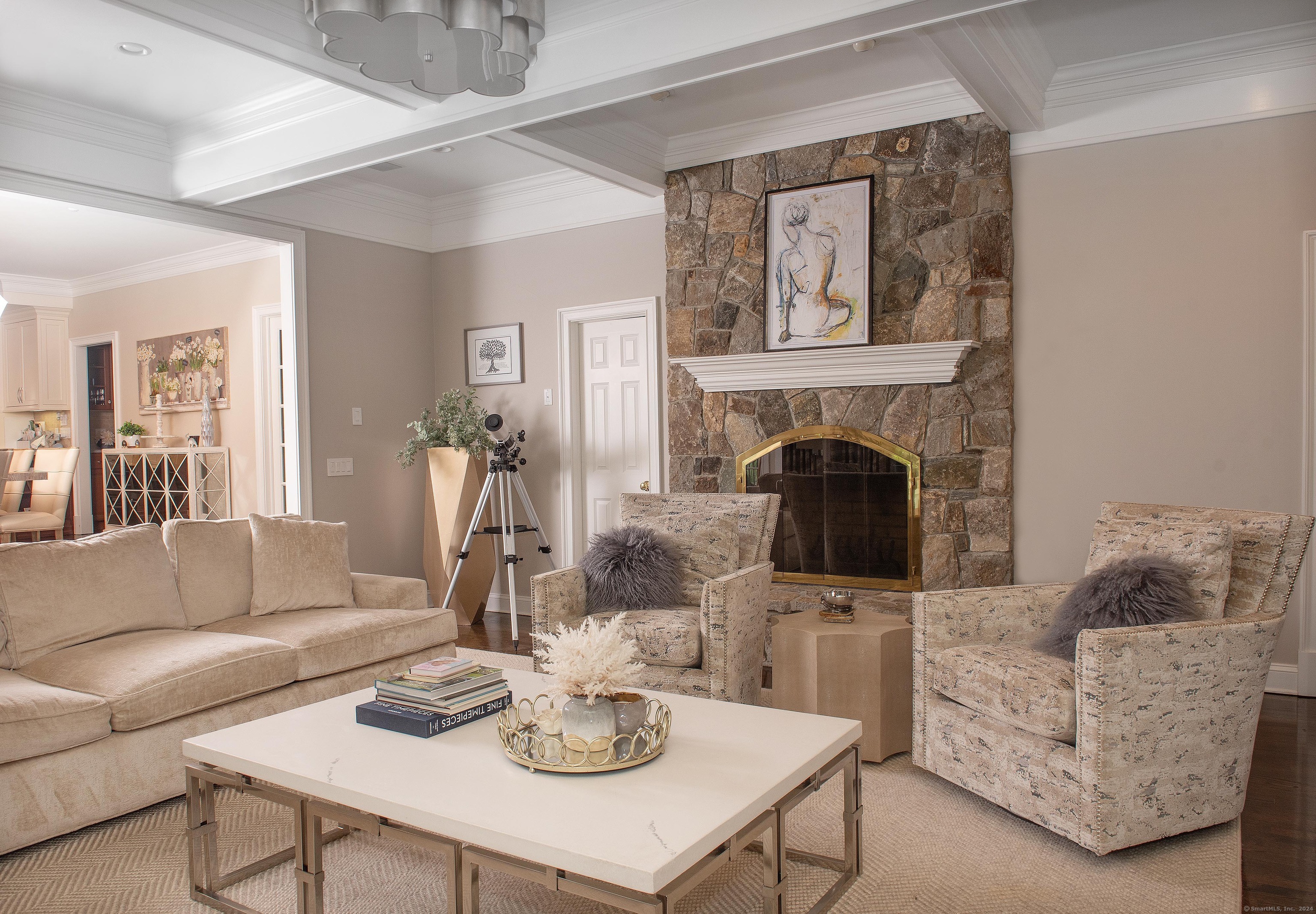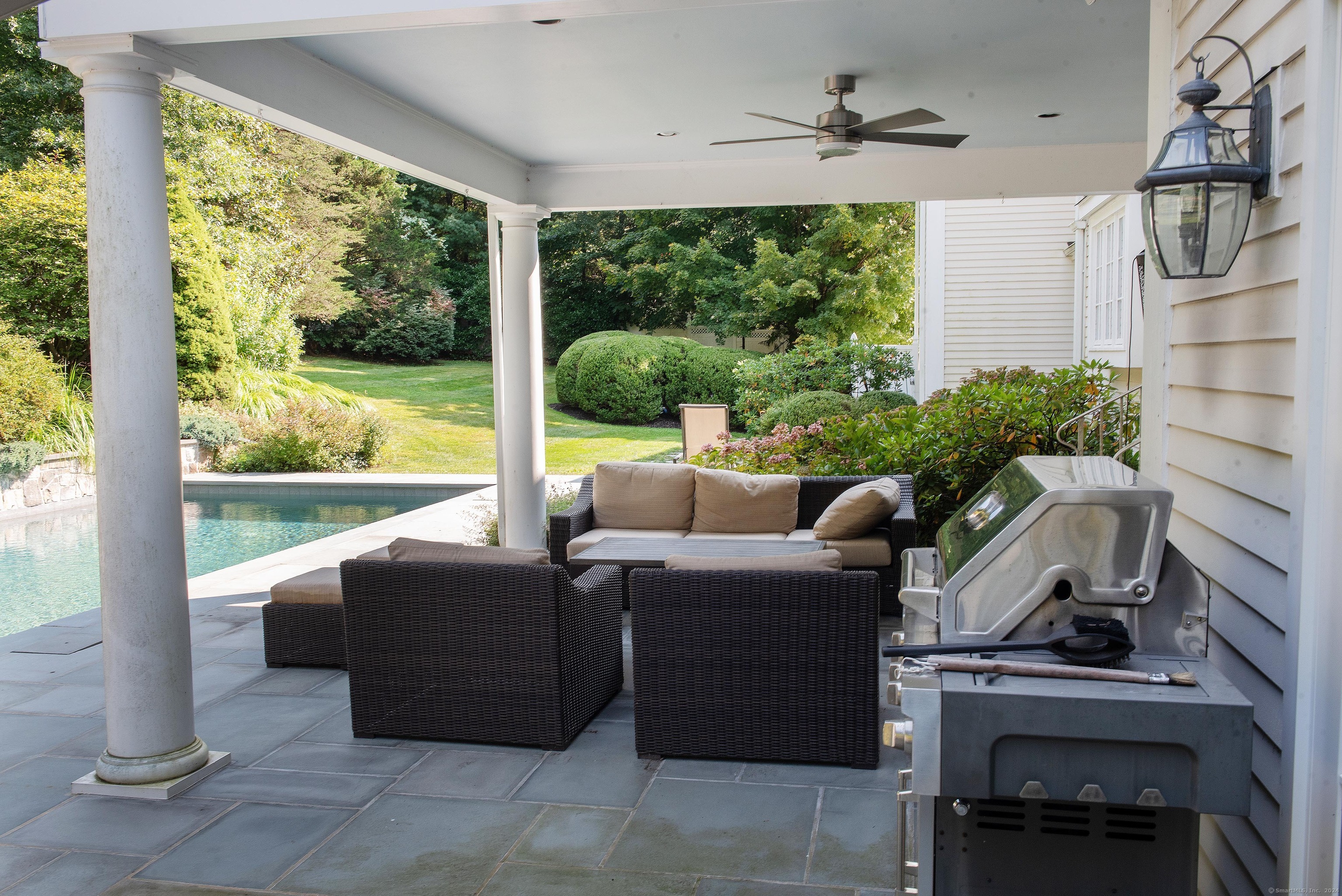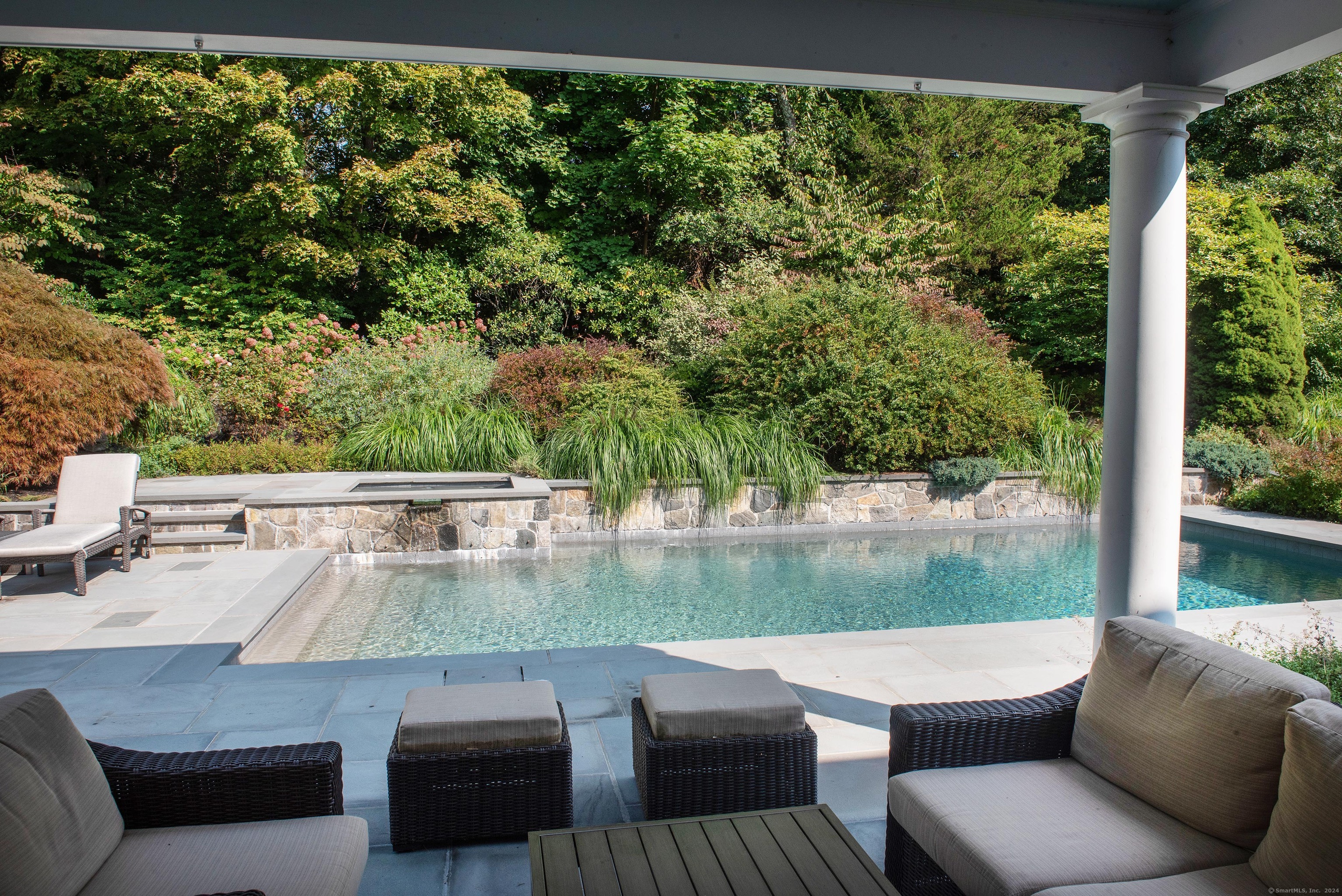 Welcome Home to this absolutely stunning Richard Ramey-built residence beautifully sited on 2+ lushly landscaped acres in prime South Ridgefield! Meticulously crafted with exquisite mill work throughout, coffered ceilings and plenty of natural light. The dramatic 2-story foyer highlights a sweeping wishbone staircase and opens to a beautiful formal dining room, living/music room + butler's pantry, rich library with built-ins, and chef's kitchen with prof appliances, a breakfast room and a stunning family room with a floor-to-ceiling stone fireplace. Upstairs, the primary suite incl a sitting room + 2 large WIC and spa-like bath. There are also 3 add'l spacious bedrooms, 2 of them en suite. A bonus room over the garage offers yet more flex space to enjoy a gym, family room or add'l office. The fabulous patio leads to the relaxing gunite pool and spa enveloped in green trees and perennials. In addition, a 15KW whole house generator, electric vehicle charger, high-end Hydro Air heating system, 3-zone A/C, electronic foyer chandelier lift, reinforced floor in room over 4-car garage, closed circuit camera system; irrigation and more provide stress free living! You can't beat the location close to all major routes down county, plus the Katonah Train for an easy NYC commute. Minutes to town center and all it has to offer incl boutique shopping, fine dining, library, galleries, parks, gyms and plenty of social activities. This turn-key property has it all! Welcome Home!