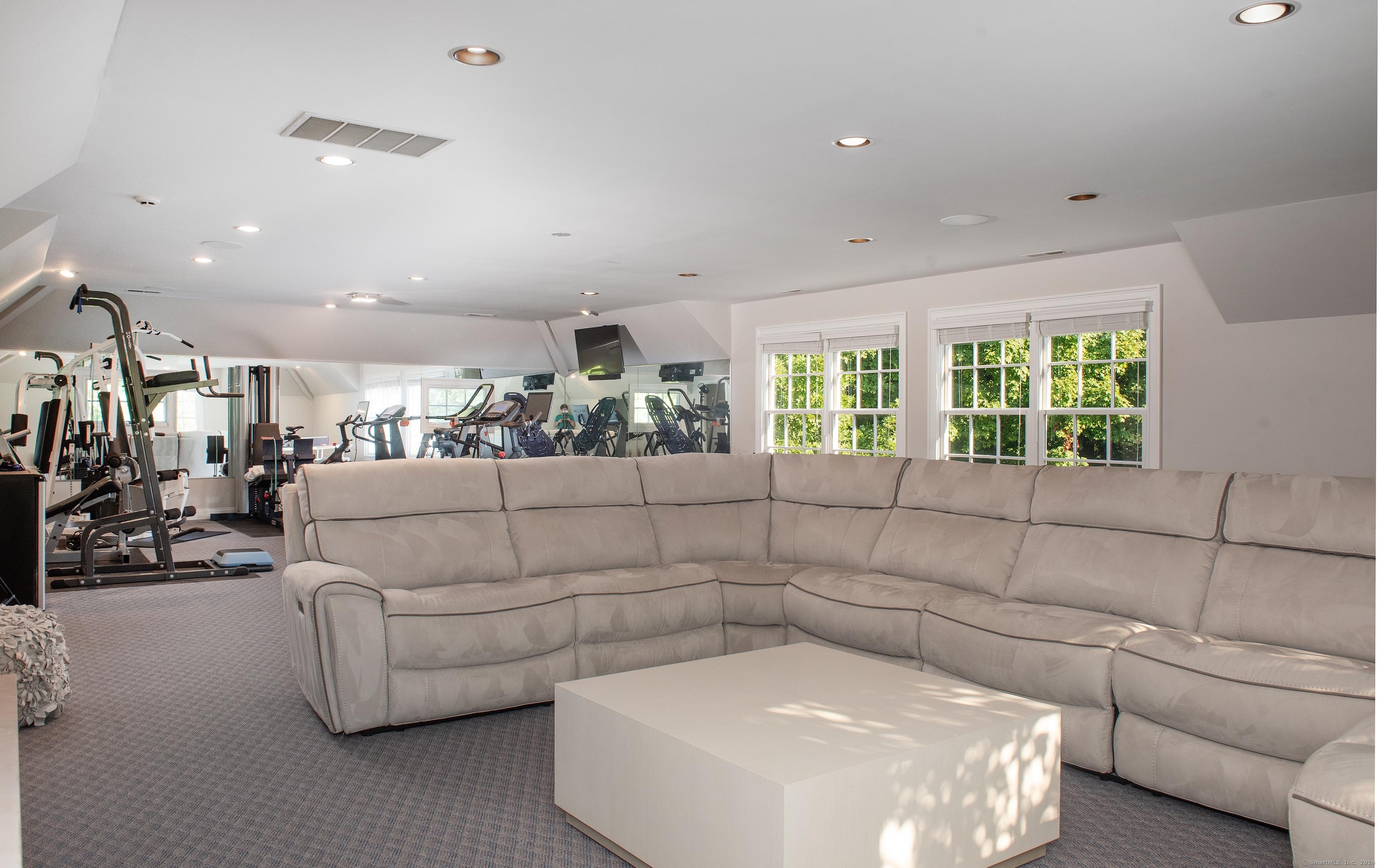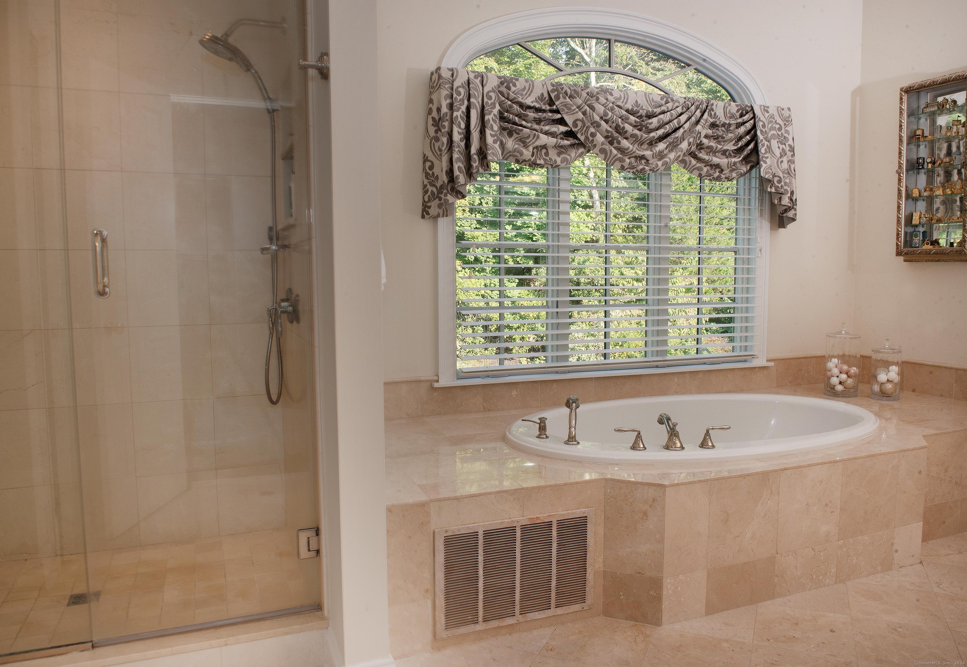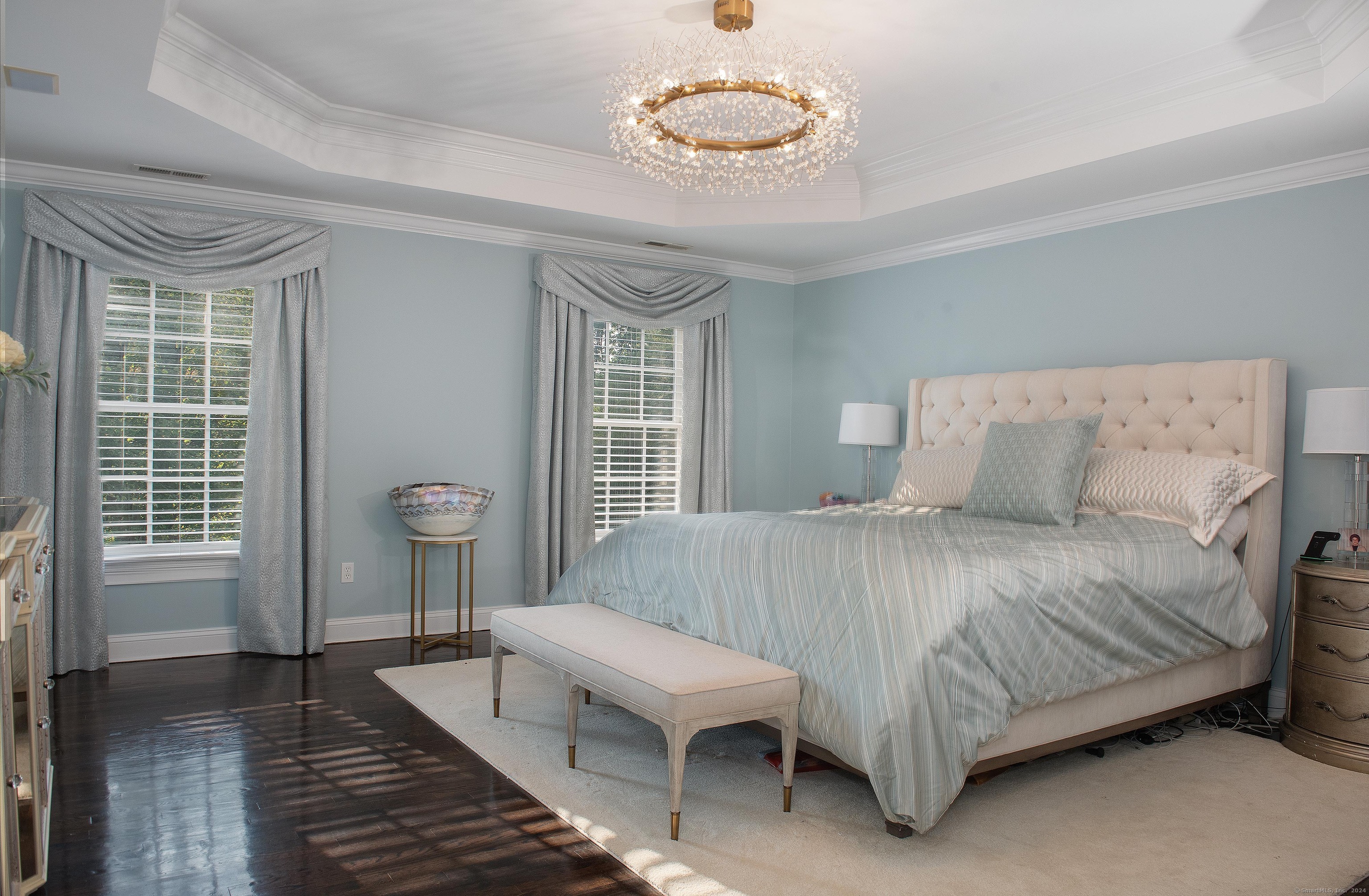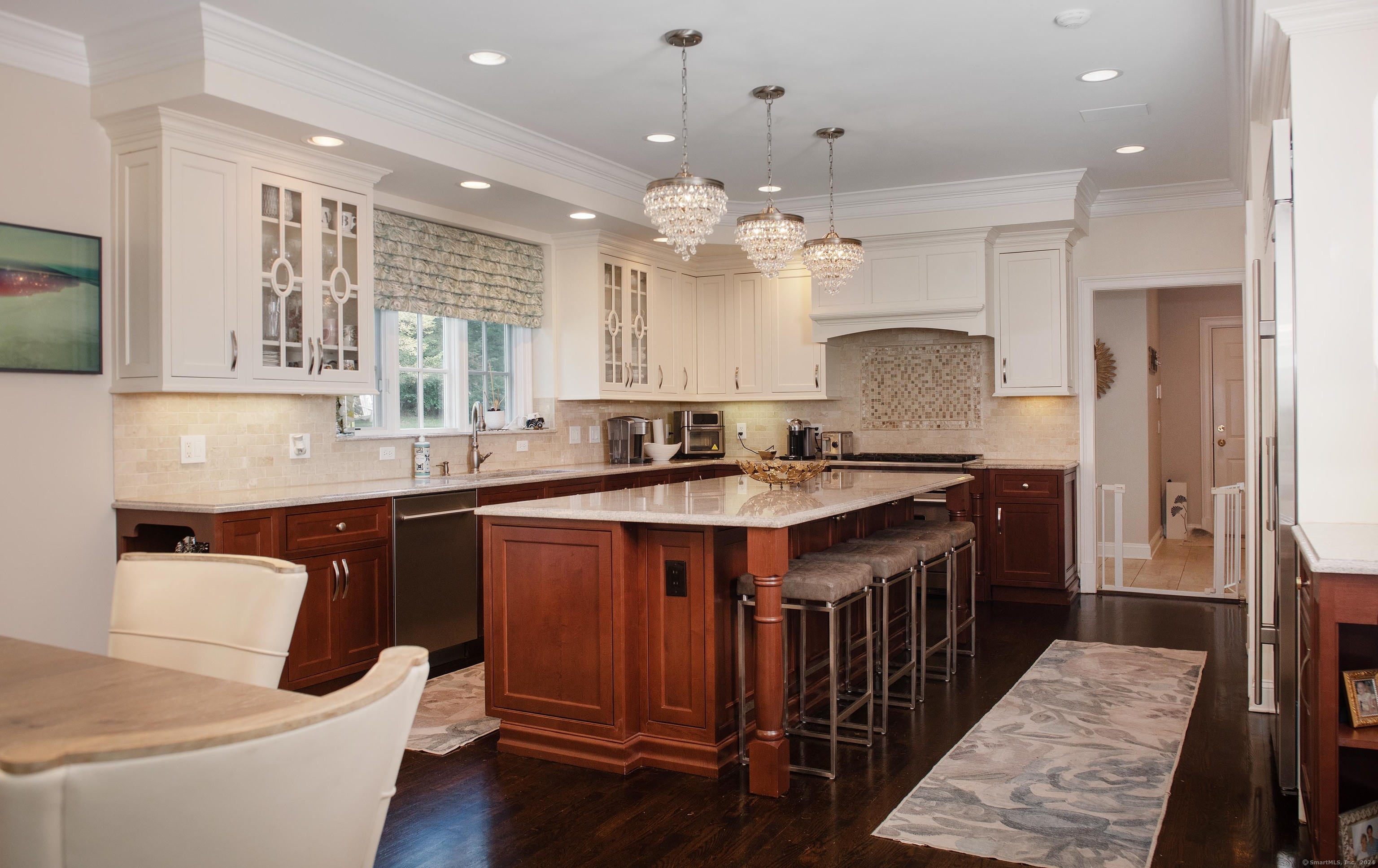 Welcome Home to this absolutely stunning Richard Ramey-built residence beautifully sited on 2+ lushly landscaped acres in prime South Ridgefield! Meticulously crafted with exquisite mill work throughout, coffered ceilings and plenty of natural light. The dramatic 2-story foyer highlights a sweeping wishbone staircase and opens to a beautiful formal dining room, living/music room + butler's pantry, rich library with built-ins, and chef's kitchen with prof appliances, a breakfast room and a stunning family room with a floor-to-ceiling stone fireplace. Upstairs, the primary suite incl a sitting room + 2 large WIC and spa-like bath. There are also 3 add'l spacious bedrooms, 2 of them en suite. A bonus room over the garage offers yet more flex space to enjoy a gym, family room or add'l office. The fabulous patio leads to the relaxing gunite pool and spa enveloped in green trees and perennials. In addition, a 15KW whole house generator, electric vehicle charger, high-end Hydro Air heating system, 3-zone A/C, electronic foyer chandelier lift, reinforced floor in room over 4-car garage, closed circuit camera system; irrigation and more provide stress free living! You can't beat the location close to all major routes down county, plus the Katonah Train for an easy NYC commute. Minutes to town center and all it has to offer incl boutique shopping, fine dining, library, galleries, parks, gyms and plenty of social activities. This turn-key property has it all! Welcome Home!