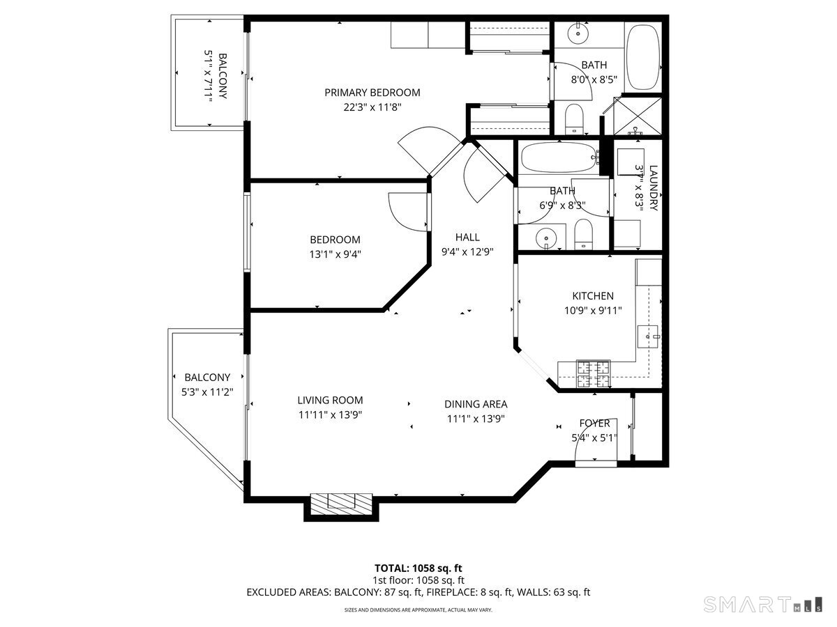 | Primary Bedroom | Balcony/Deck,Full Bath | 11.8 x 22.3 | Main |
