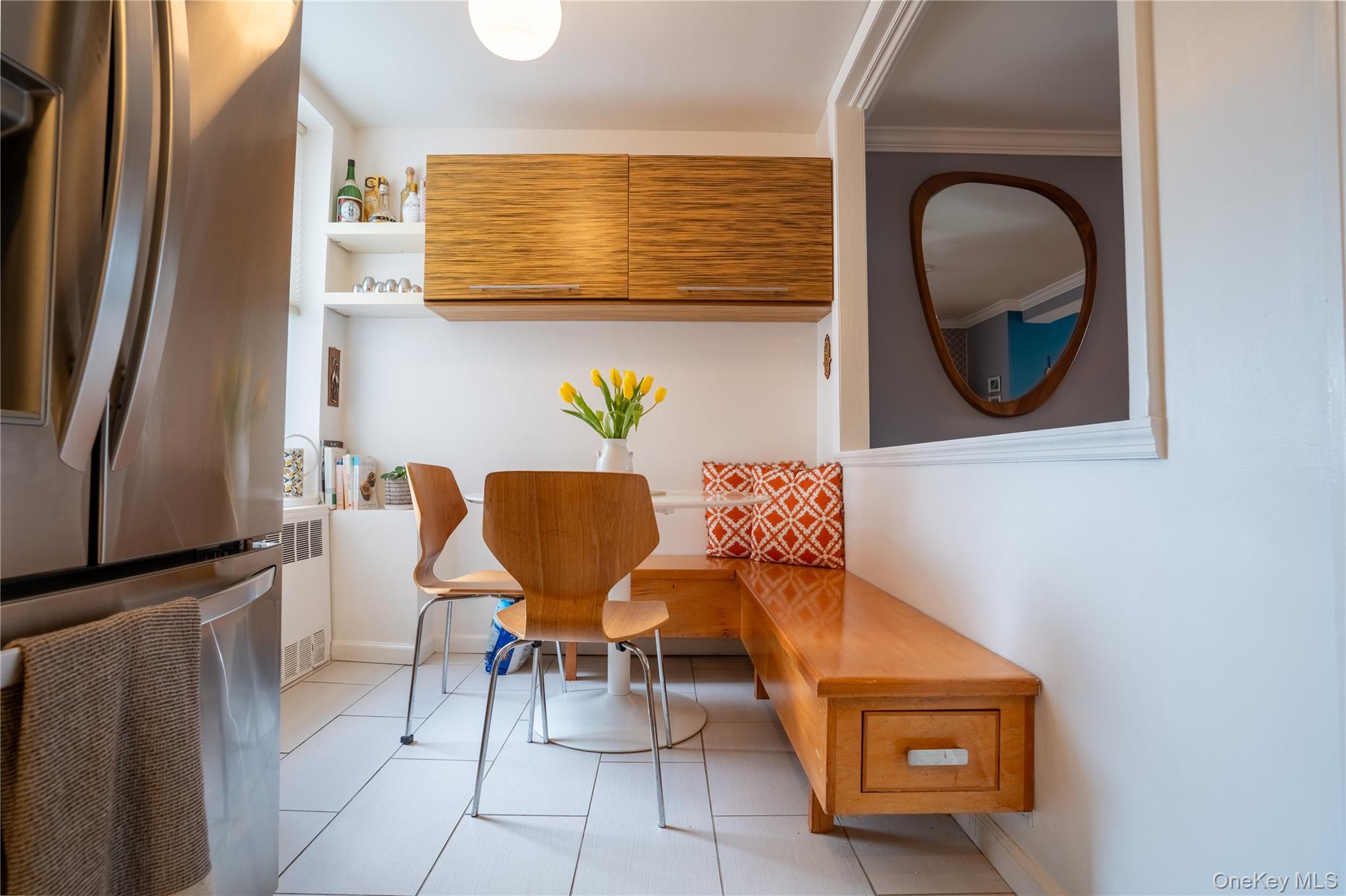 Rare opportunity! Come view this recently renovated, top-floor corner unit featuring 3 bedrooms and 2 full baths. This 1500 sq ft apartment offers home-like living with it's spacious living room/dining area and large sized bedrooms. As you walk through the entry, you will find a generously sized mud-room with cubbyholes and other storage compartments. There is a door leading to the kitchen which includes zebrawood-over-oak kitchen cabinetry with a breakfast nook, storage bench, stainless steel appliances, glass backsplash, tiled flooring, quartz countertops, microwave and exhaust fan. There is a pass-through opening from the kitchen to dining area, giving an open feel. The main bedroom includes an on-suite spa like bathroom with floor to ceiling tiles. The apartment has recessed lighting, crown moldings, and solid wood floors throughout and central air. Each bedroom includes designer lighting, new 2026 shades and ceiling fans. Bridge and water views. A washer/dryer can be installed in the kitchen area. The sellers are including the 2 wall-mounted smart TVs (75” & 55”). No flip tax. You can sublet after 3 years. This unit offers the ultimate privacy—no neighbors above or surrounding three sides. The unit comes with an assigned parking spot for $35 per month. The express bus to Manhattan is on the corner, LIRR just 6 minutes away (25-minute commute). Steps to Bay Terrace shopping, dining, and everyday essentials. Maintenance $2096. 71 - co op tax credit ($146. 87) + RE tax assessment $160. 50 + parking $35 TOTAL $2, 145. 34. Co-signers ARE allowed.