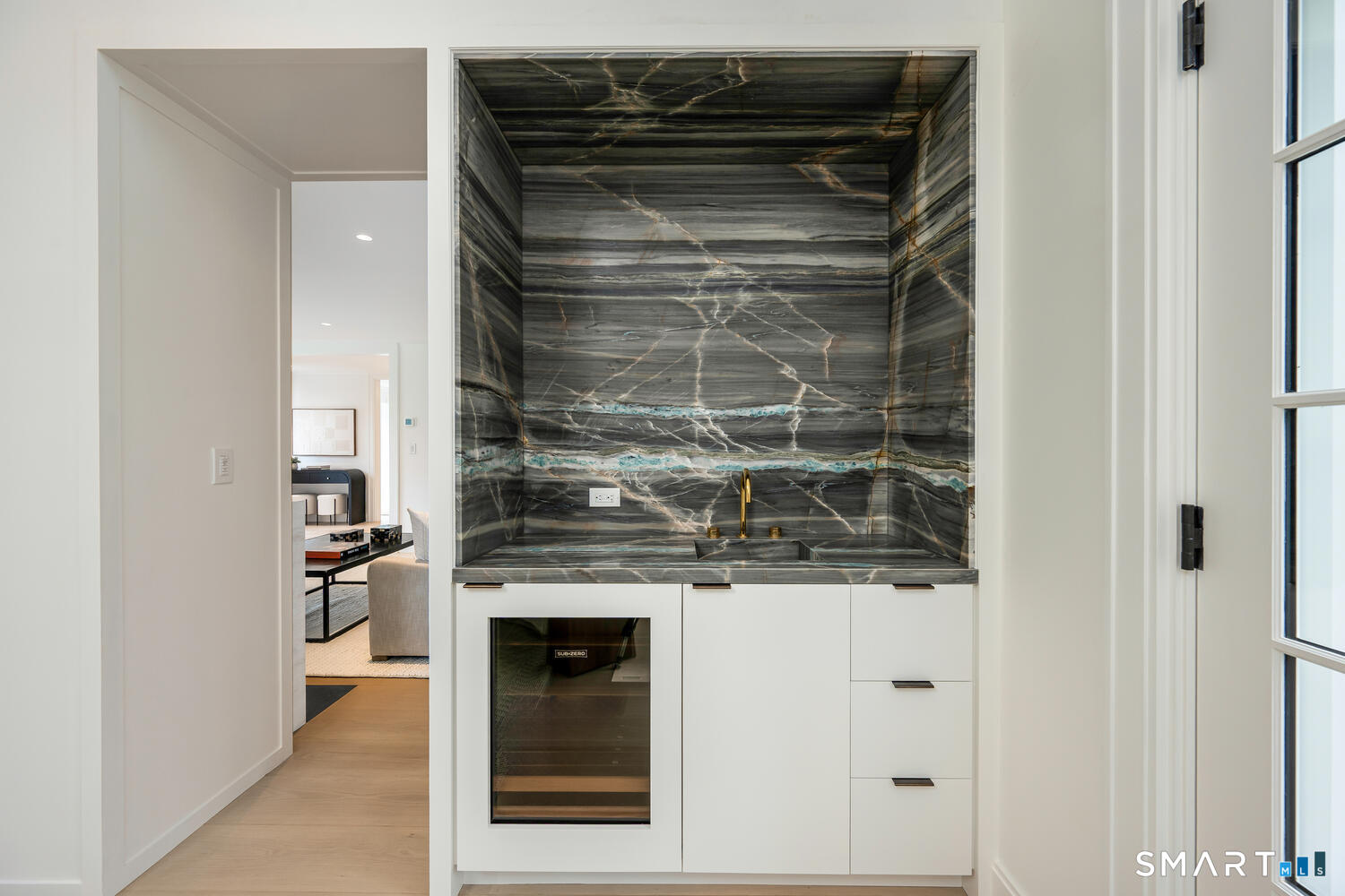 Stunning 4-bedroom, 4. 1-bath Colonial on . 77 acres completely reimagined & renovated by Nordic Custom Builders offers exceptional craftsmanship & modern luxury throughout. Gracious layout features formal living & dining rooms with fireplace & French doors opening to expansive bluestone patio & pool. Spectacular office showcases vaulted shiplap ceiling, marble wet bar with wine refrigerator & French doors to backyard. Custom moldings throughout. Chef's kitchen beautifully appointed with Thermador appliances, Sub-Zero refrigerator & freezer, custom cabinetry, banquette seating & an additional wet bar with wine fridge & ice maker. French doors lead to screened porch with removable plexiglass panels for warmth, ideal for effortless indoor-outdoor living. Sophisticated family room features oversized windows, custom built-ins & fireplace. Integrated audio system runs throughout the home. Luxurious primary suite lined with custom built-ins offers oversized walk-in closet & marble bath with steam shower & heated floors. Three additional bedrooms with custom closets & two marble baths with heated floors complete 2nd floor. Finished lower level includes a full bath and two large flexible spaces for gym, playroom, media room or fifth bedroom. Step outside to enjoy a meticulously landscaped lawn with new Gunite pool, hot tub, & pool house. Every detail in this home is new - all windows, doors, 10" white oak floors, HVAC/furnace, cedar roof, irrigation, landscaping/lighting & more!
