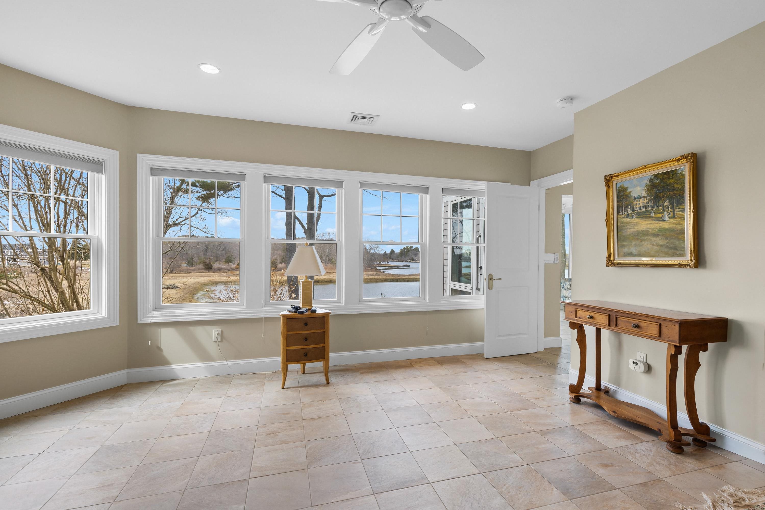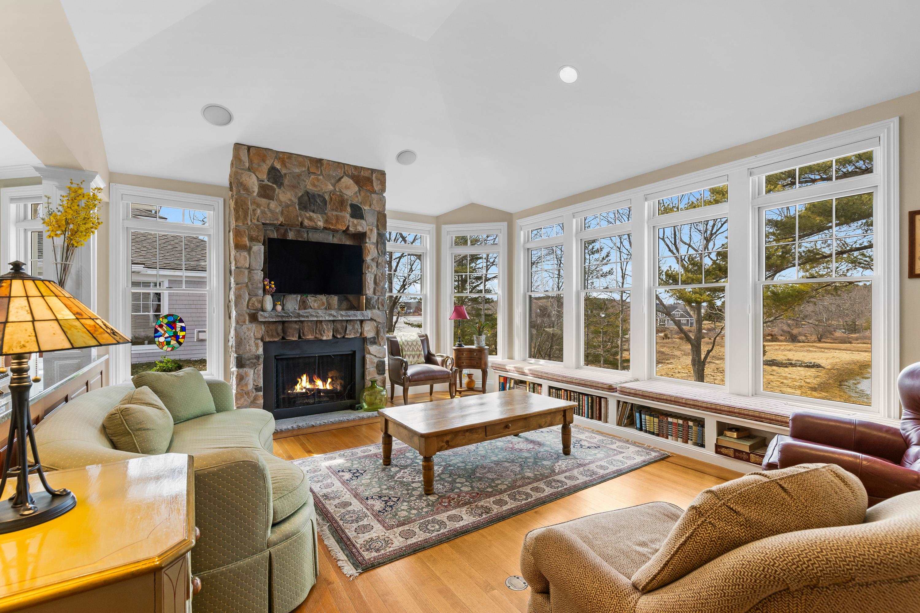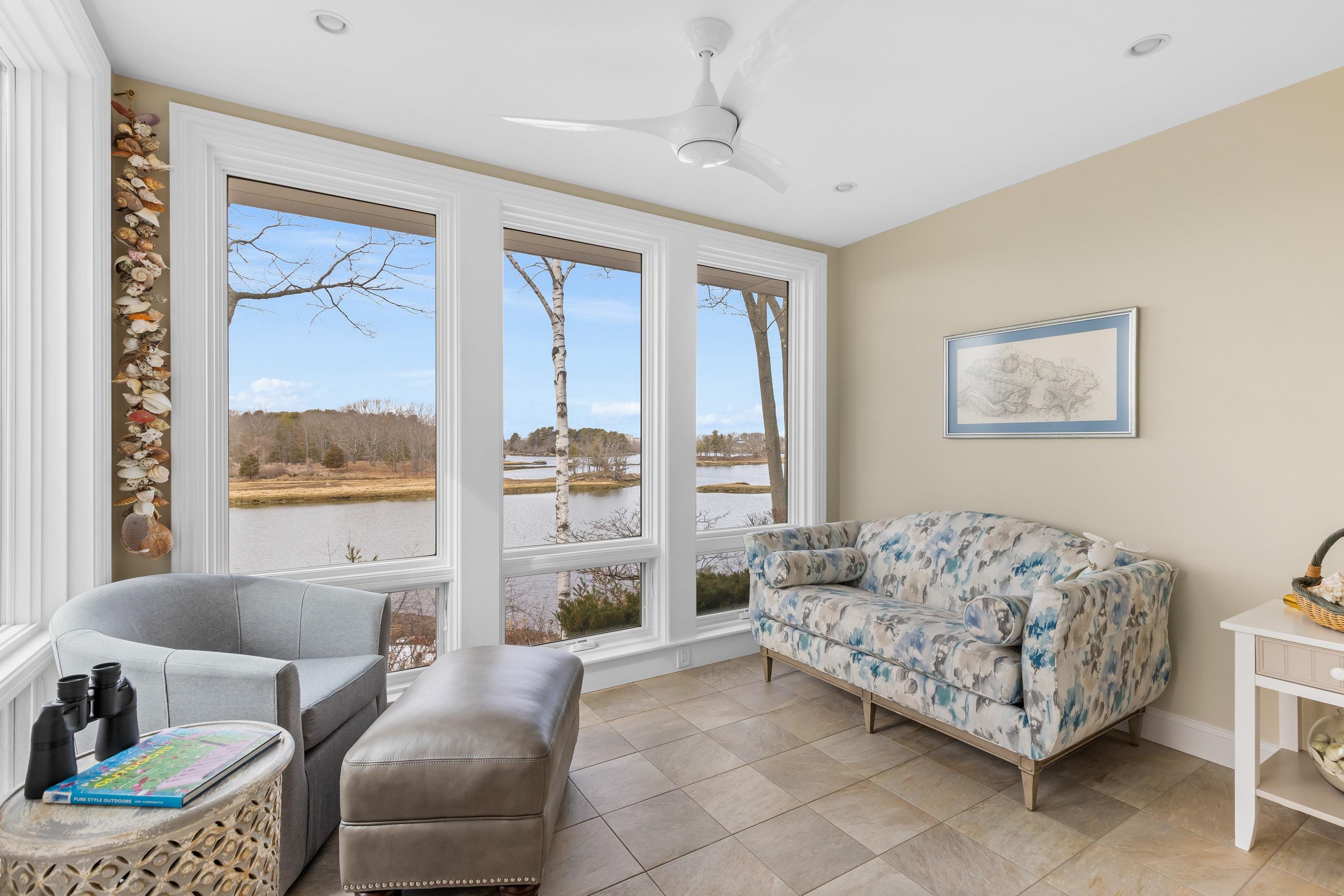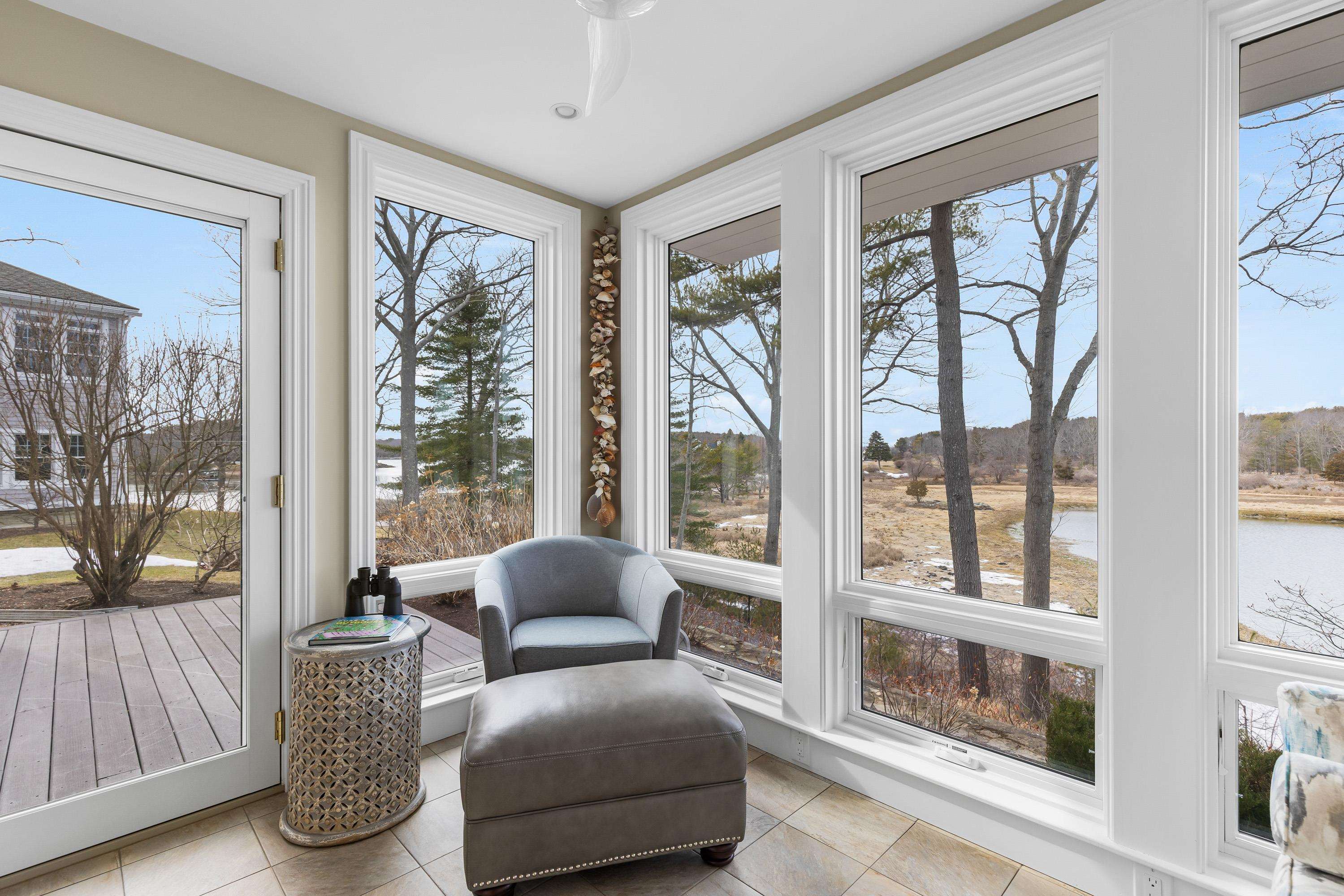 Set amidst the natural beauty of New Castle, this is a rare offering that captures the essence of refined coastal living. Boasting beautiful views of Little Harbor’s back channel, and Sagamore Creek, this elegant 3+ bedroom, 3. 5-bath condominium offers over 3, 400 square feet of light-filled living space in a private setting surrounded by mature woodlands and abundant wildlife. Designed for both elegance and easy single-floor living, the home features a sought-after first-floor primary suite with newly finished walk-in shower and huge soaker tub, radiant flooring, elevator access, and expansive windows that fill the home with natural sunlight. The chef’s kitchen is appointed with granite countertops and Wolf appliances, while the large patio and deck spaces provide lots of opportunities to connect with the peaceful landscape and water views. There are two additional bedrooms and full bath located on the second floor, while the lower floor offers an additional bedroom space, full bath, and a sun room with incredible harbor views. Additional highlights include a climate controlled underground garage with several dedicated storage rooms, and very low New Castle property taxes. Available for the first time in over 20 years, this stately home offers a combination of privacy, outdoor space, luxury finishes, and captivating coastal scenery, not found in many homes on the Seacoast. Walk to the outdoor heated pool, tennis courts, and the Wentworth Hotel & Spa. The marina and golf course are located right next door! Contact agent for more information and to schedule your exclusive showing.
