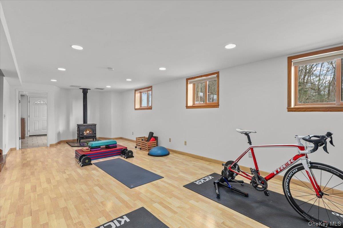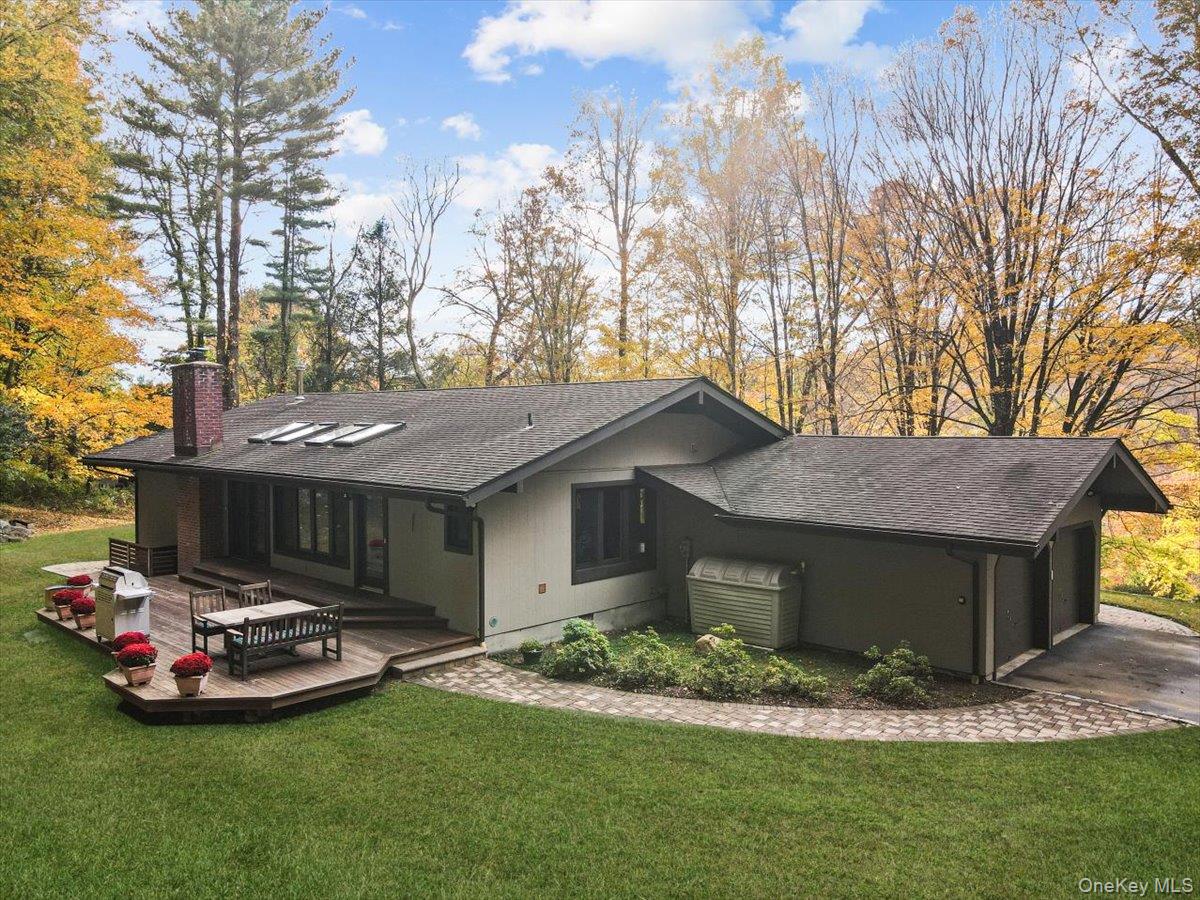 One level living in this meticulously updated and maintained no step 3 bedroom ranch home. The bright remodeled kitchen with large island, stainless appliances, abundant cabinets, and assess to deck is open to the family room with vaulted ceiling, wall of windows and wood burning stove. The living room flows into the dining room and gives you plenty of room to entertain. Down the hall, the primary suite has two closets and an ensuite bathrooms. There are two additional bedrooms and a modern hall bathroom. Lower level has a large recreation room, an office with a separate entrance, laundry room and plenty of storage. The outdoor spaces feature a private yard, an oversized wood deck and beautiful stone walls. Special details include a new furnace and hot water heater, radiant heat in kitchen, bathrooms and foyer, Marvin windows, two wood burning stoves, and an Ipe deck. Located in a quiet and convenient neighborhood that is close to town and the Armonk town pool.