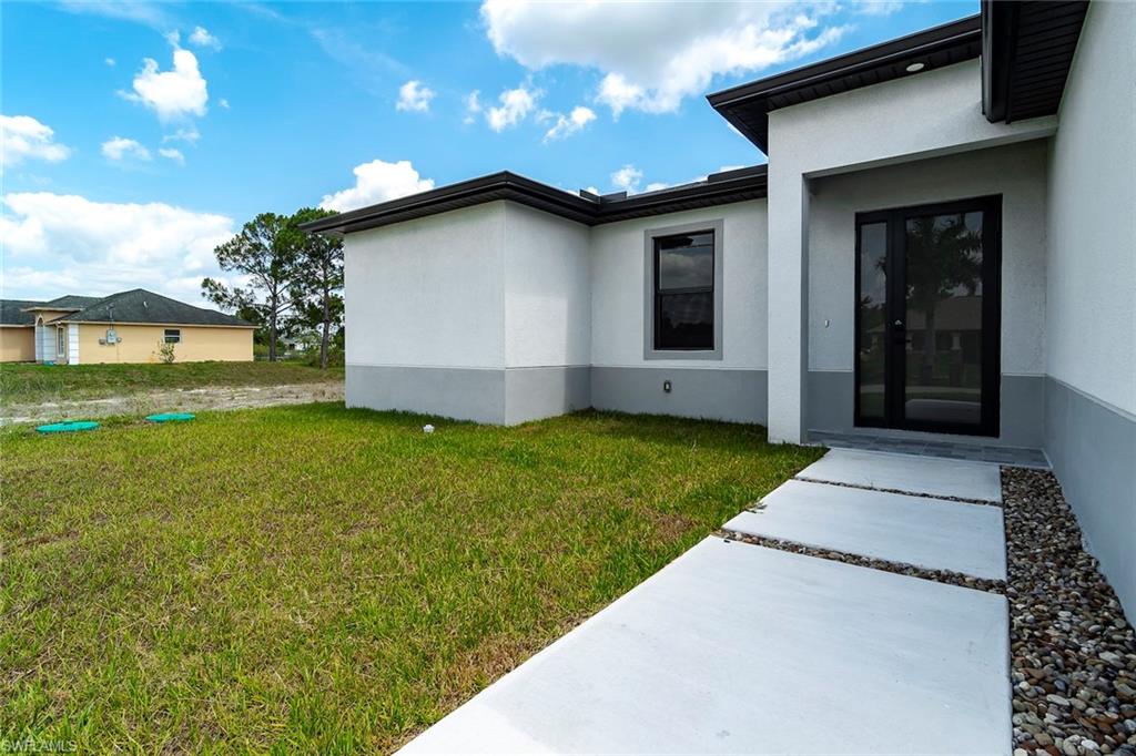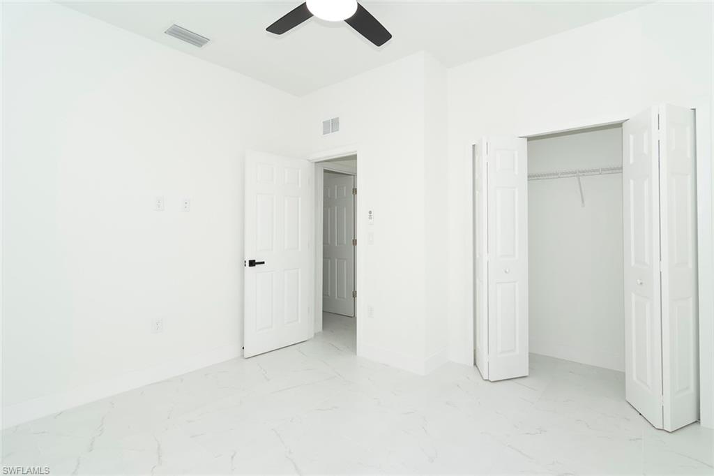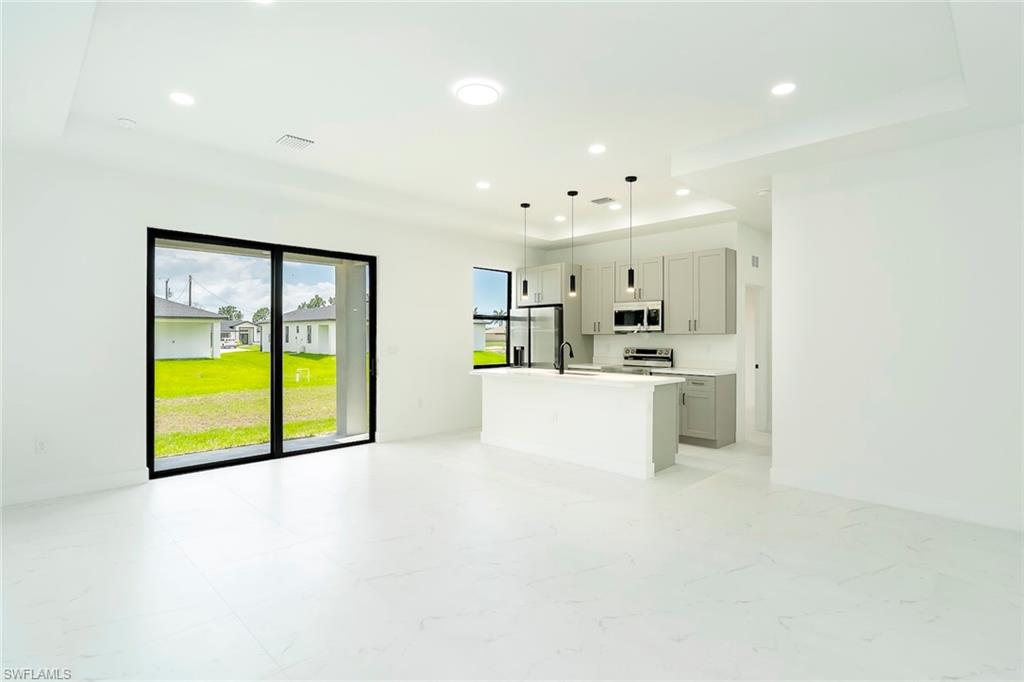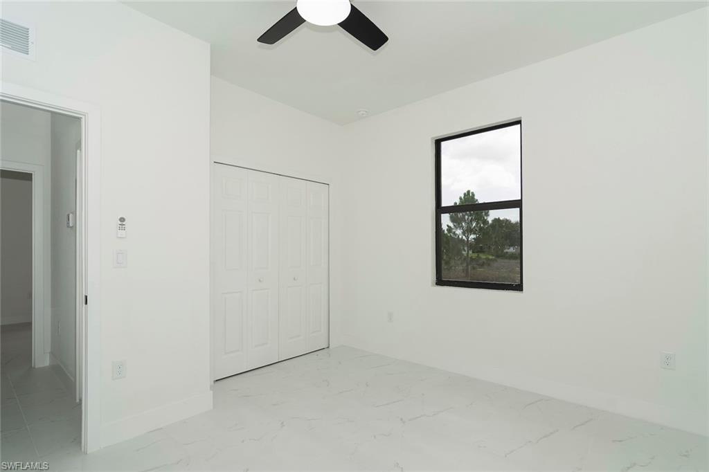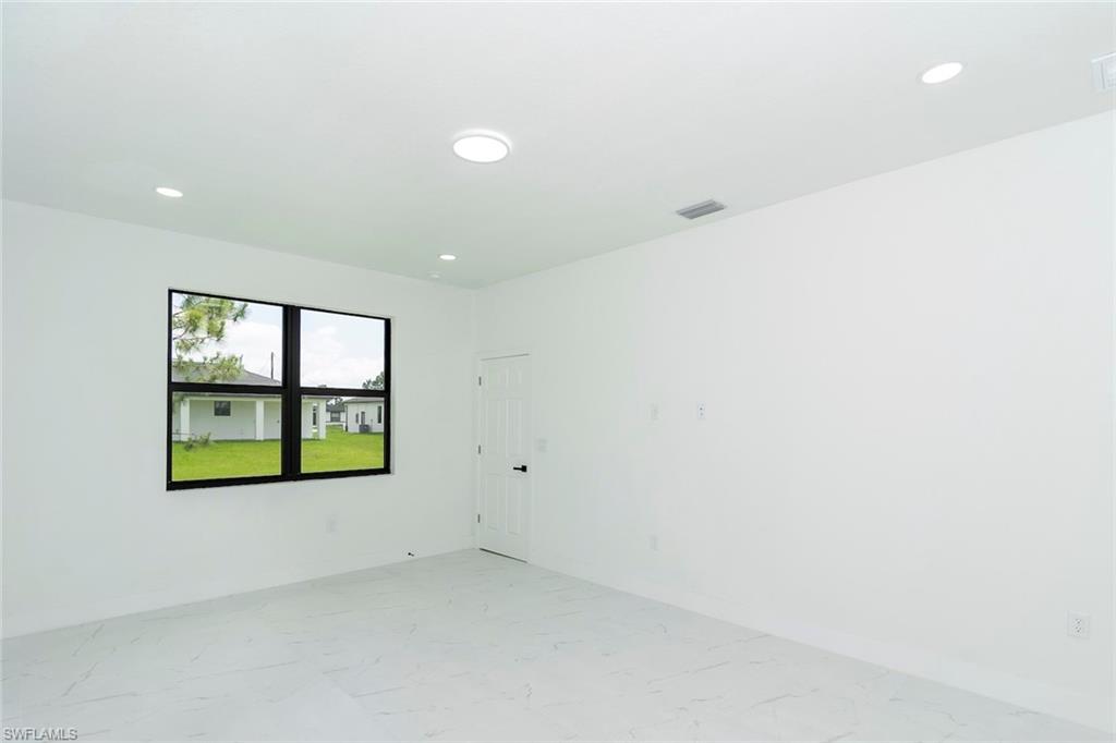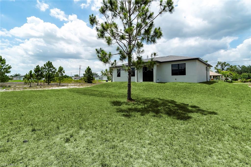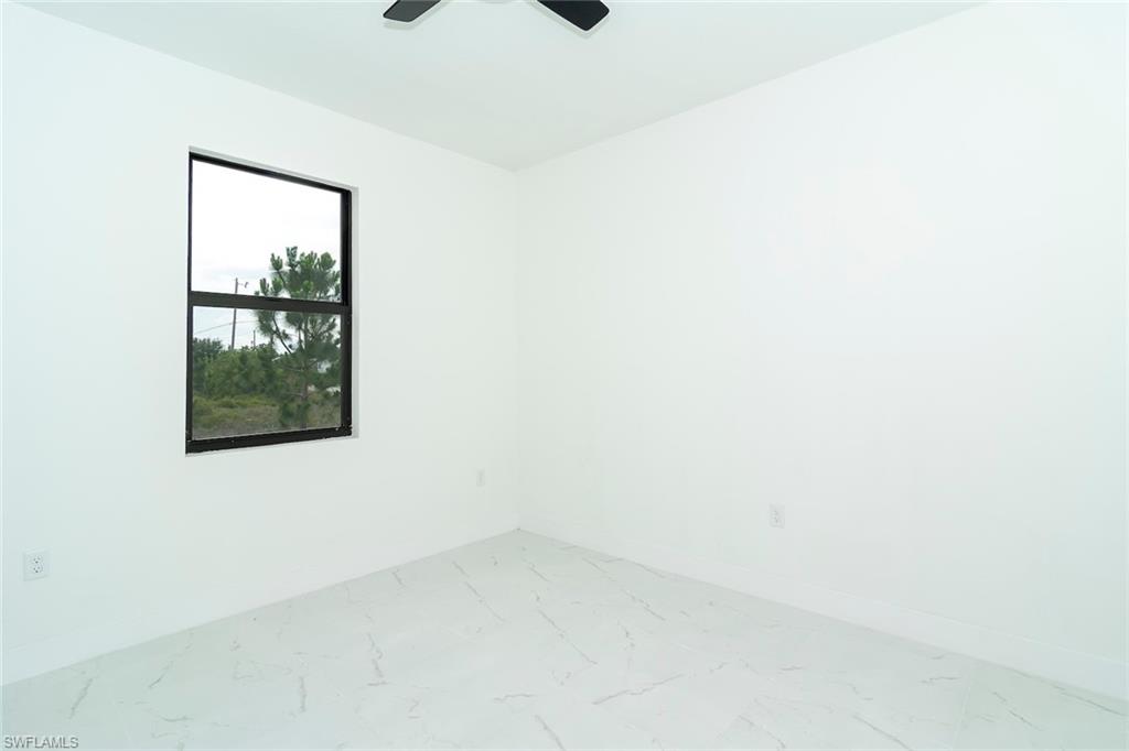 Brand-new construction in one of Lehigh Acres' most desirable neighborhoods! This beautifully designed home offers 3 spacious bedrooms, a versatile den (perfect as a 4th bedroom or office), 2 full bathrooms, and a 2-car garage. The open-concept floor plan is ideal for both everyday living and entertaining. The modern kitchen features quartz countertops, stainless steel appliances, contemporary cabinetry, and a large island with seating. The spacious master suite includes a walk-in closet and a private en-suite bathroom with dual vanities and a walk-in shower. Upgrades throughout the home include imported tile flooring, elegant tray ceilings, energy-efficient LED lighting, and impact-resistant windows and doors for added safety and peace of mind. The den adds flexibility to the layout, offering space for remote work, guests, or a playroom. Enjoy outdoor living on the open lanai overlooking a large backyard with plenty of space to add a pool or customize your outdoor oasis. Conveniently located near Daniels Parkway, SR-82, shopping, dining, schools, and just a short drive to Fort Myers and Southwest Florida’s beautiful beaches. This move-in-ready home combines modern design, quality finishes, and everyday functionality—schedule your showing today!
