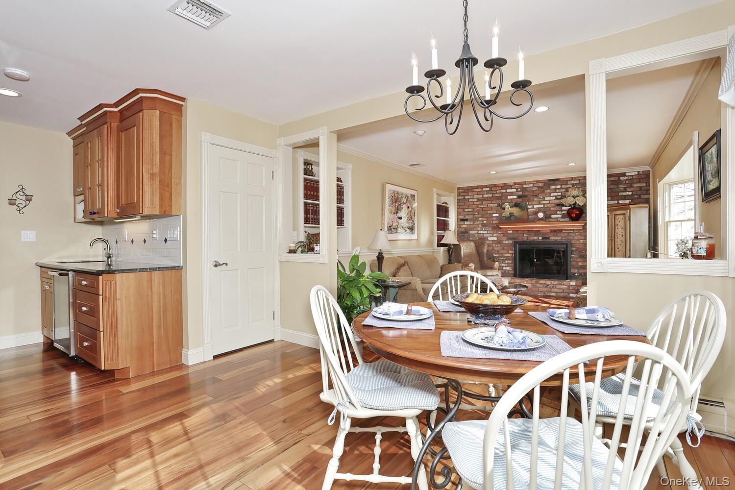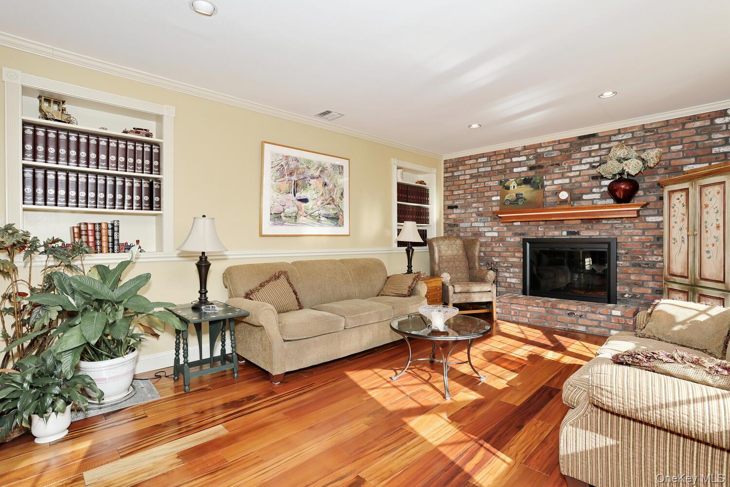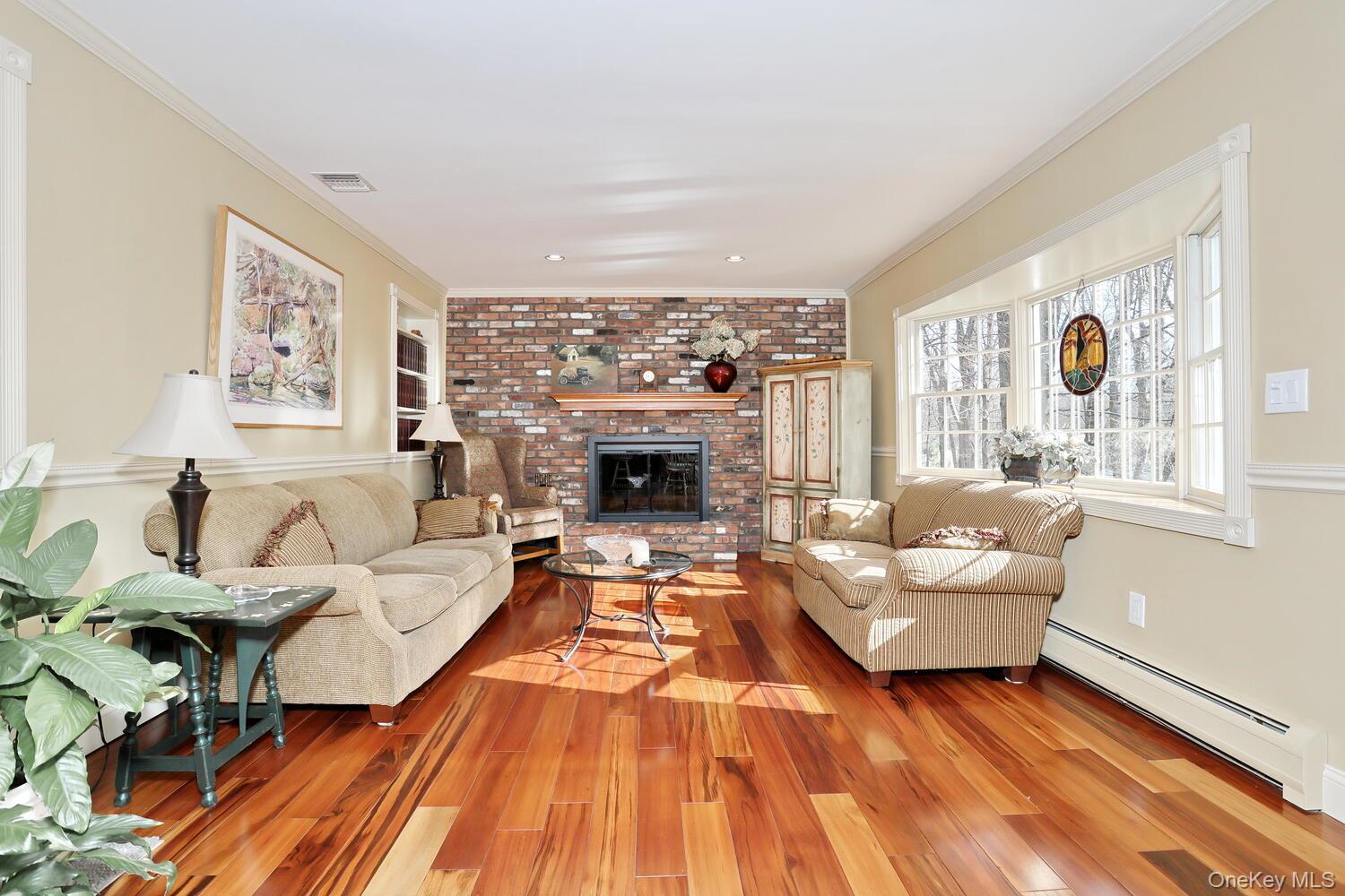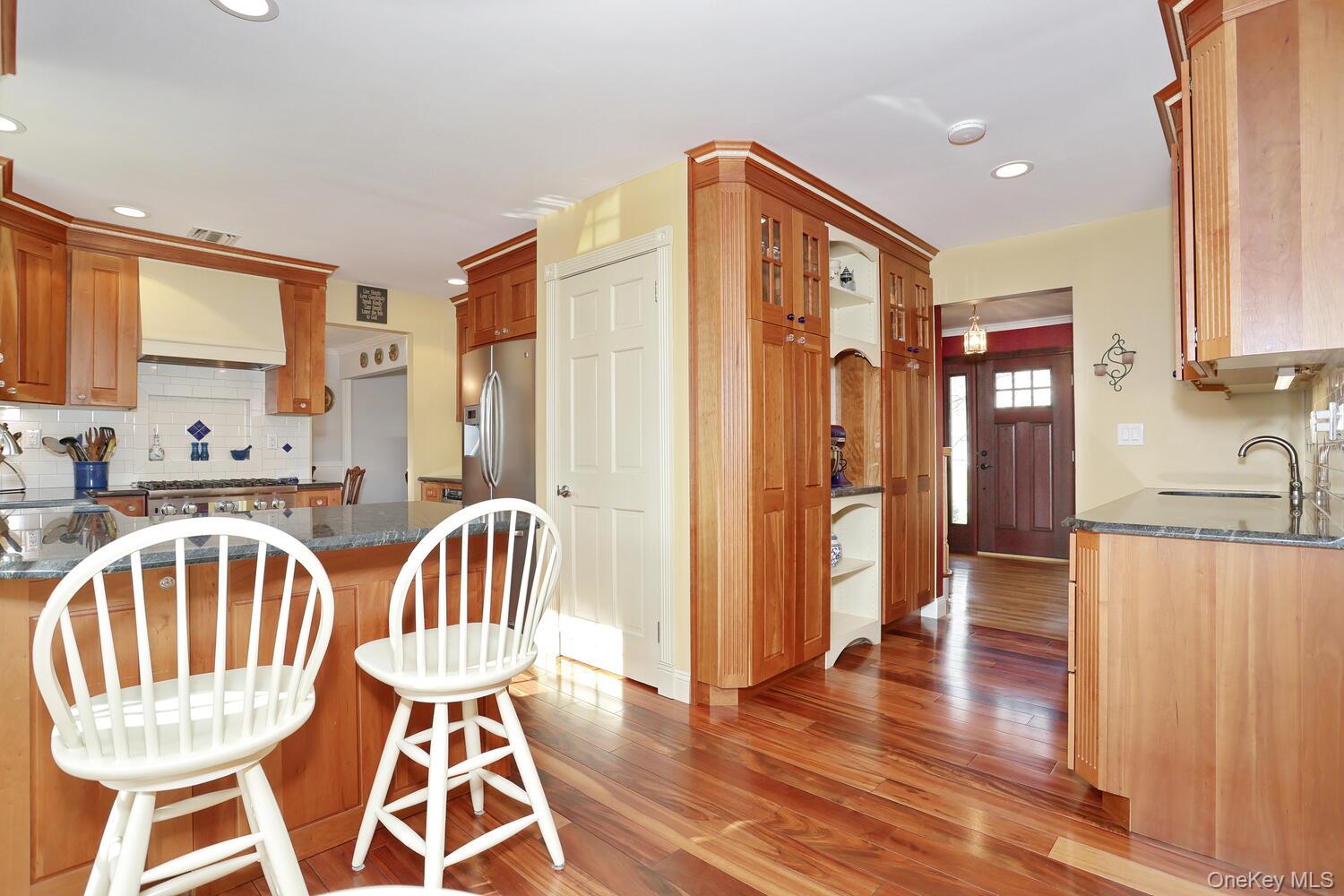 Nestled among beautifully landscaped grounds, this exceptional 4-bedroom home offers a seamless blend of quality craftsmanship and modern comfort. A welcoming exterior features a paver walkway leading to wide front steps and a 2-car garage, setting the tone for what awaits inside. The interior showcases rich hardwood floors, solid wood doors throughout, and an abundance of natural light from new windows. Designed with both everyday living and entertaining in mind, the kitchen is a standout—complete with natural cherry cabinetry, granite countertops, built-in pantry closets, a wine fridge, farmhouse sink, and a Viking dual fuel stove. Striking wide-plank Tigerwood floors add warmth and character, while a door off the kitchen leads to a redwood deck with built-in planter boxes, creating the perfect outdoor extension of the home. The family room is equally inviting, featuring a dramatic brick fireplace wall with a wood-burning fireplace—ideal for cozy evenings. Upstairs, you’ll find four spacious bedrooms, including a generously sized primary suite with a charming window seat and a cedar walk-in closet. The updated primary bath (2021) features a heated floor for added comfort. The hall bath is thoughtfully appointed with granite counters and an extra-deep tub. A conveniently located second-floor laundry adds ease to daily living. Additional highlights include high-efficiency heating, Rheem furnace (approx 3 yrs young), on-demand hot water, central air system (approx 3 yrs young). This home offers a rare combination of thoughtful upgrades, timeless finishes, and comfortable living spaces—ready to be enjoyed.