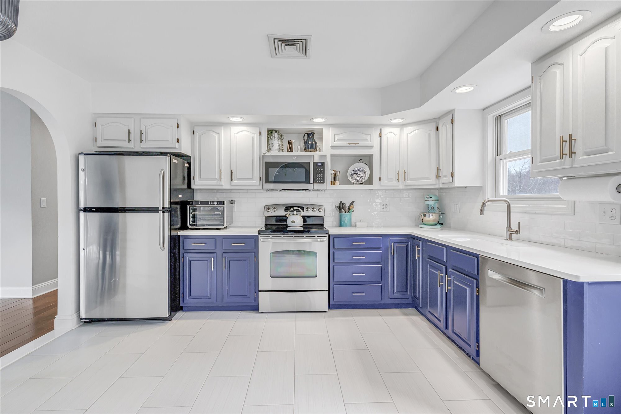 Coastal Modern Masterpiece: Private Cul-de-Sac Retreat! Welcome to this stunning 3BR, 2. 5BA raised ranch where coastal charm meets high-end design. This one needs to be seen to be appreciated! The sun-drenched open living room-dining room is an entertainers delight, features hardwoods floors throughout, with designer West Elm chandeliers in the entry, living, and dining rooms. The chef's kitchen is a showstopper with sleek quartz countertops, new stainless appliances, porcelain tile, and a classic farmhouse sink. Retreat to the primary suite featuring with private full bath. The versatile lower level offers a spacious family room, a dedicated home office, a custom shoe closet, and a half-bath. Outside, enjoy a fenced-in paradise with a patio, fire pit area, and lush front lawn, maintained by a 4-zone irrigation system. So many smart & efficient upgrades, with leased solar energy & smart thermostats. New high-efficiency AC, LeafFilter gutters, & Roth double-wall oil tank (30-yr warranty). Ultra-quiet garage openers & custom shades throughout. Location Highlights: Coastal: 1 mile to Milford's 17 miles of shoreline. Commuter's Dream: Minutes to Metro-North (NYC/New Haven access). Downtown Vibe: Close to the historic Milford Green with year round activities, festivals, shops, restaurants and cafes! Experience the perfect blend of modern efficiency and downtown energy. Schedule your tour today! Ring Doorbell and indoor cameras with audio and visual recording in use.