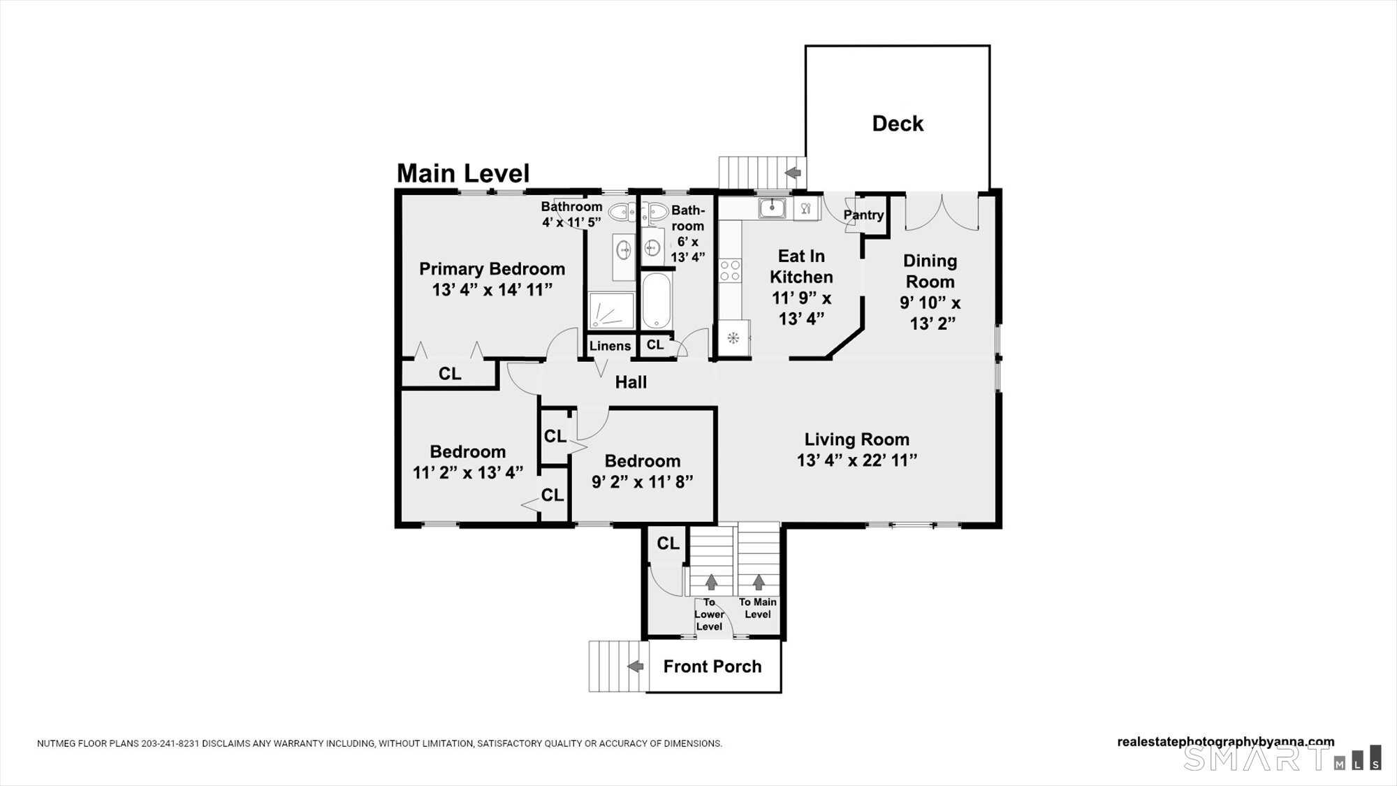 | Primary Bedroom | Full Bath | 13.4 x 14.1 | Main |