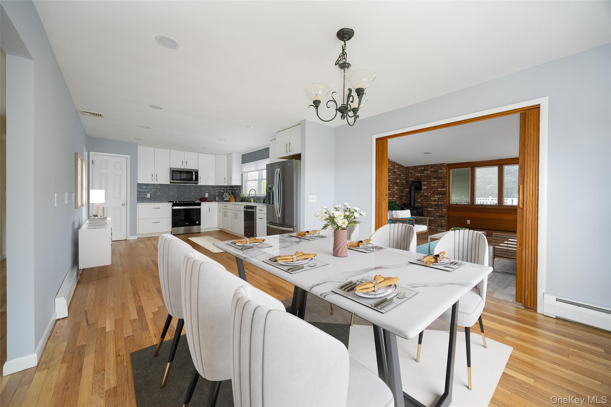 Exuding pride of ownership and thoughtful upgrades throughout, this exceptional residence offers a seamless blend of comfort, style, and modern convenience. From the moment you enter, you are welcomed by beautifully refinished hardwood floors and a light-filled, open-concept layout designed for both everyday living and elegant entertaining. The chef’s kitchen serves as the heart of the home, appointed with custom cabinetry, quartz countertops, Whirlpool appliances, and refined details including recessed and under-cabinet lighting, a lazy Susan, pull-out drawers, and a generously sized pantry—delivering both sophistication and functionality. The primary suite is a true retreat, featuring a spacious walk-in closet and a tastefully updated en-suite bath with a dual vanity and a sleek glass-enclosed shower. A well-appointed hallway bath offers a spa-like ambiance with ceramic tiles, radiant heated flooring, and a deep soaking tub. Multiple living spaces provide flexibility and comfort, including a gracious living room with a gas fireplace and a warm, inviting main-level family room enhanced by a gas stove fireplace—perfect for relaxed evenings or intimate gatherings. Glass sliders lead to an elevated deck overlooking a fully fenced backyard oasis, complete with an above-ground pool—ideal for summer entertaining and outdoor enjoyment. The finished lower level further enhances the home’s versatility, offering a spacious second family room, an additional room suited for a private office or guest accommodation, and a beautifully updated full bath with a conveniently integrated stackable washer and dryer. Modern systems and infrastructure elevate peace of mind, including central air, a manual generator capable of maintaining essential functions such as heating and refrigeration during outages, and a hybrid oil heating system with future gas conversion potential. Recent capital improvements underscore the home’s turnkey appeal, including a new water heater (2025), whole-house water filtration system (2025), water softener (2025), and a newly redone driveway (2025). The roof and covered gutters are approximately 10 years old, and the electrical system has been upgraded to 200 amps. Ideally situated just 7 miles from the train station and under 10 minutes drive to the Taconic State Parkway, this home offers a rare combination of refined living, practical upgrades, and commuter convenience.