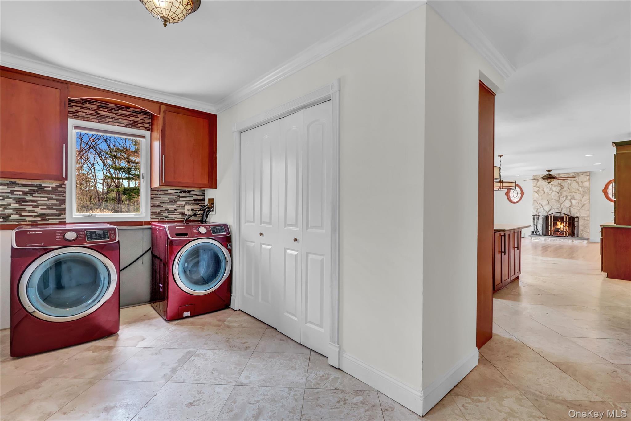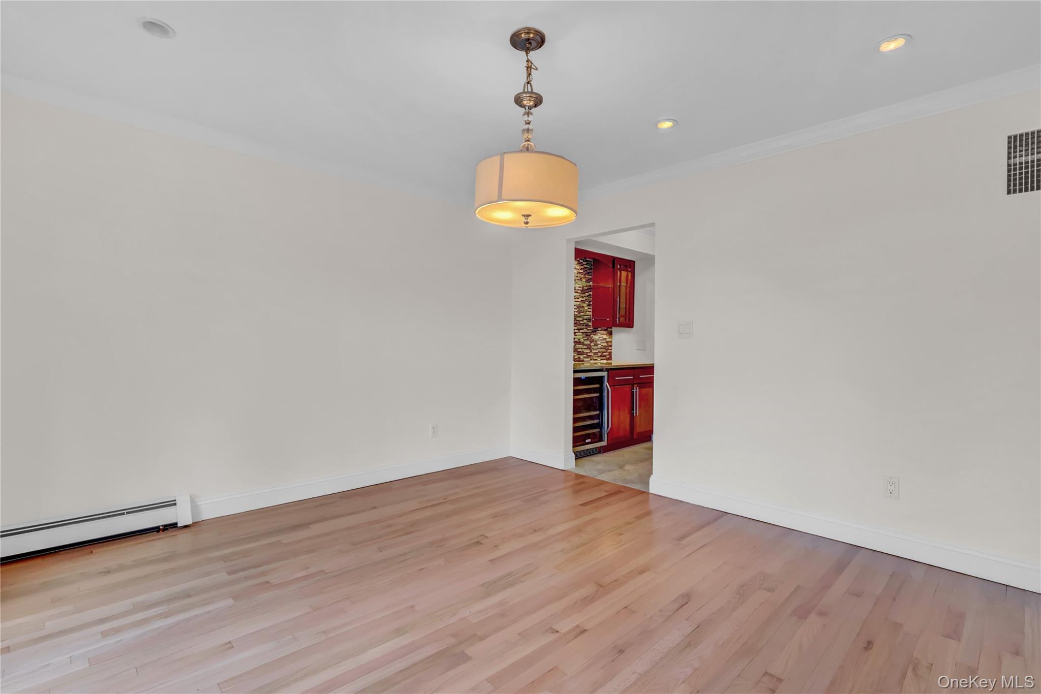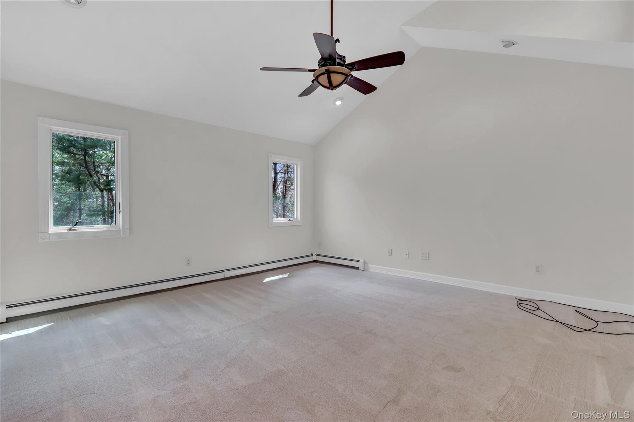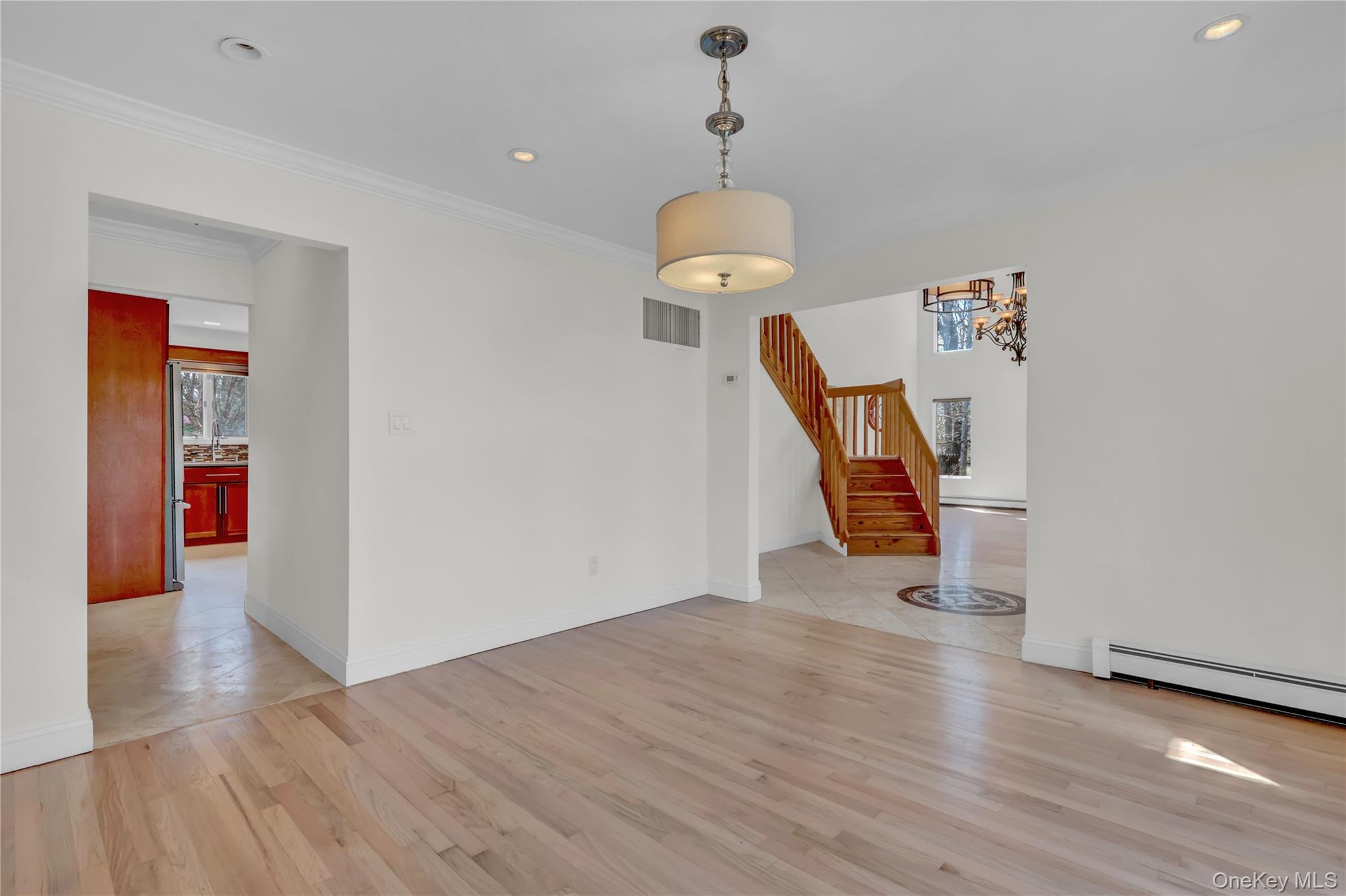 Set on nearly an acre in the heart of Miller Place, this striking contemporary residence offers a rare opportunity to own a private retreat designed for both everyday comfort and exceptional entertaining. From the moment you enter, soaring vaulted ceilings and expansive skylights flood the home with natural light, creating an open, airy ambience throughout the main living spaces. The thoughtfully designed layout flows seamlessly from a welcoming entry foyer to a formal dining room and an inviting den anchored by a wood-burning fireplace-ideal for intimate gatherings or relaxed evenings at home. At the center of the home is a spacious eat-in kitchen appointed with granite countertops, stainless steel appliances, and a dedicated service area complete with a wine cooler-perfect for hosting with ease and style. The primary suite offers a true sense of retreat, featuring generous proportions, dual walk-in closets, and a spa-inspired en-suite bath with a jetted tub and refined finishes. Additional bedrooms provide flexibility for guests, home office space, or growing households. The full finished basement elevates the home's entertainment appeal, featuring a custom bar and a dedicated theater area-creating a versatile space for game nights, celebrations, or private screenings. Outdoors, the property transforms into your own resort-style escape. A wraparound deck overlooks the expansive grounds, where a gunite in-ground pool and spa set the stage for summer living, outdoor entertaining, and tranquil relaxation-all surrounded by the privacy and scale that nearly an acre affords. Additional highlights include a tankless hot water system, updated finishes throughout, and a two-car garage with ample parking. With its generous footprint, unique architectural character, and exceptional outdoor setting, this home offers not just a residence-but a lifestyle. Whether enjoyed as-is or further customized, the possibilities here are substantial